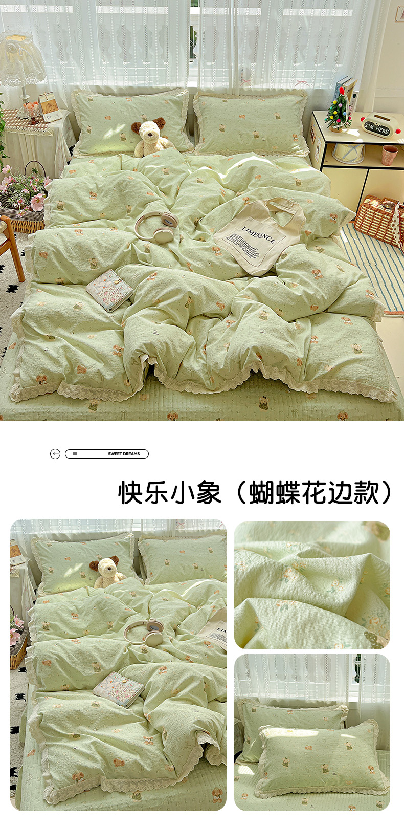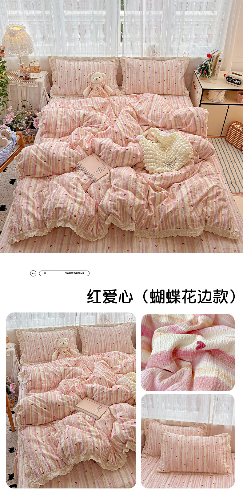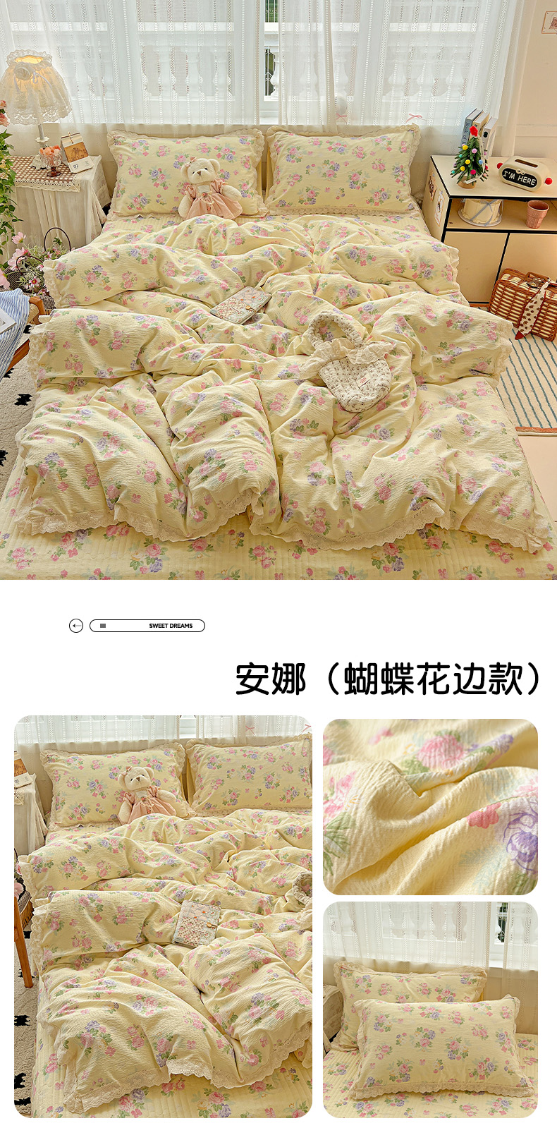 当前位置: 91家纺网 > 商品网购 > 床品套件 > 四件套 > 双层纱四件套 > 富米莱(原臻工厂) 2025新款全棉蝴蝶花边热销款韩式云感亲肤棉床盖床裙四件套 可爱小女孩(蝴蝶花边款)