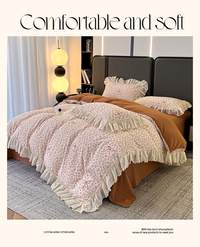 当前位置: 91家纺网 > 商品网购 > 床品套件 > 四件套 > 其它四件套 > 亨通家纺 2025新款原麻镂空宽花边四件套-花卉系列 复古棕花