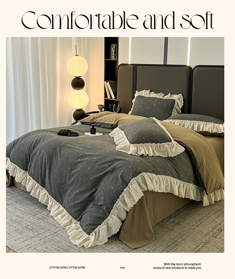 当前位置: 91家纺网 > 商品网购 > 床品套件 > 四件套 > 其它四件套 > 亨通家纺 2025新款原麻镂空宽花边四件套-花卉系列 碎花絮语-灰