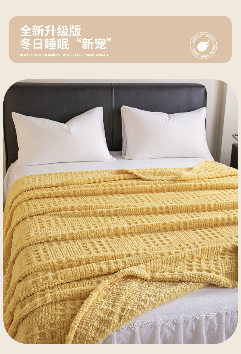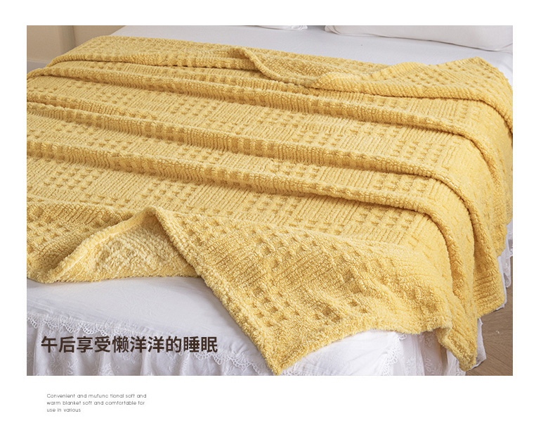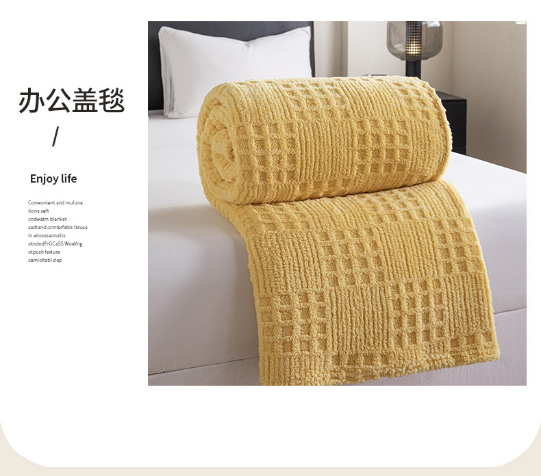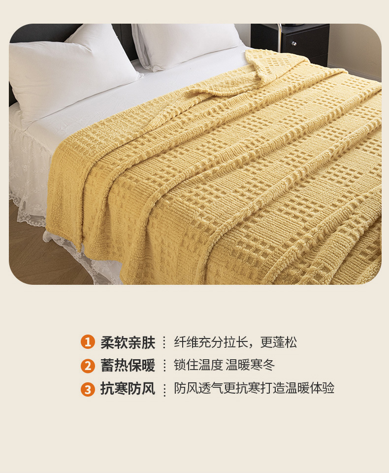 商品名称:梵心家纺 2025新款塔芙绒纯色华夫格提花毛毯多功能舒棉绒盖毯午睡毛毯-跨境电商 华夫格-黄色