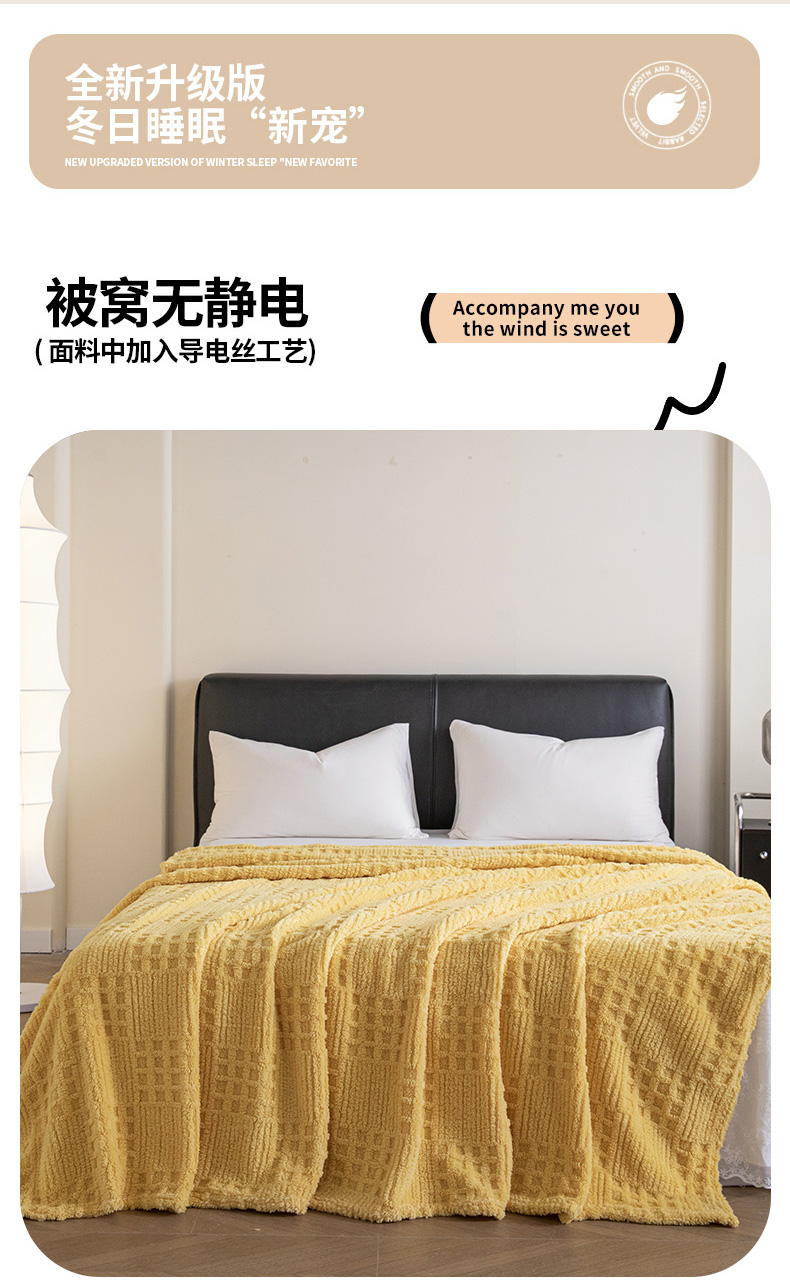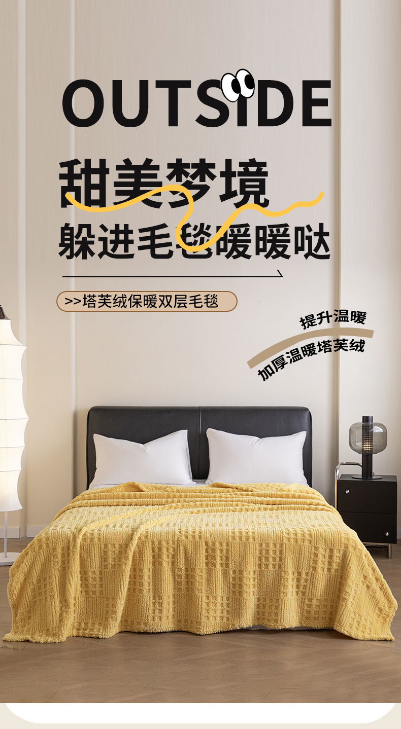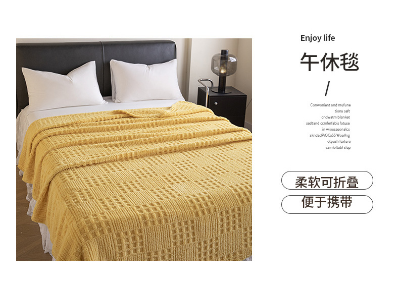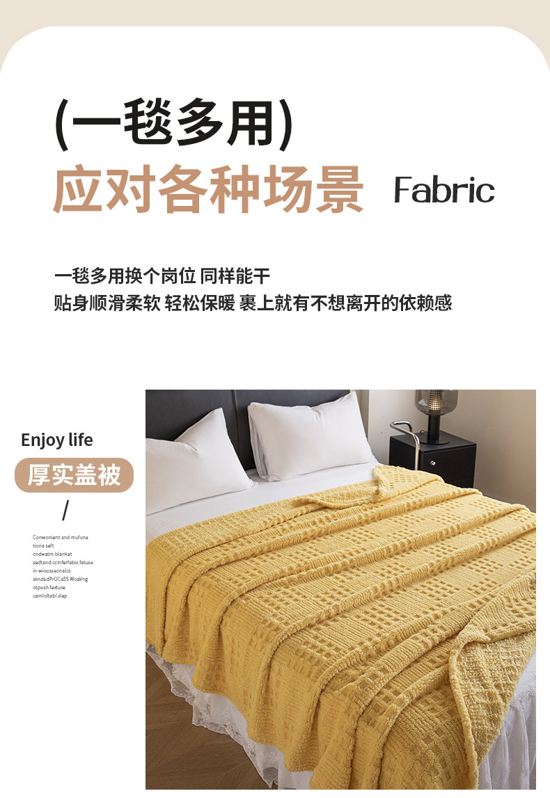商品名称:梵心家纺 2025新款塔芙绒纯色华夫格提花毛毯多功能舒棉绒盖毯午睡毛毯-跨境电商 华夫格-黄色