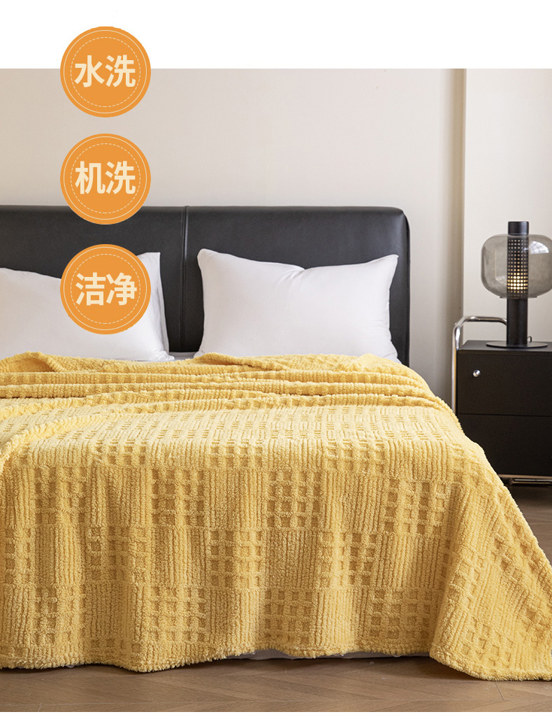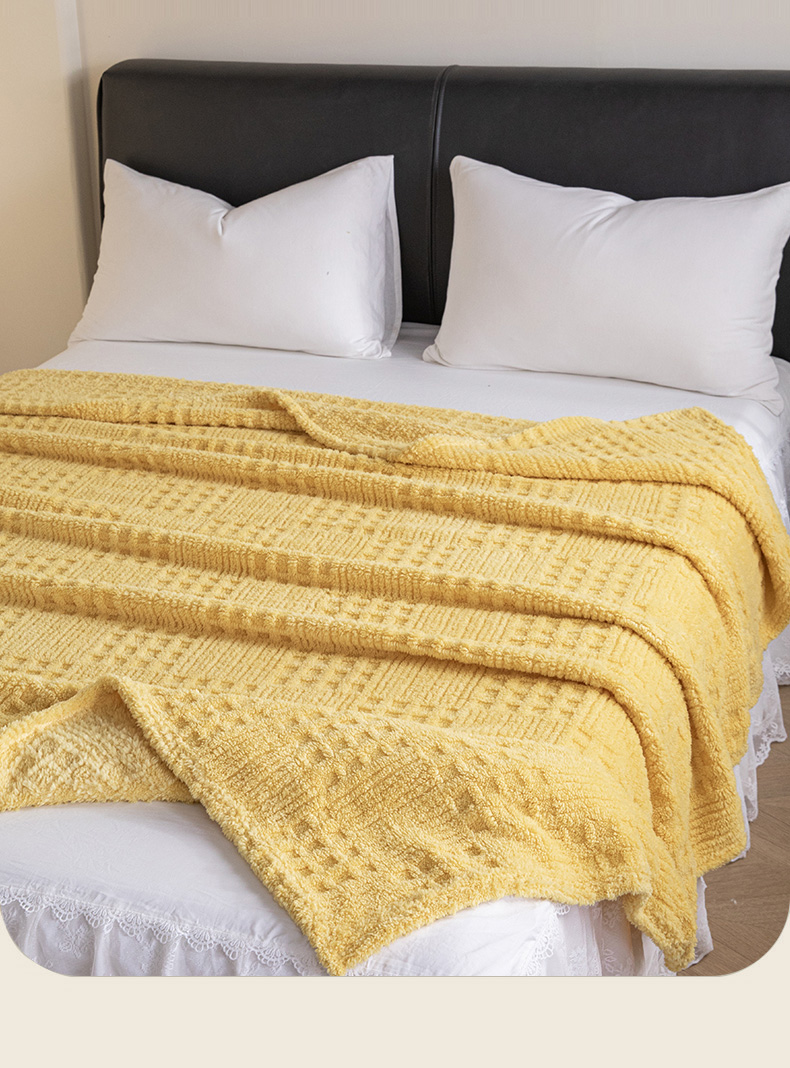 梵心家纺 2025新款塔芙绒纯色华夫格提花毛毯多功能舒棉绒盖毯午睡毛毯-跨境电商 华夫格-黄色