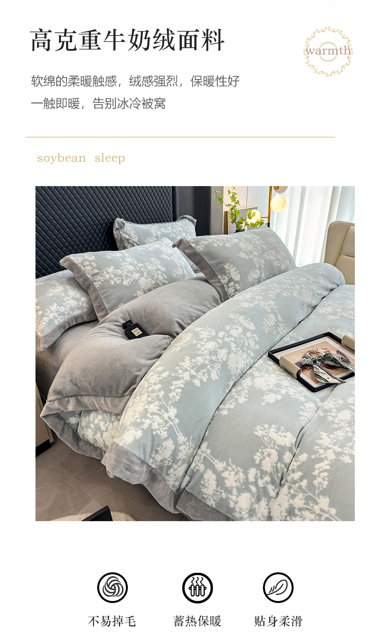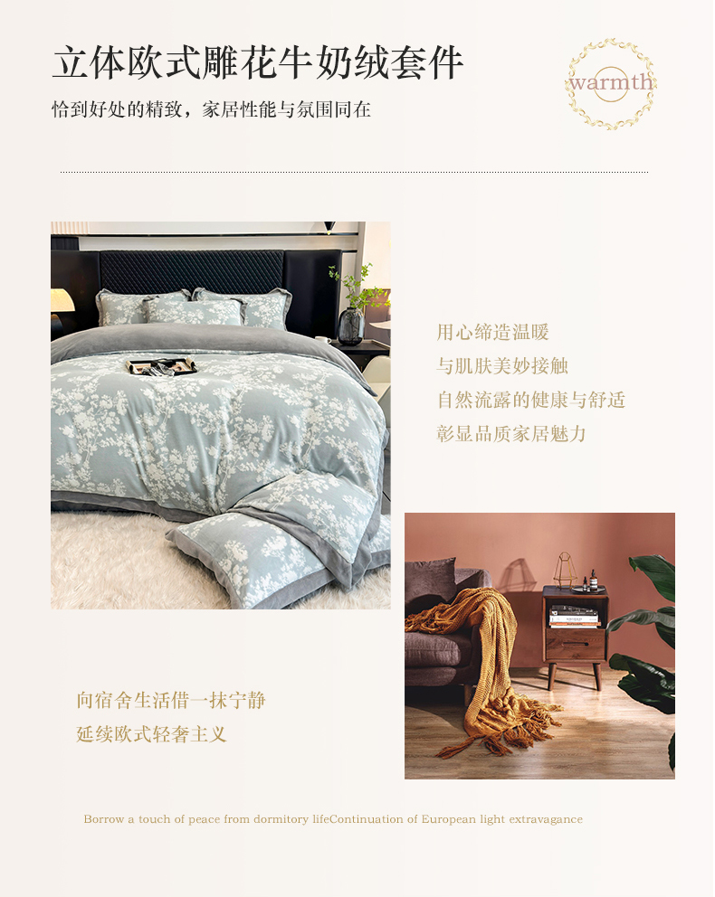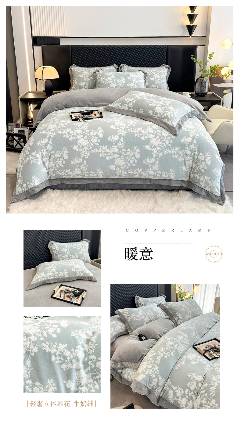 梦精灵家纺 2025新款高克重加厚雕花牛奶绒四件套 暖意