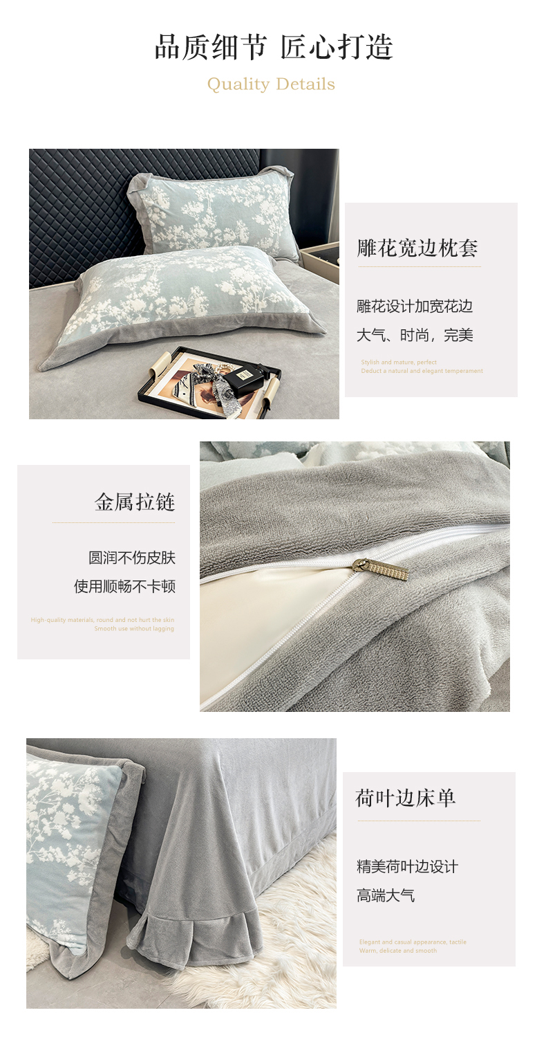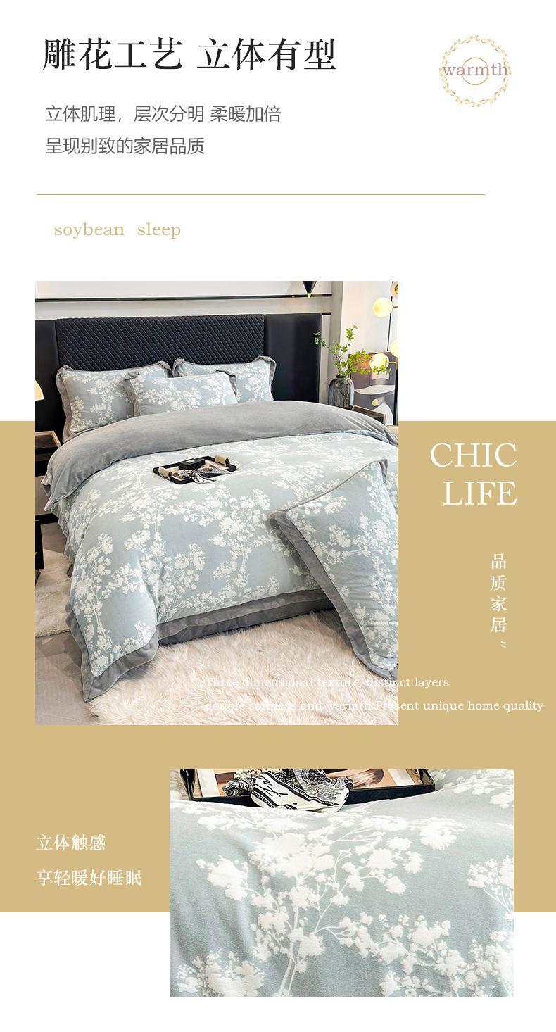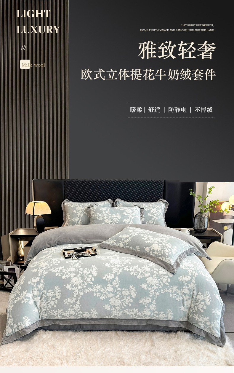 梦精灵家纺 2025新款高克重加厚雕花牛奶绒四件套 暖意