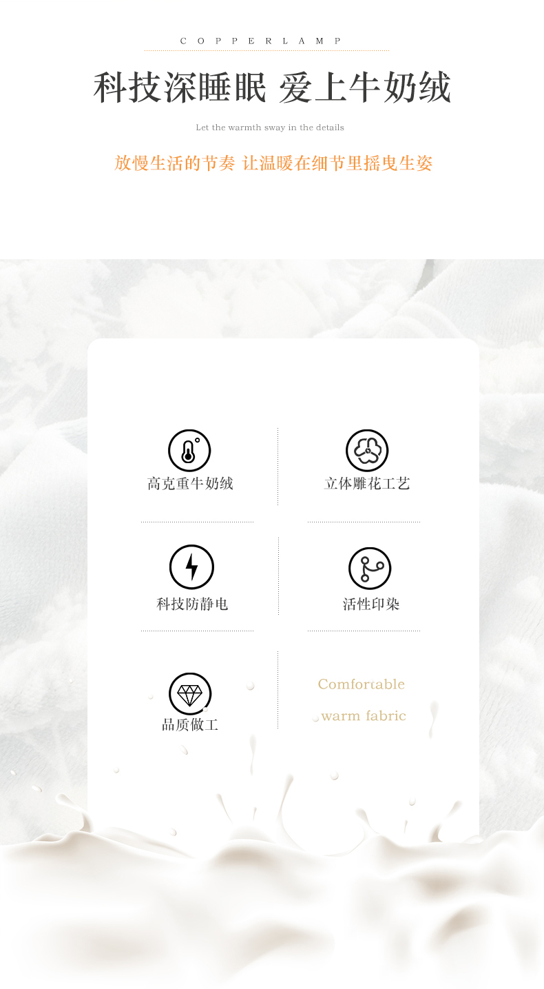 商品名称:梦精灵家纺 2025新款高克重加厚雕花牛奶绒四件套 暖意