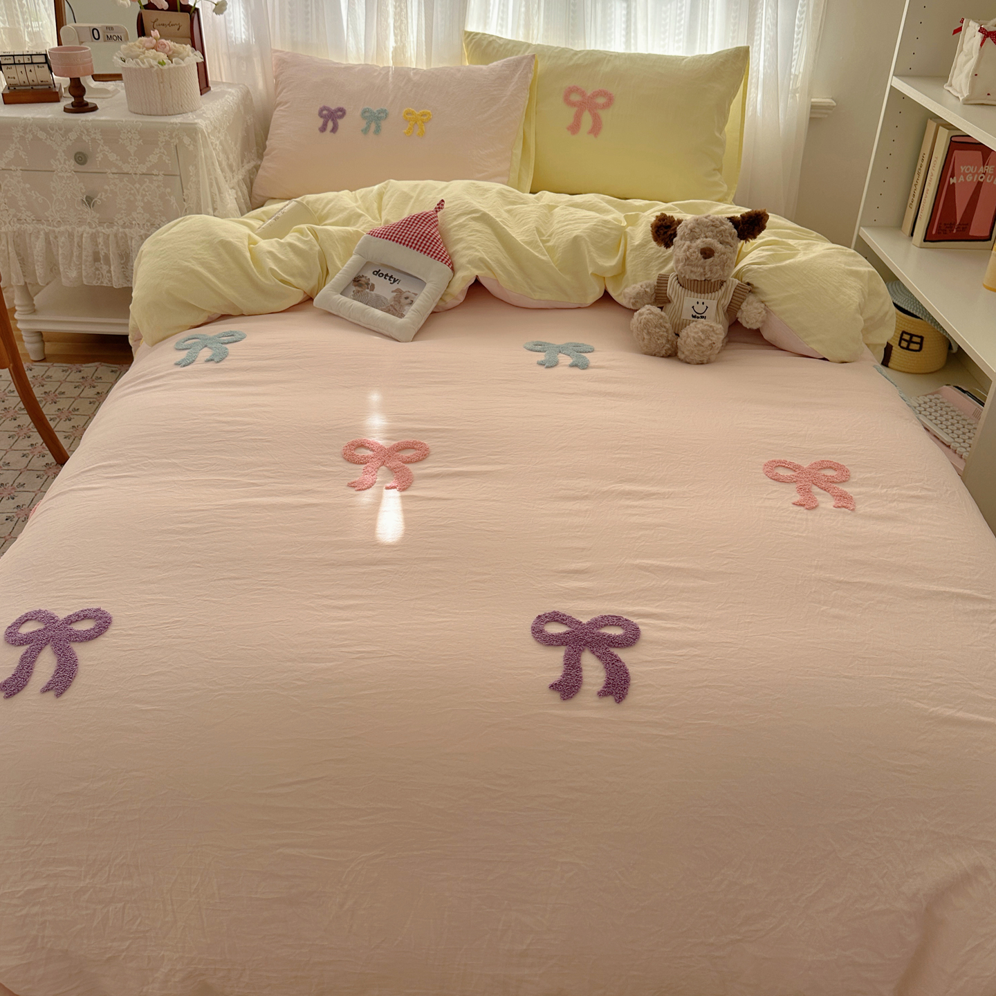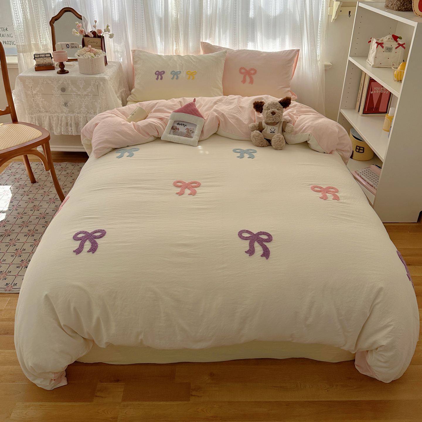 当前位置: 91家纺网 > 商品网购 > 床品套件 > 四件套 > 毛巾绣四件套 > 顾里家纺 2025新款韩系蝴蝶结云朵棉毛巾绣套件四件套-少女梦想 少女梦想(粉)