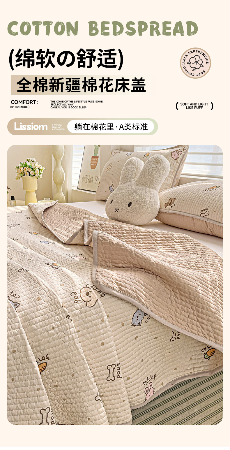 (总)暖萌 2025新款A类全棉棉花床盖印花三件套,仙草,糖纸童年,比利熊,采薇兔,宠物时间-米,黑白涂鸦,花蜜-绿,浆果小兔,快乐魔法,拉布兔兔,觅秋,碎花小熊,糖果幼儿园,童趣绘彩,幽兰花谷,遇见浪漫