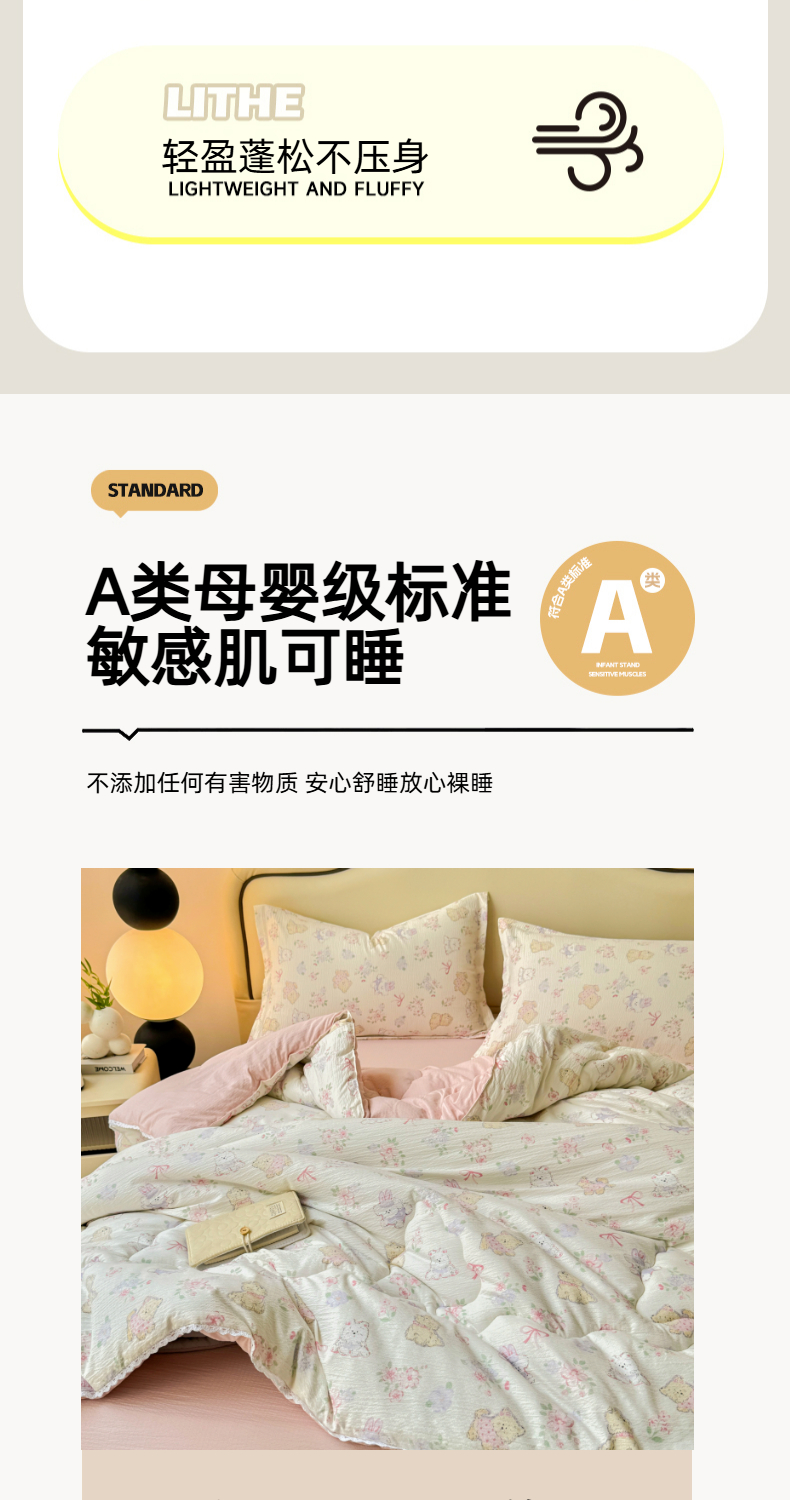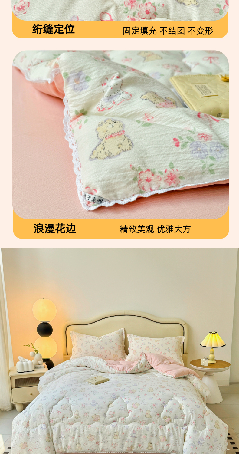(总)鑫贝阳 2025新款亲肤水洗棉小花边印花夏被,动物乐园,爱心笑脸,花海,花漫,萝卜兔,夏花,小草莓,蘑菇森林,绚熊,小恐龙,星空粉