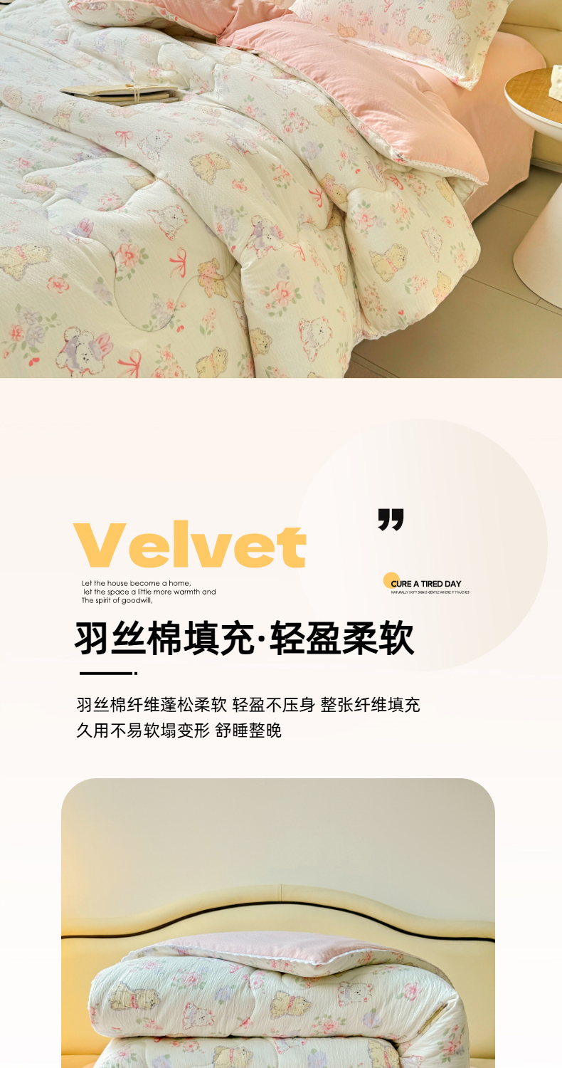 • 91家纺网 家纺一手货源 找家纺 鑫贝阳 2025新款亲肤水洗棉小花边印花夏被 绚熊,绚熊