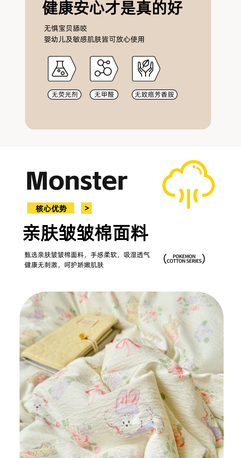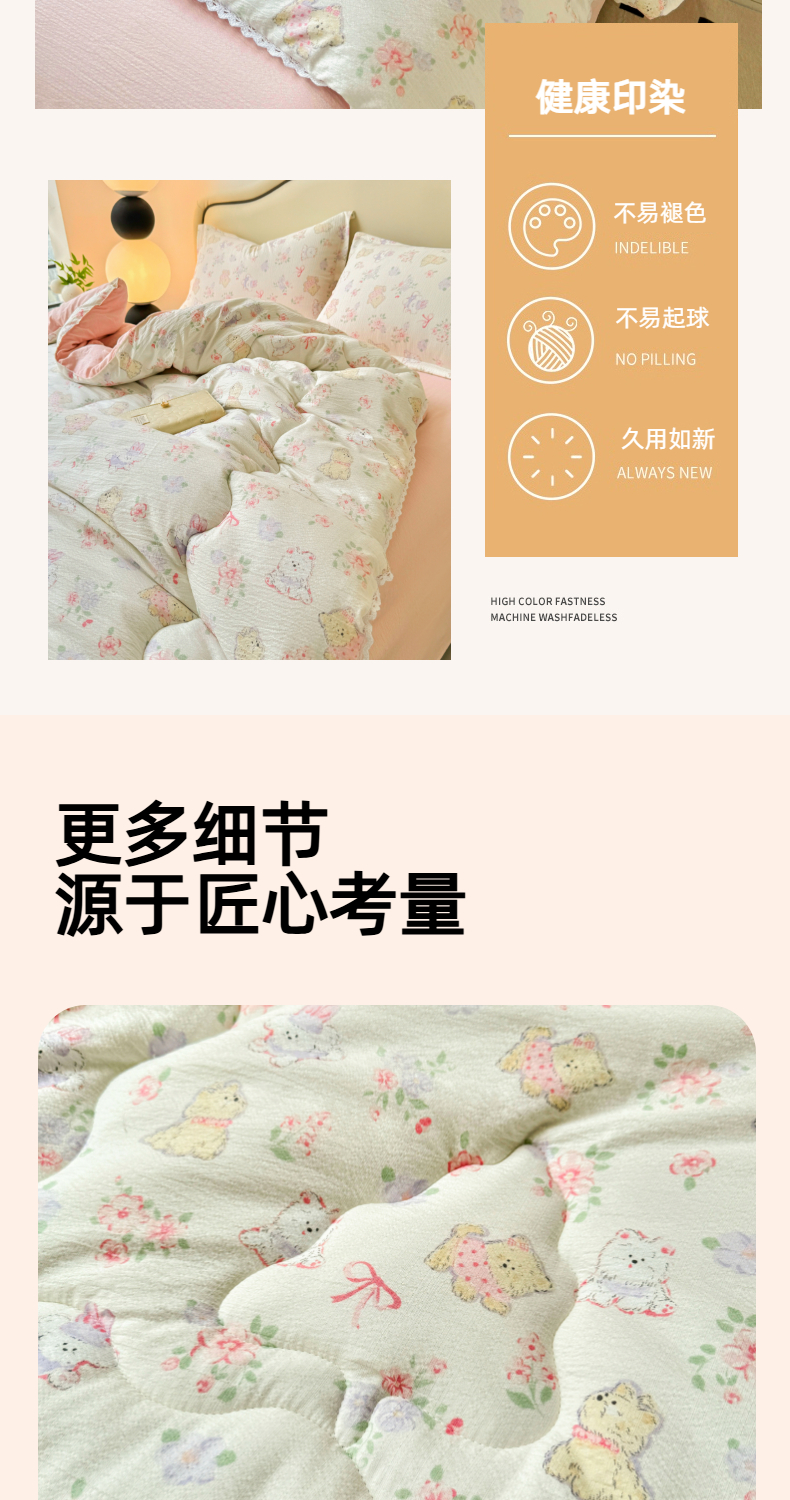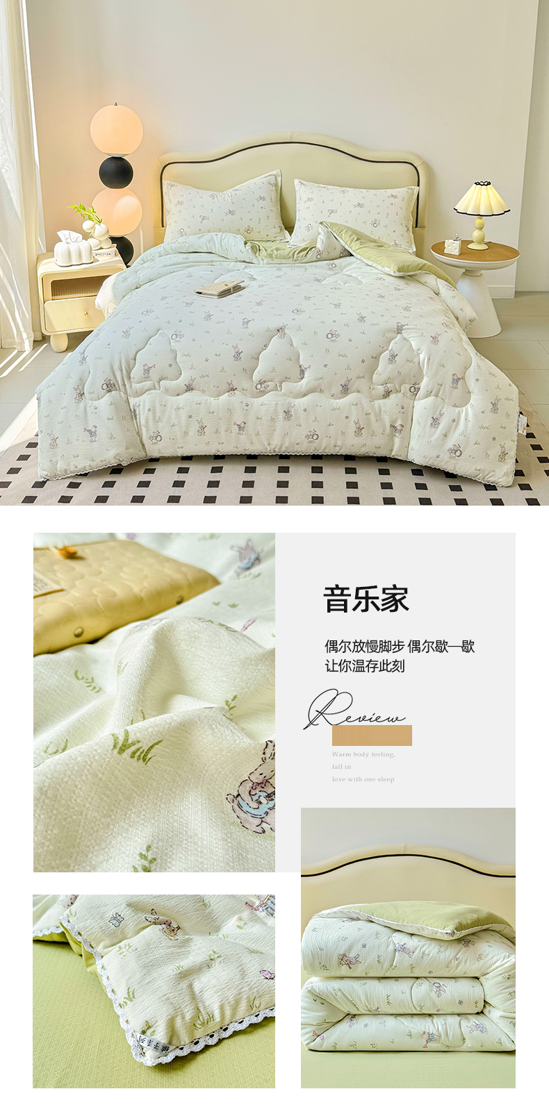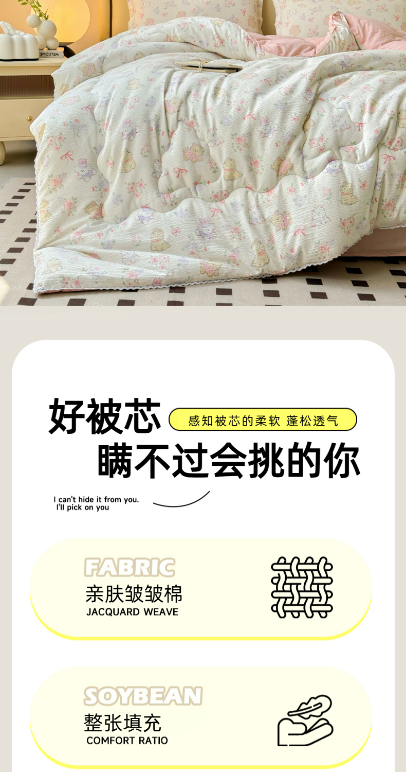 • 91家纺网 家纺一手货源 找家纺 (总)鑫贝阳 2025新款A类亲肤邹邹纱冬被被子被芯,彩色蝴蝶结,兰香入梦,美娜,蜜芽兔,心动波点,音乐家