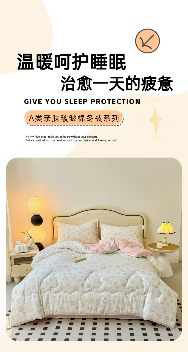 • 91家纺网 家纺一手货源 找家纺 鑫贝阳 2025新款A类亲肤邹邹纱冬被被子被芯 美娜