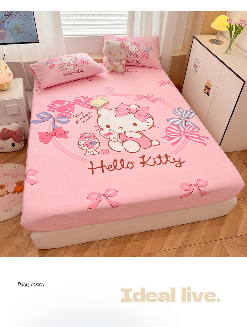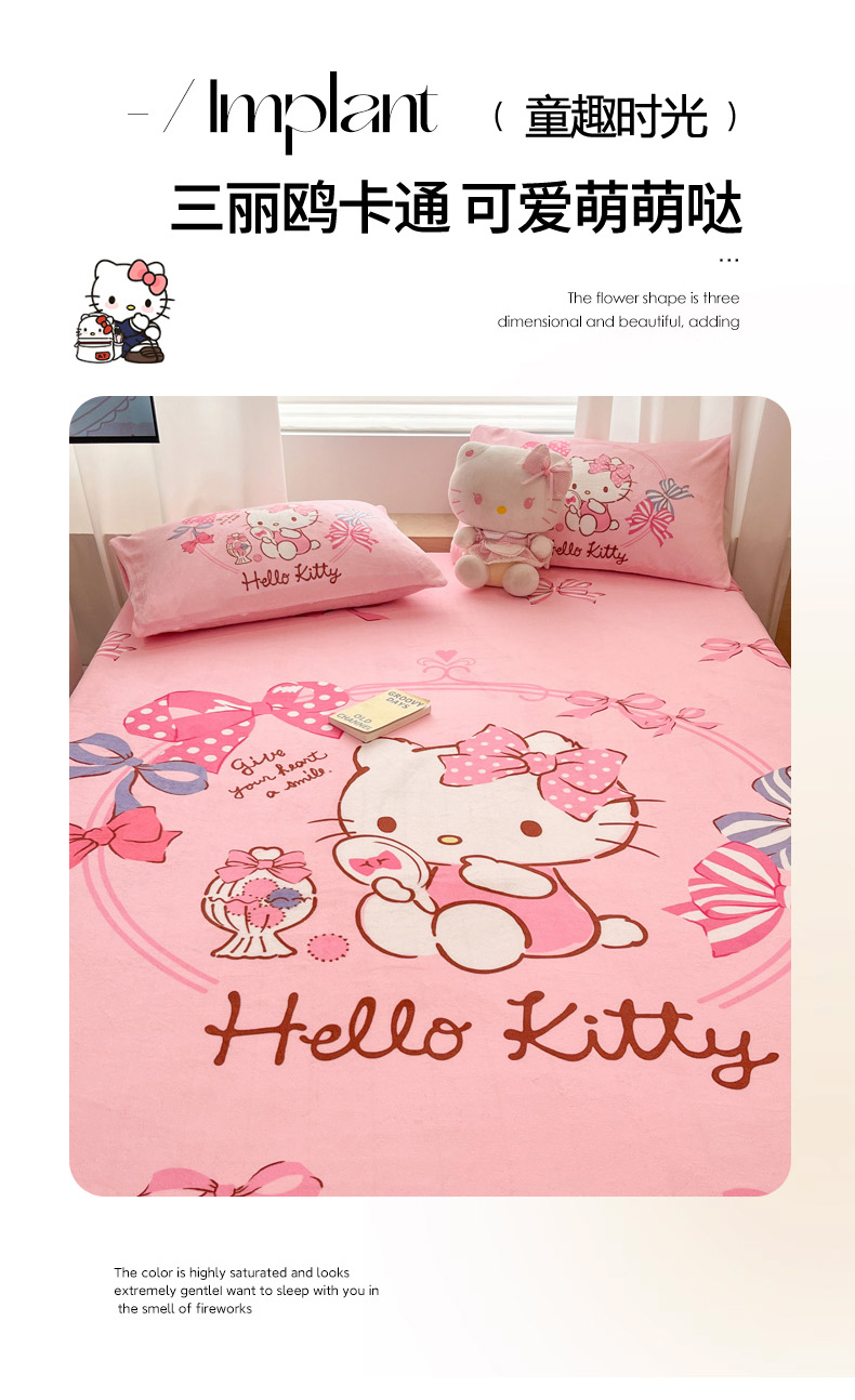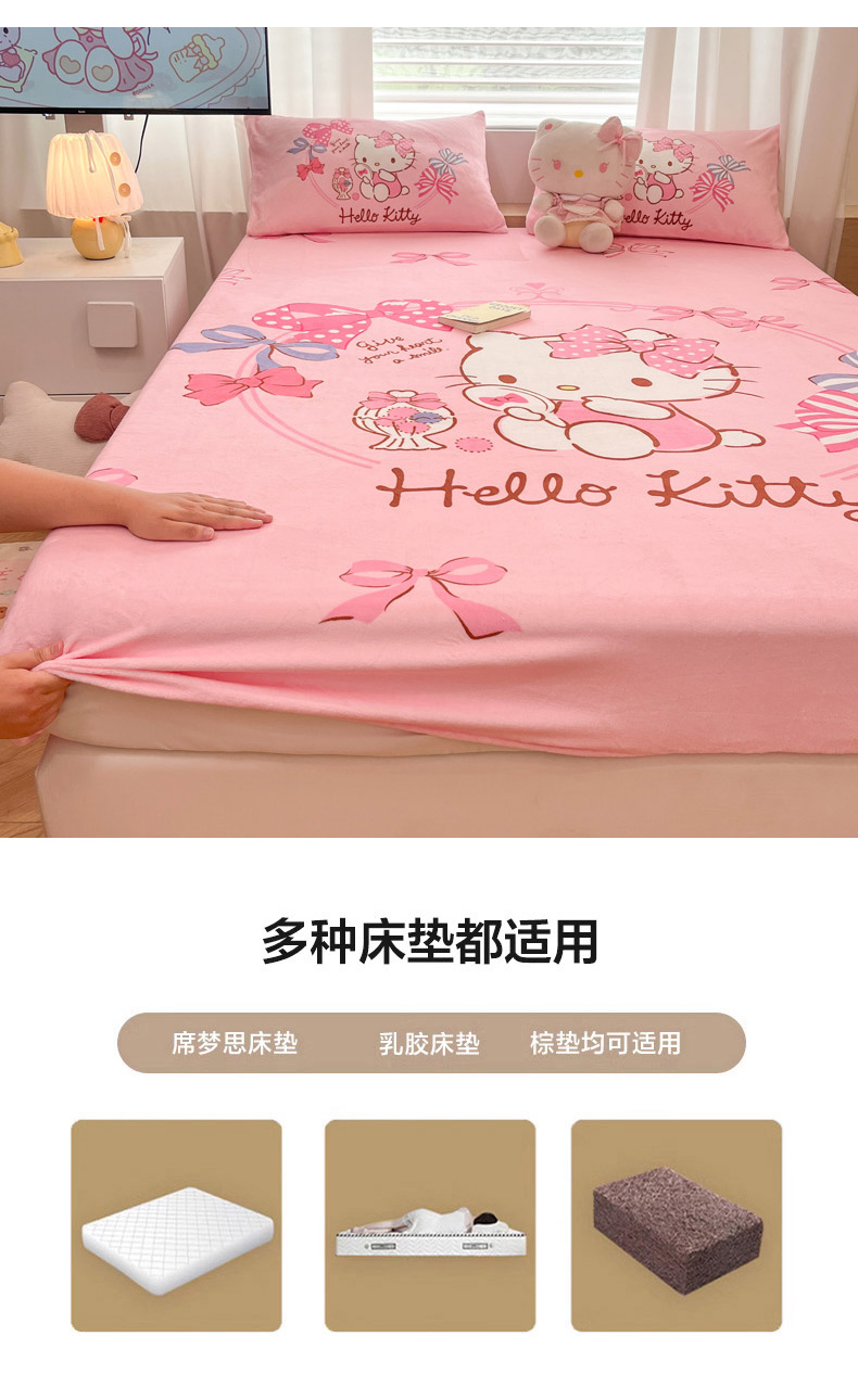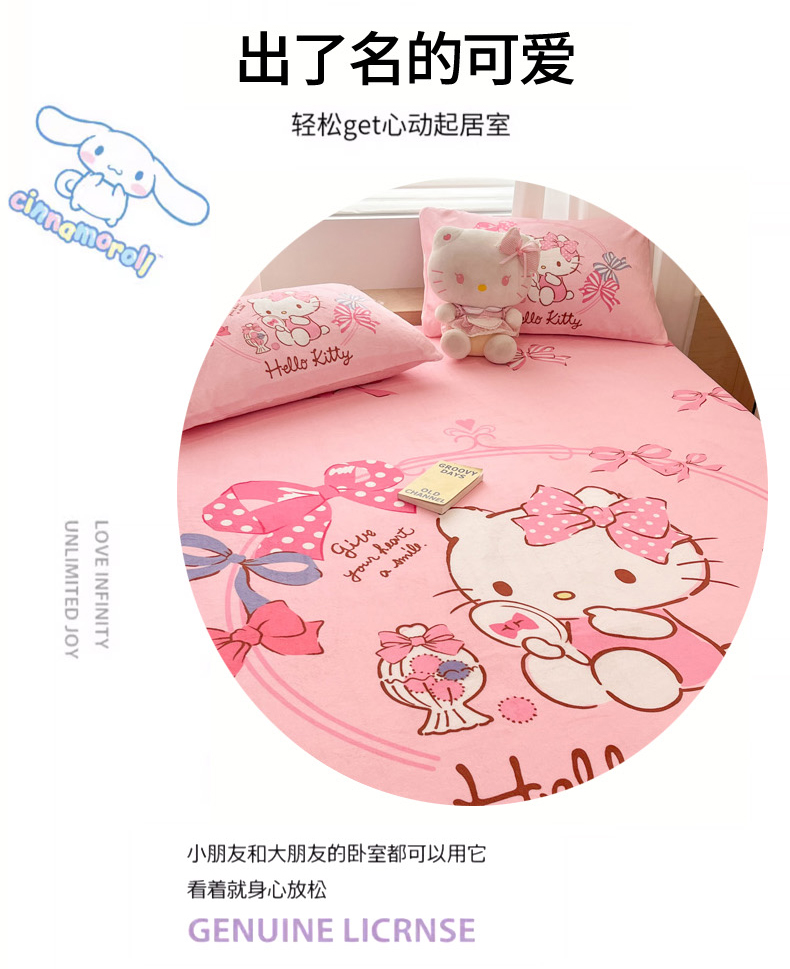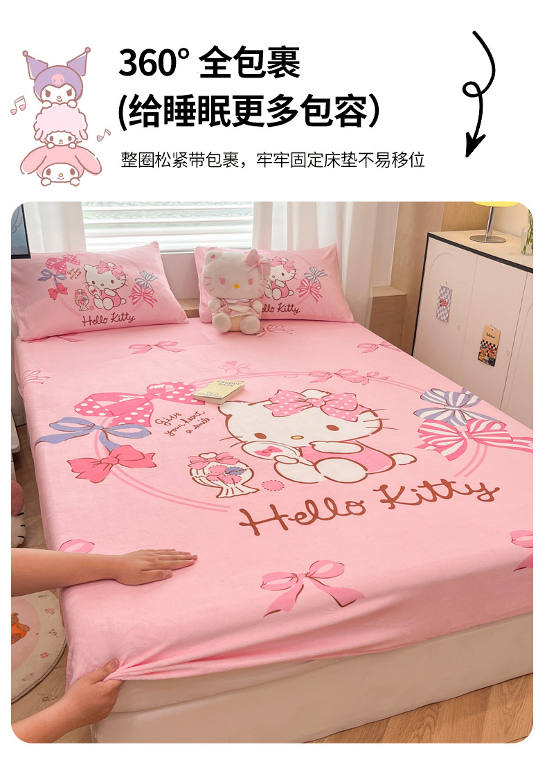 商品名称:暮思家居 2025新款正版授权三丽鸥大版牛奶绒数码印花单品床笠单件床笠(带标价格) 绒A版-美美KT