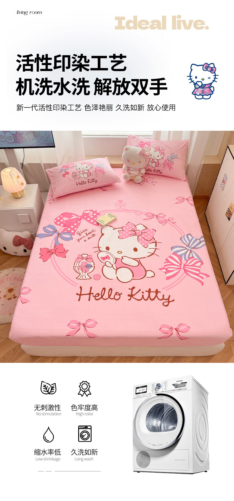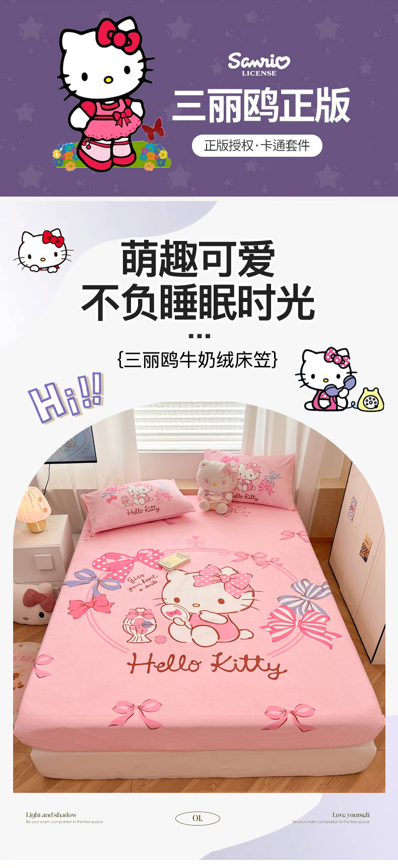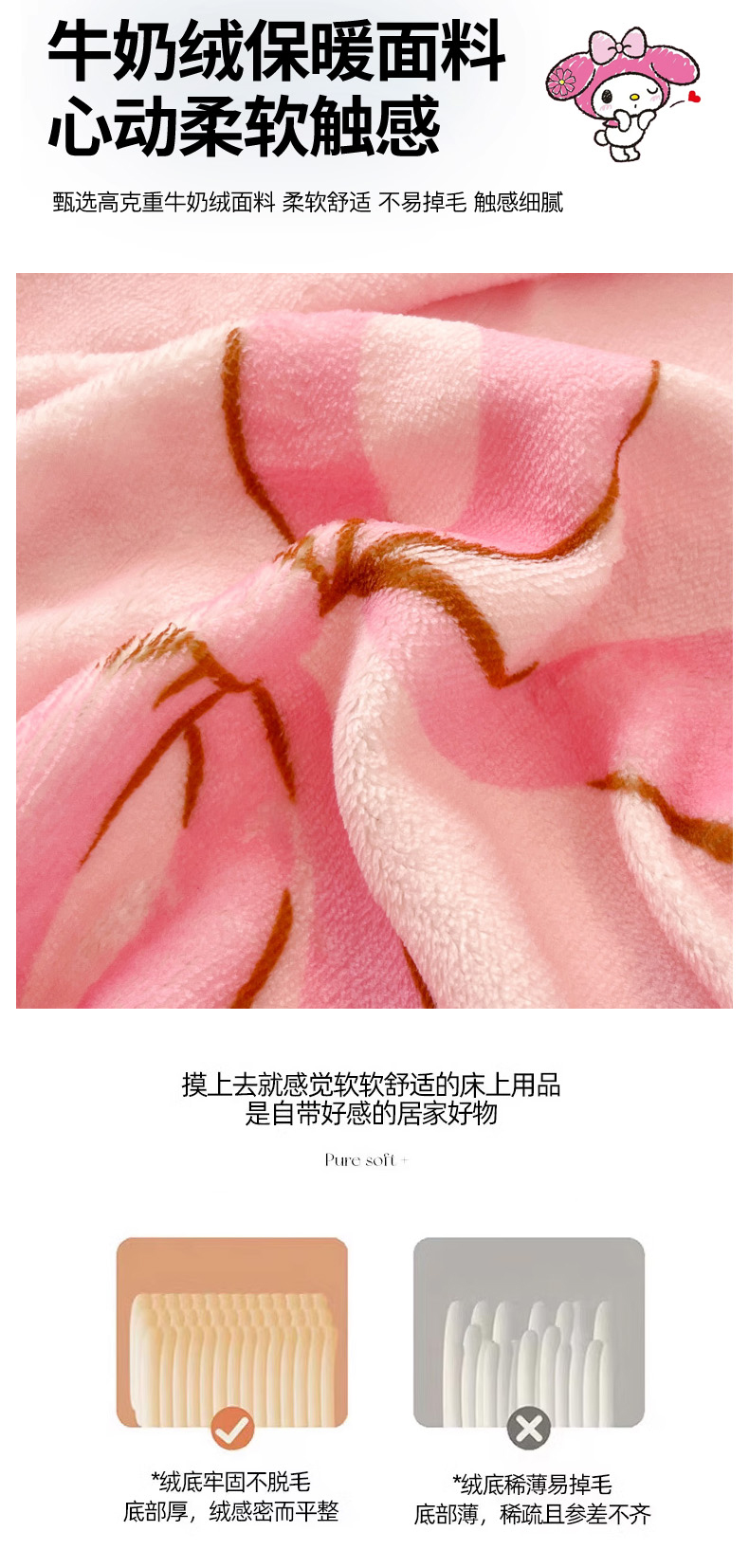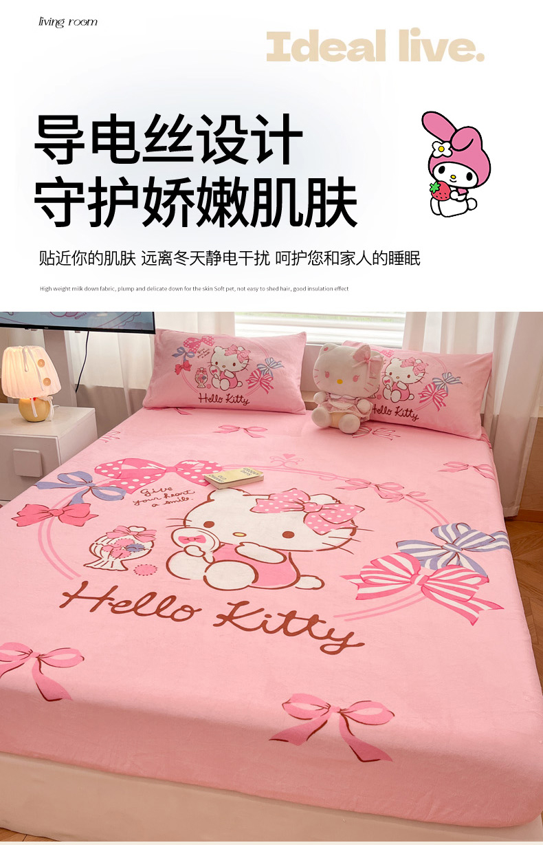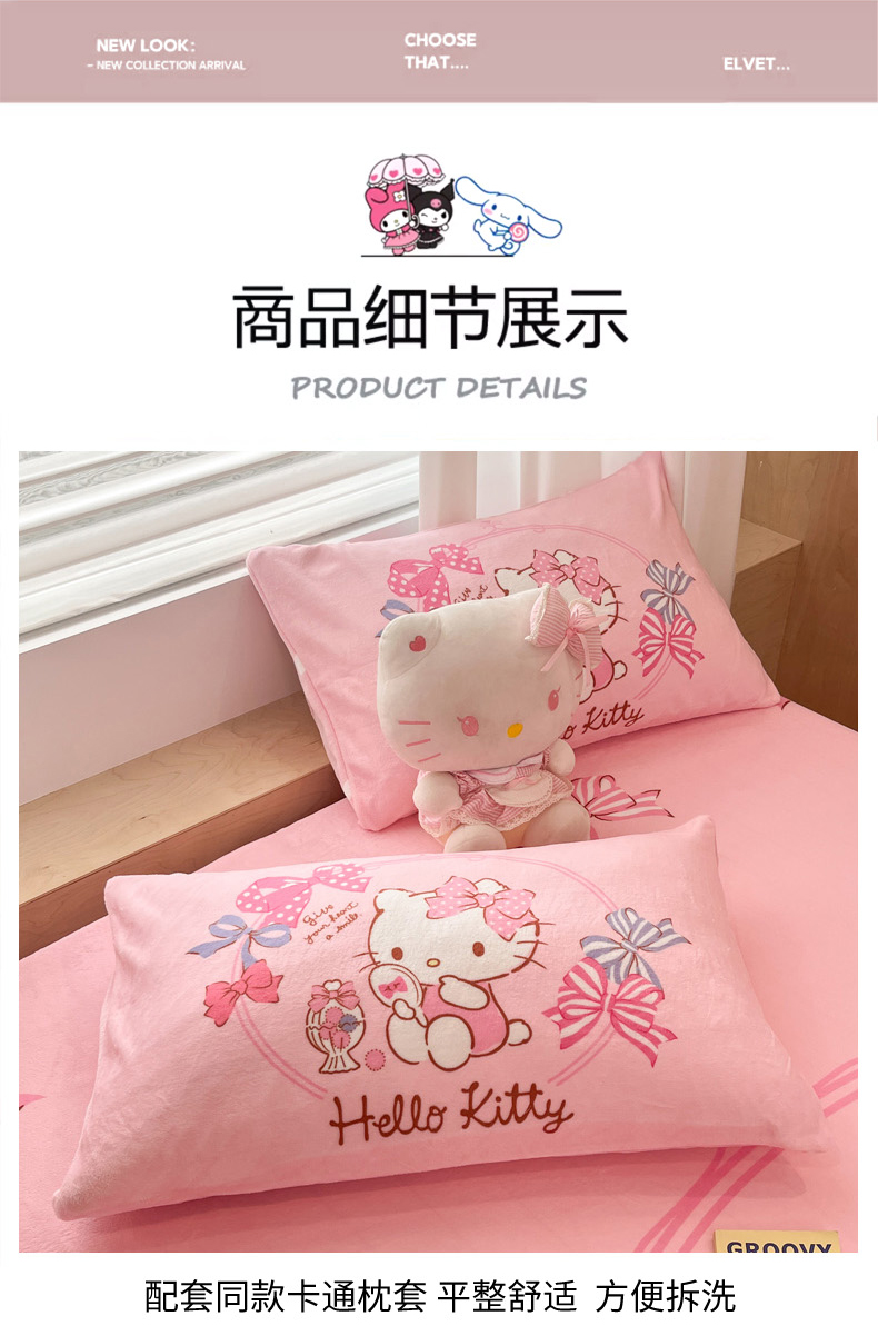 商品名称:暮思家居 2025新款正版授权三丽鸥大版牛奶绒数码印花单品床笠单件床笠(带标价格) 绒A版-美美KT