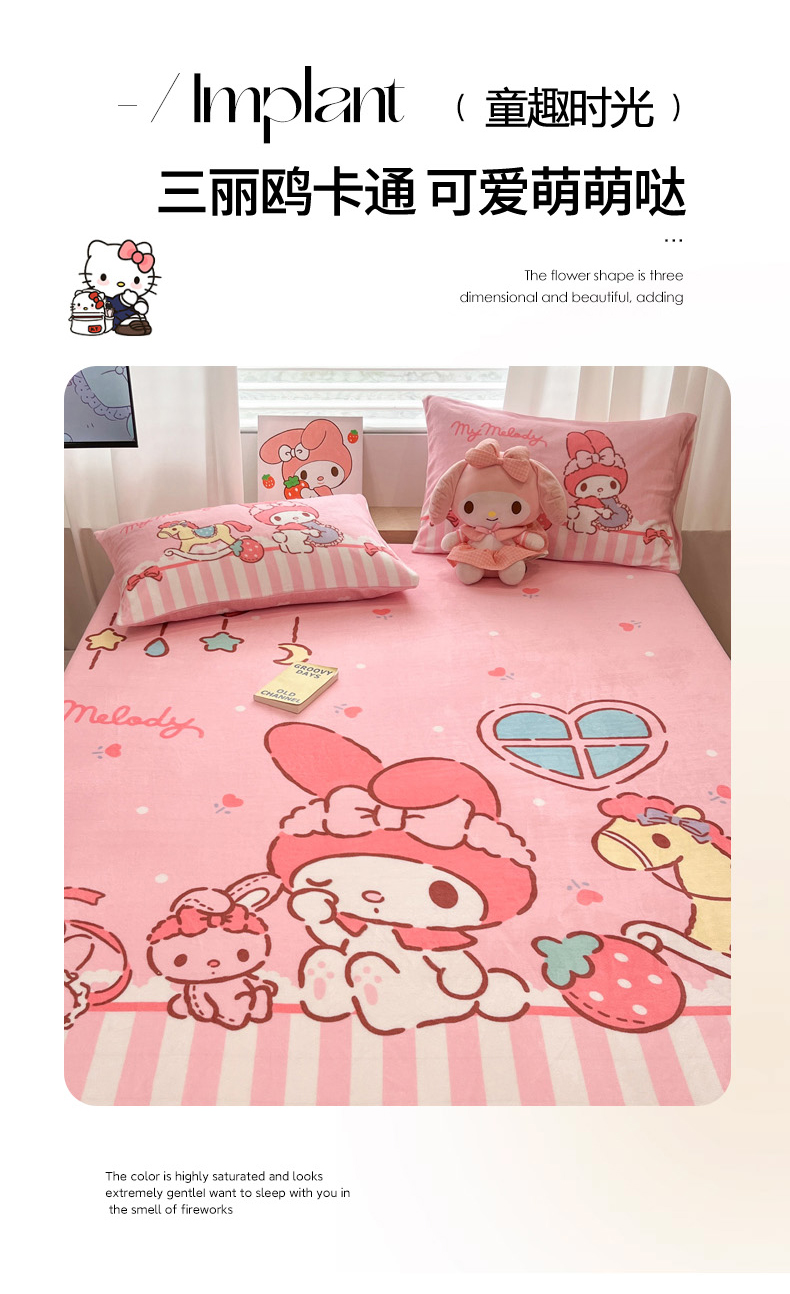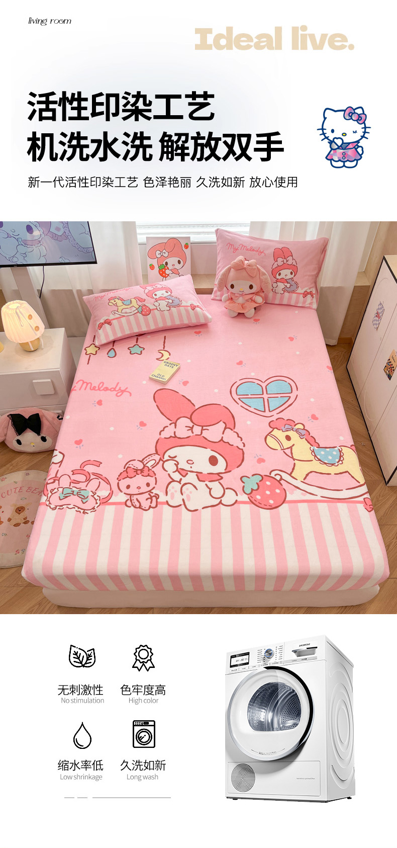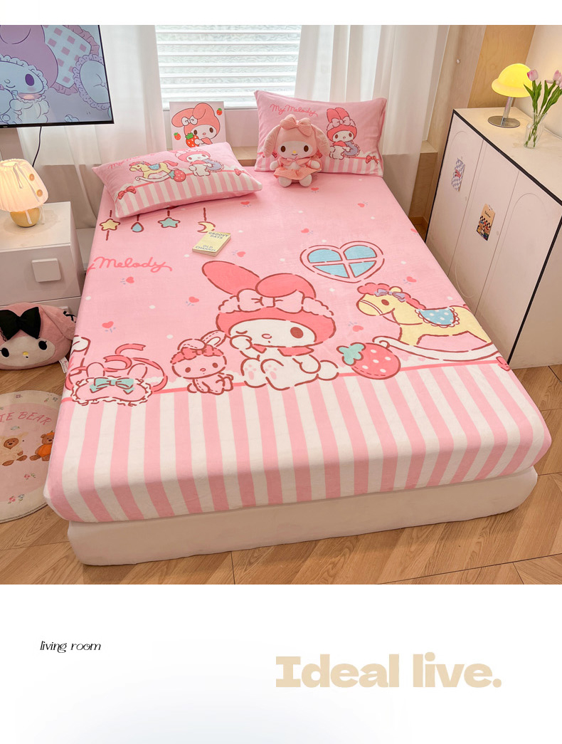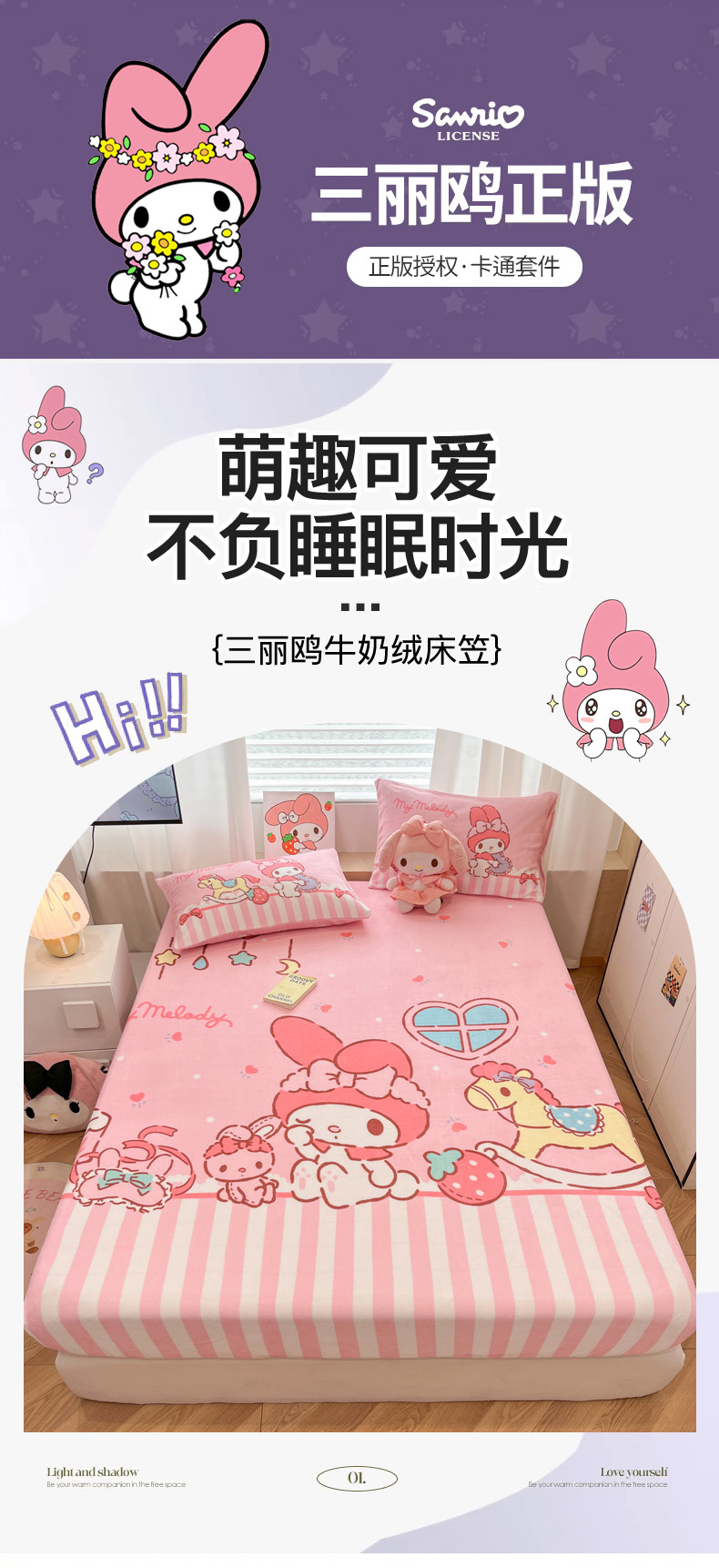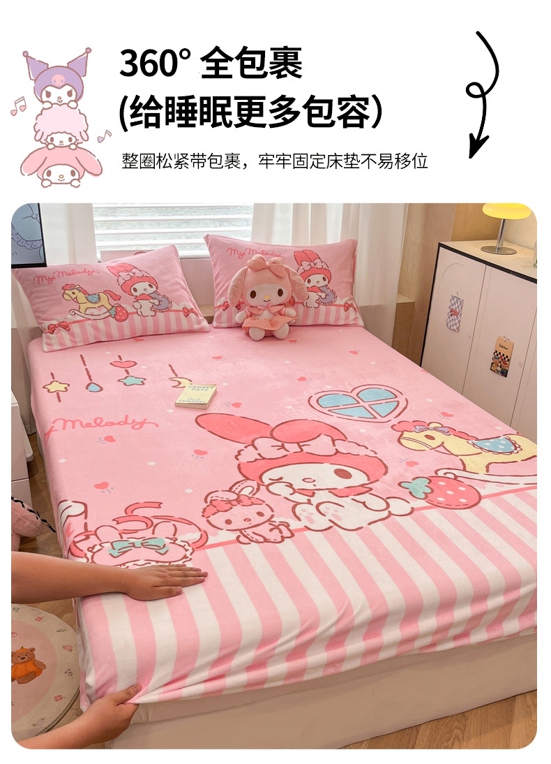 暮思家居 2025新款正版授权三丽鸥大版牛奶绒数码印花单品床笠单件床笠(带标价格) 绒A版-条纹美乐蒂