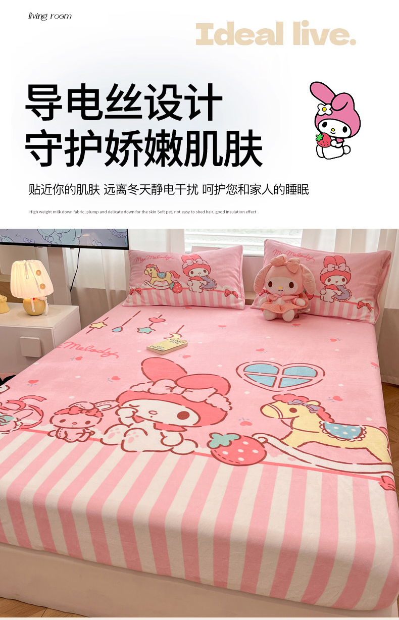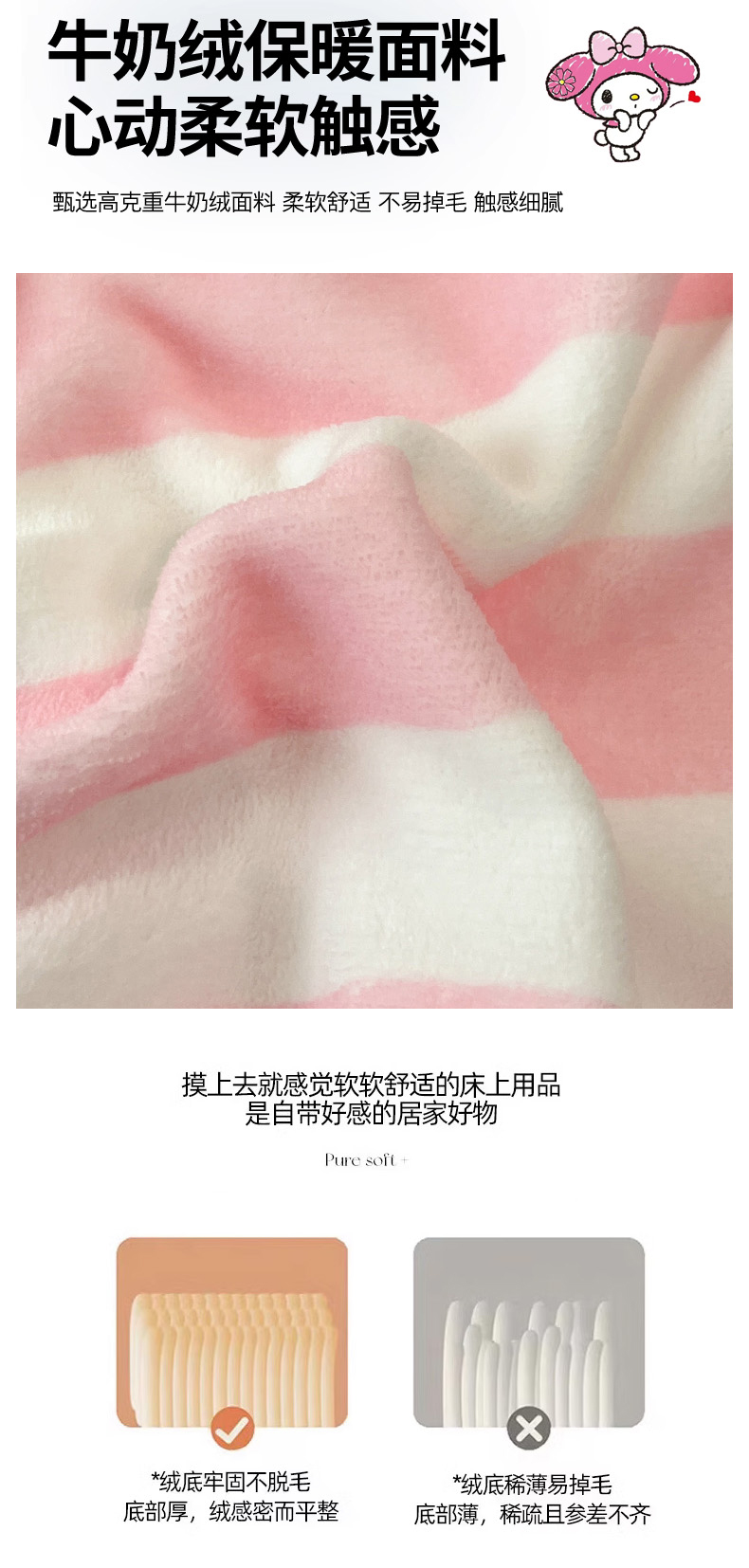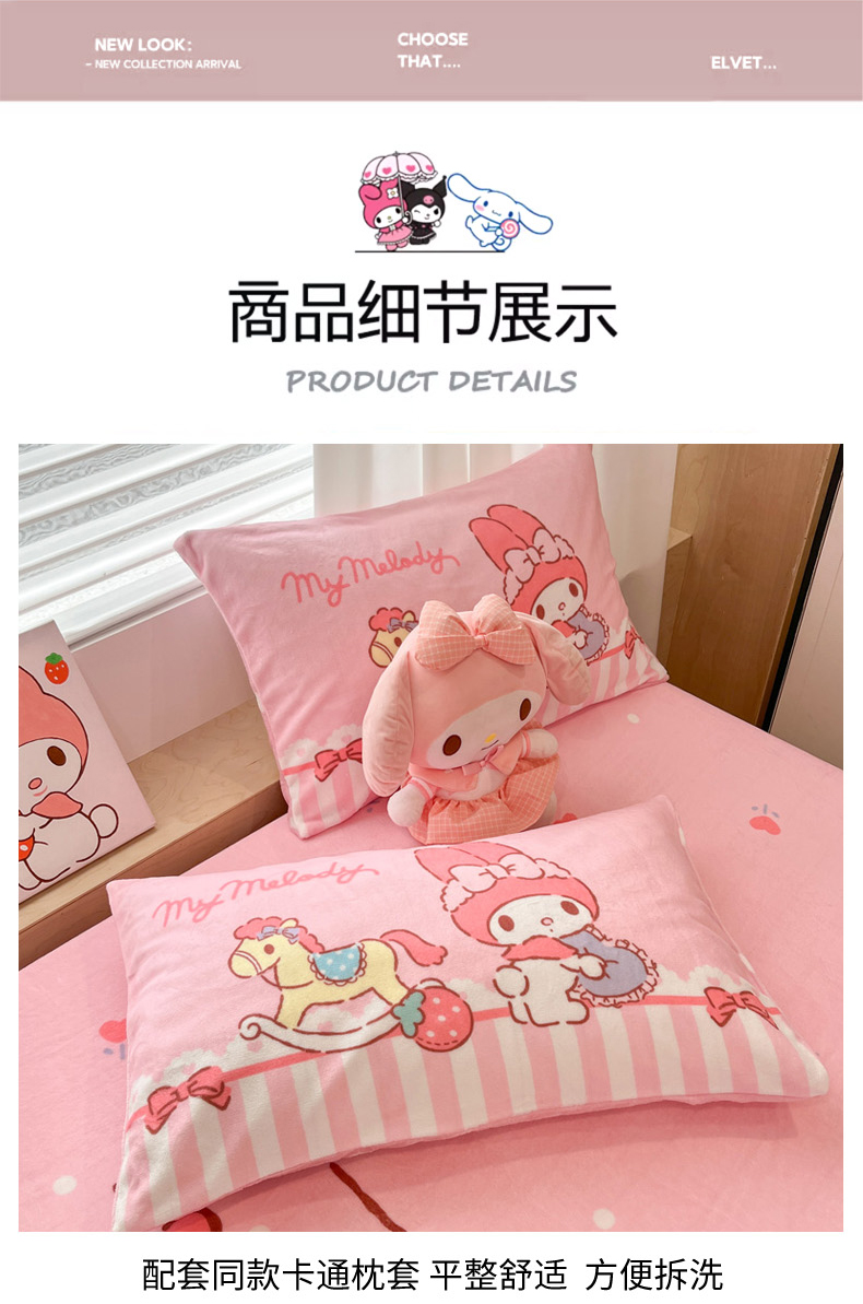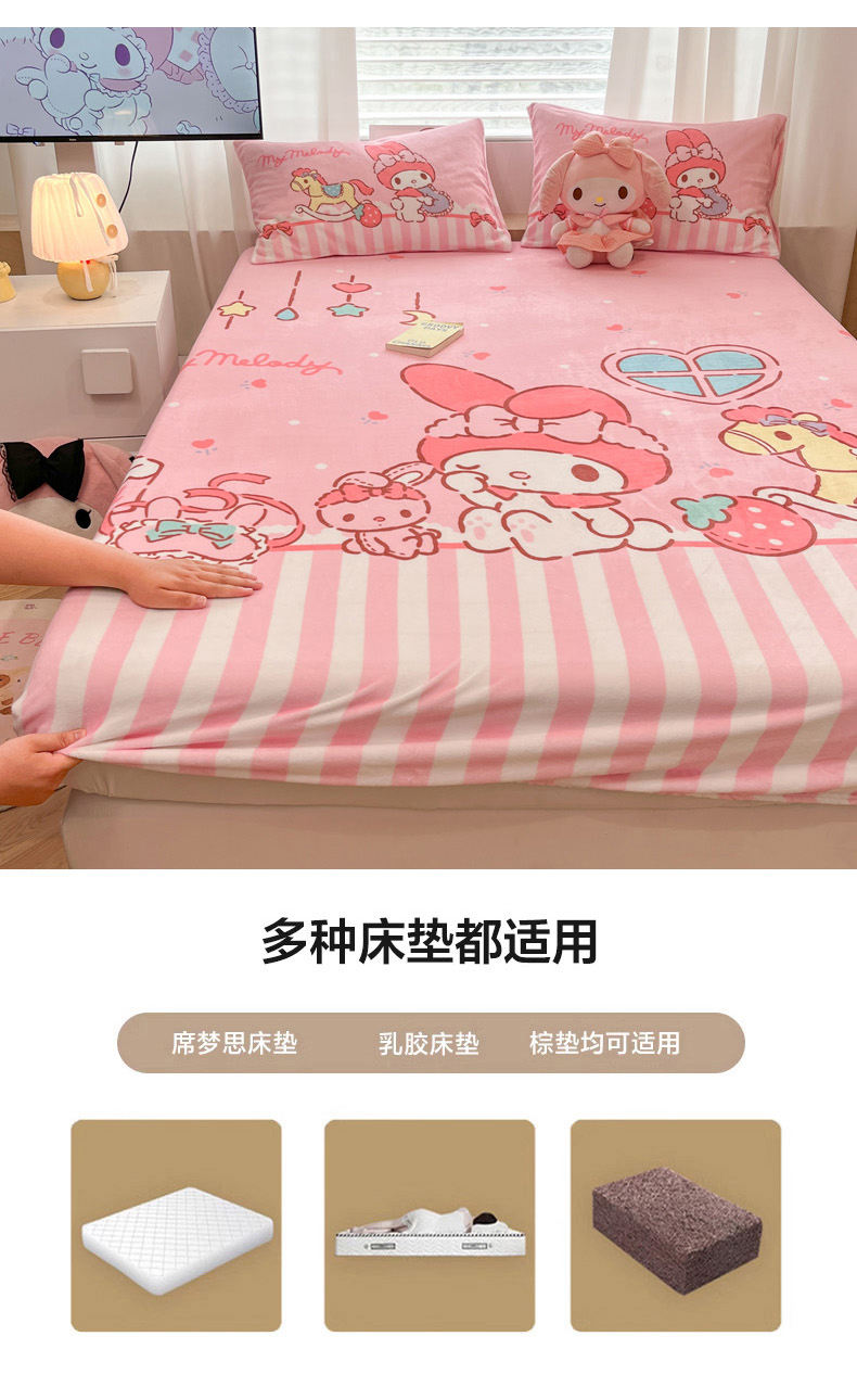 商品名称:暮思家居 2025新款正版授权三丽鸥大版牛奶绒数码印花单品床笠单件床笠(带标价格) 绒A版-条纹美乐蒂