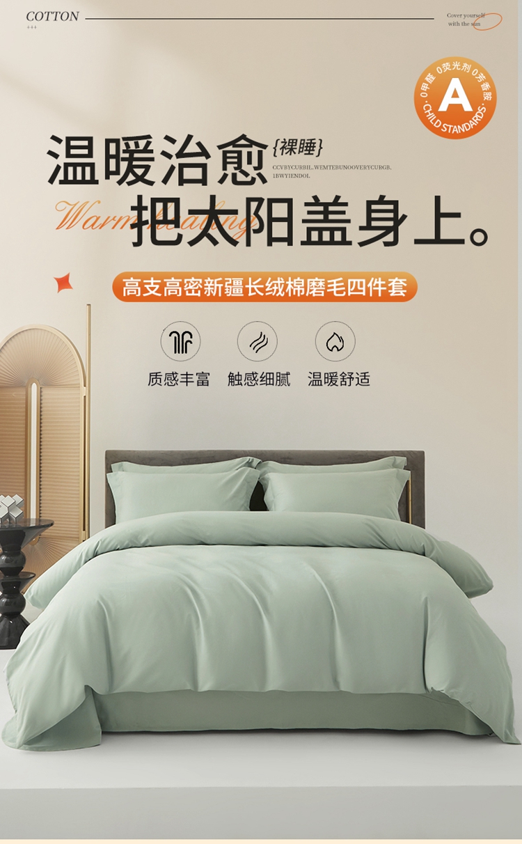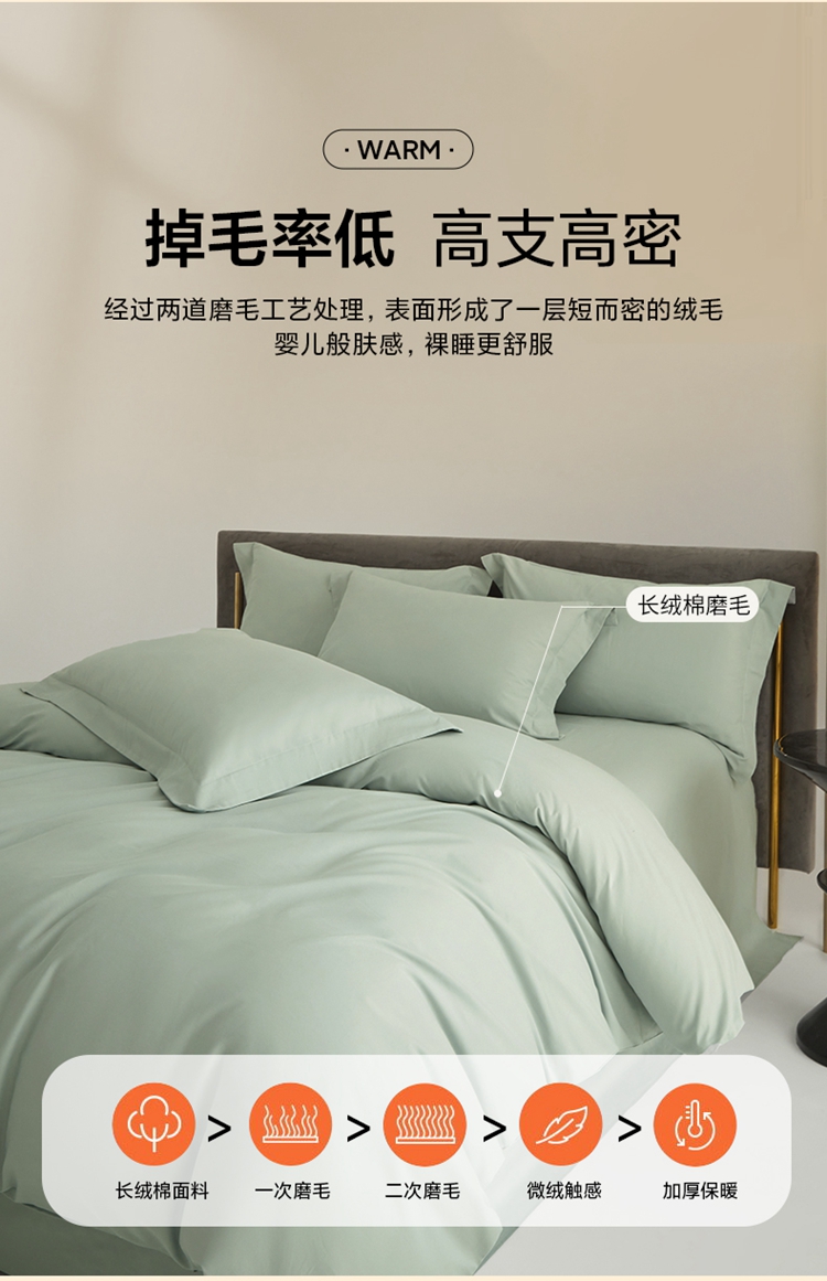 当前位置: 91家纺网 > 商品网购 > 床品套件 > 四件套 > 长绒棉四件套 > 柔觉家纺 新款50*50双股长绒棉纯色磨毛四件套 嫰果绿