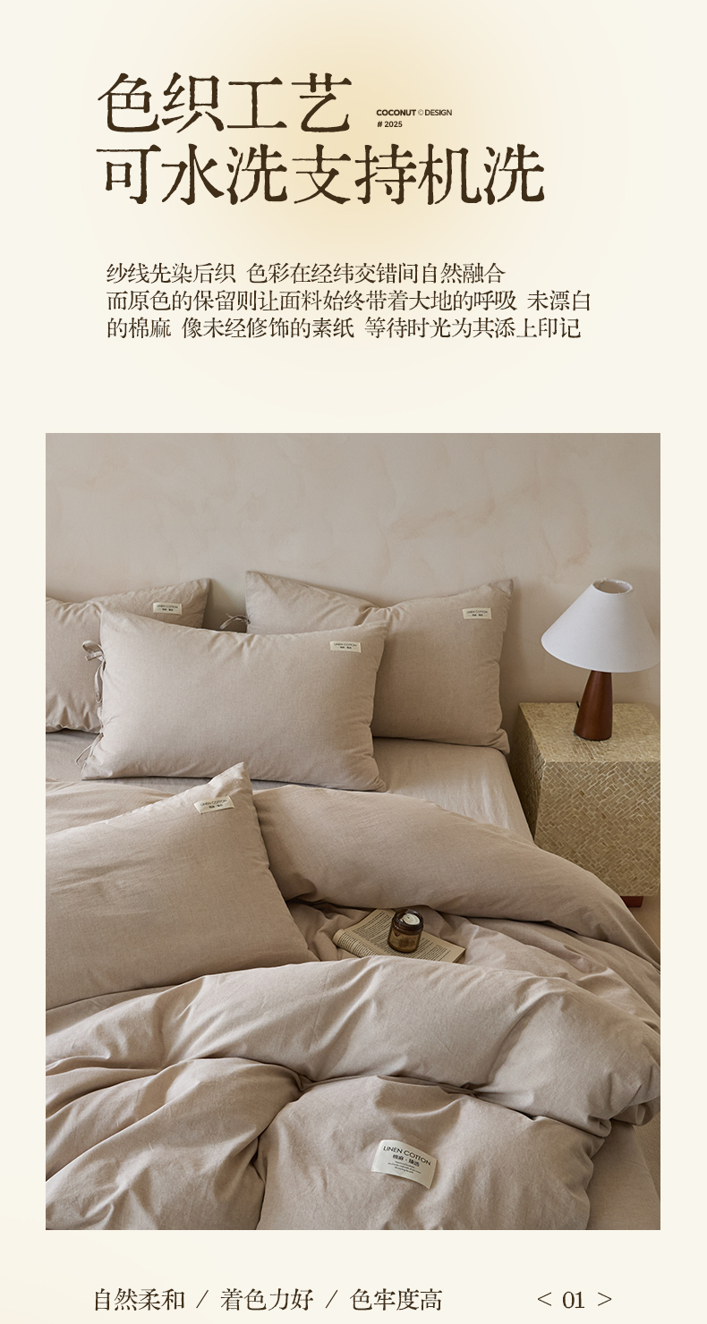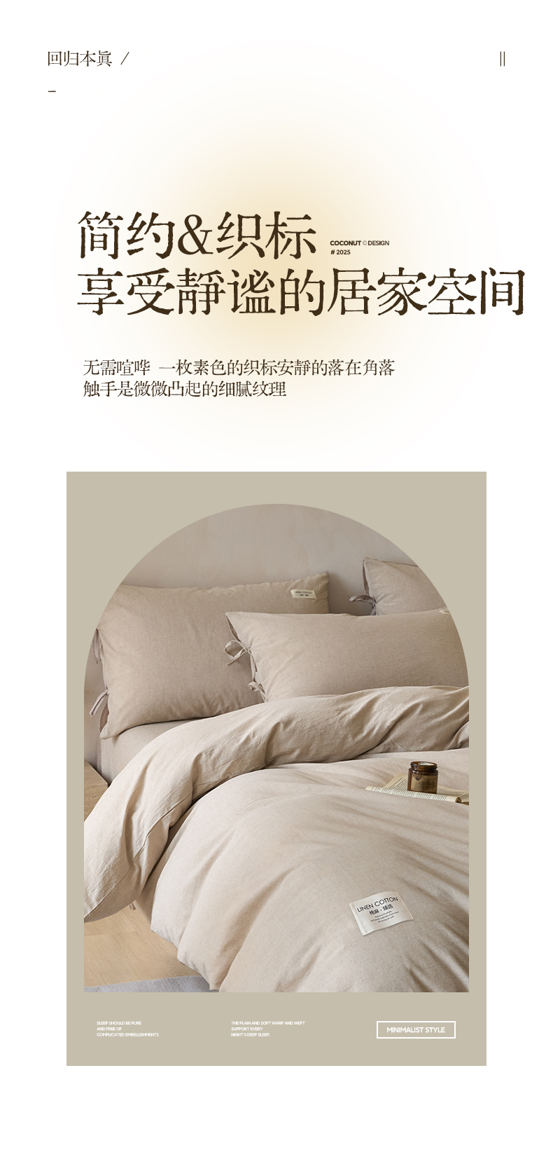 商品名称:涵宸家纺 2025新款色织棉麻四件套系列-单被套 原点-浅驼
