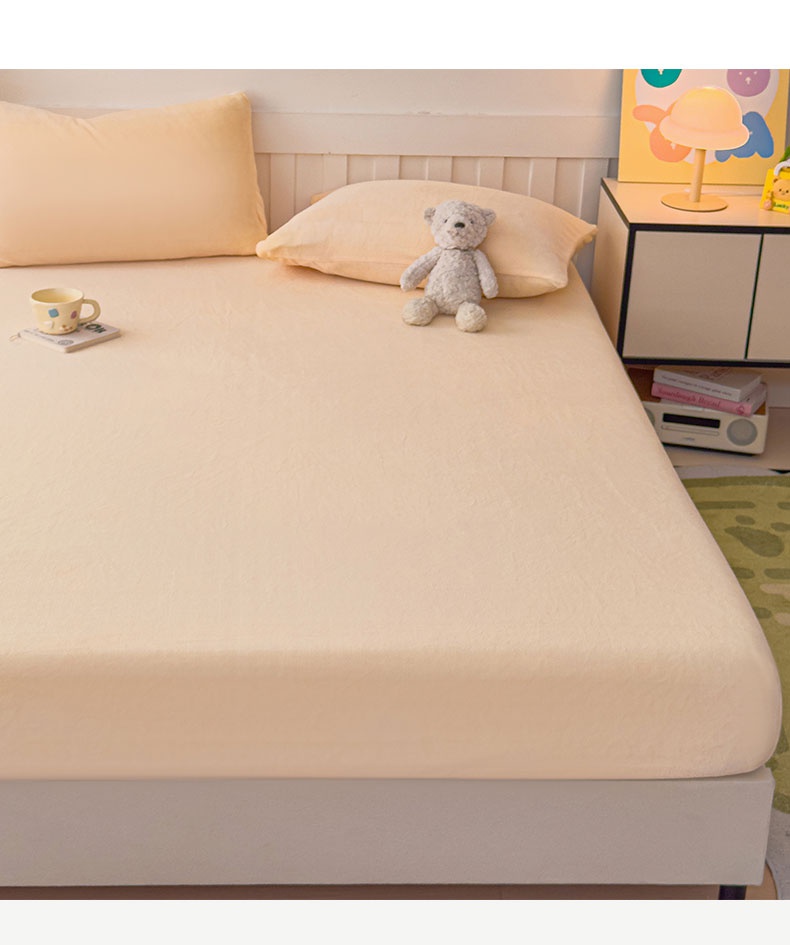 • 91家纺网 家纺一手货源 找家纺 富阿娜家纺 2025新款牛奶绒纯色床笠三件套 奶盐黄