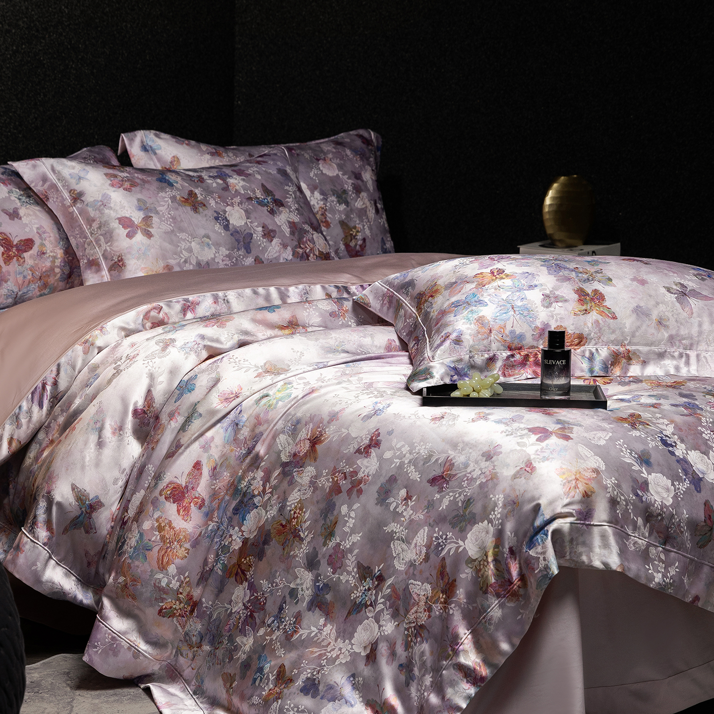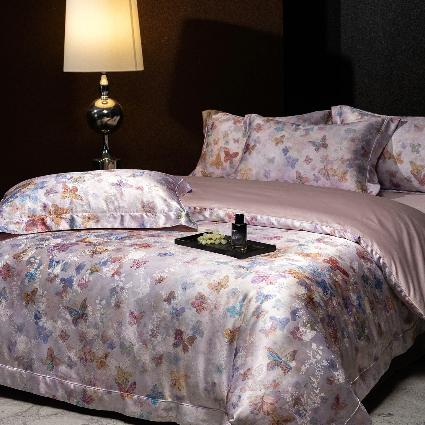 太古汇家居 2025新款桑真丝提花+印花系列四件套 星光蝶影-粉