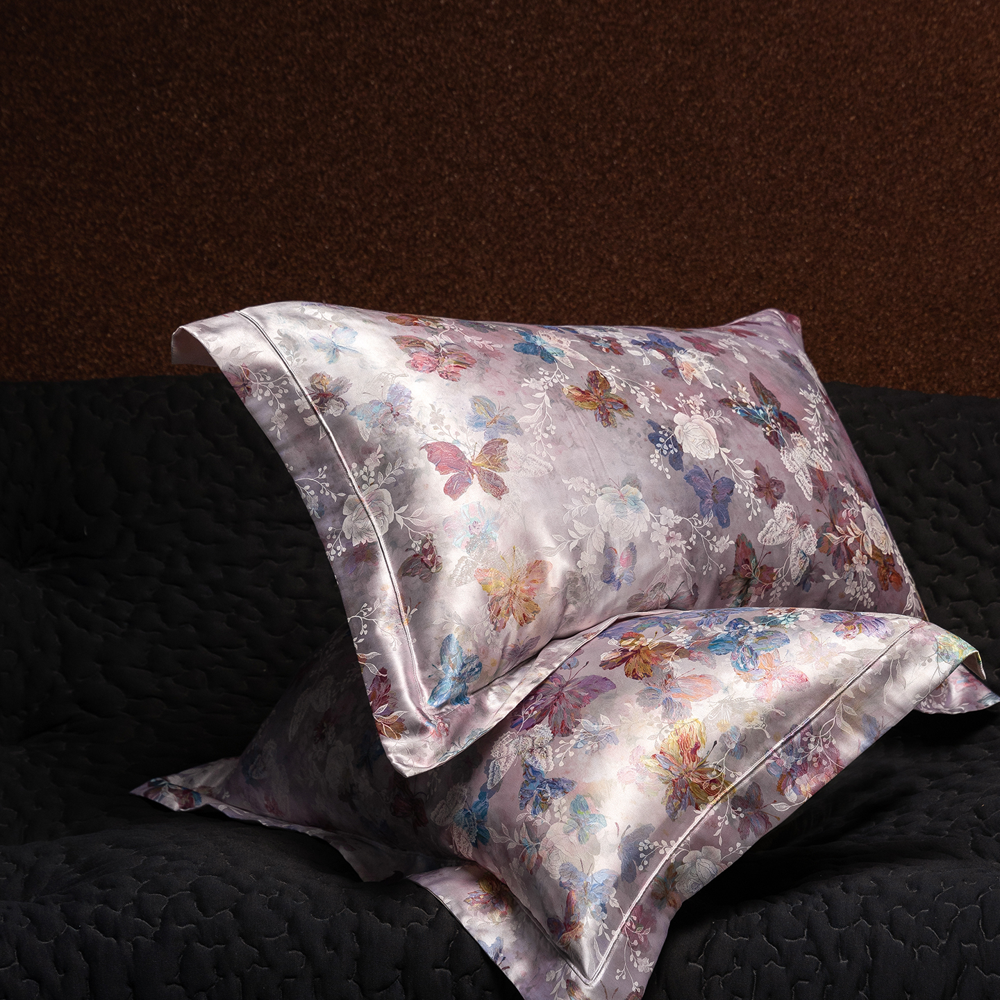 商品名称:太古汇家居 2025新款桑真丝提花+印花系列四件套 星光蝶影-粉