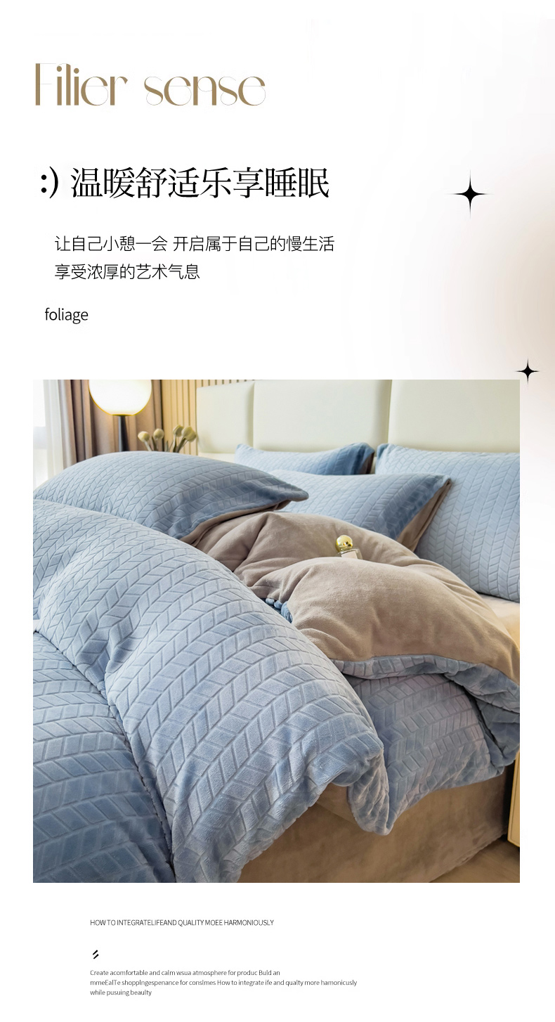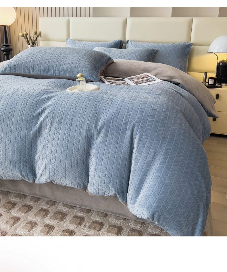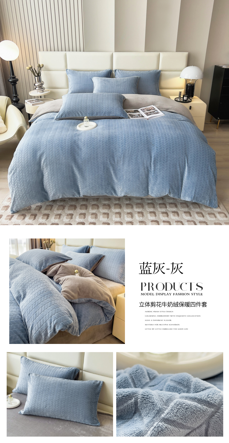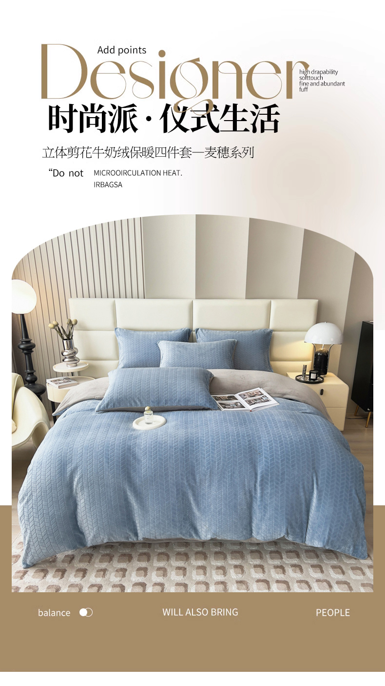 当前位置: 91家纺网 > 商品网购 > 床品套件 > 四件套 > 牛奶绒四件套 > 印季家纺 2025新款立体剪花麦穗牛奶绒四件套 蓝灰-灰