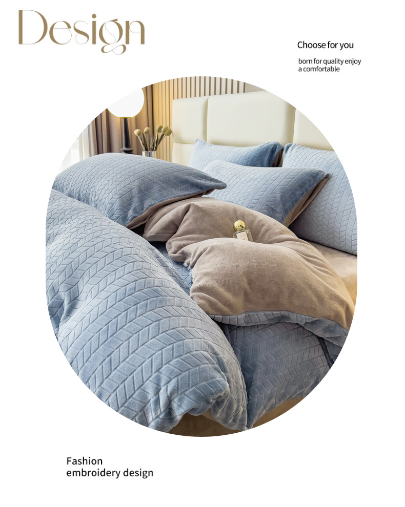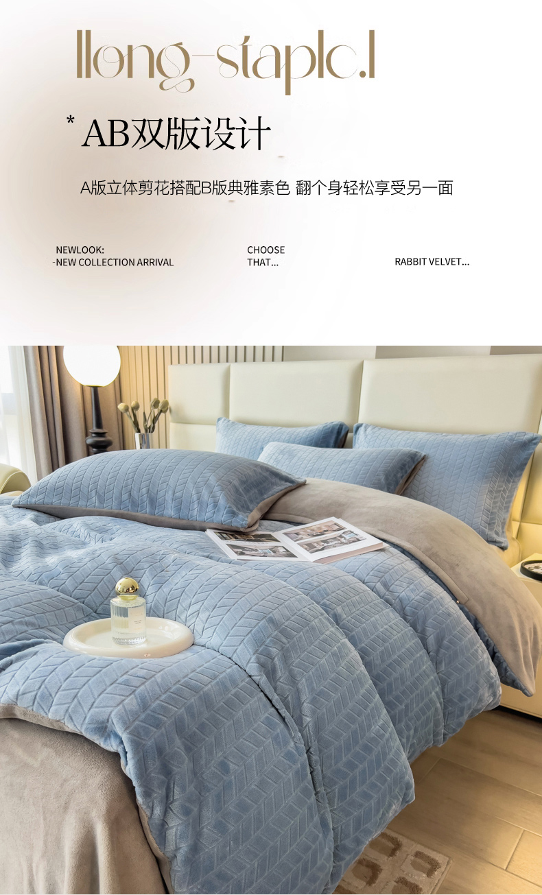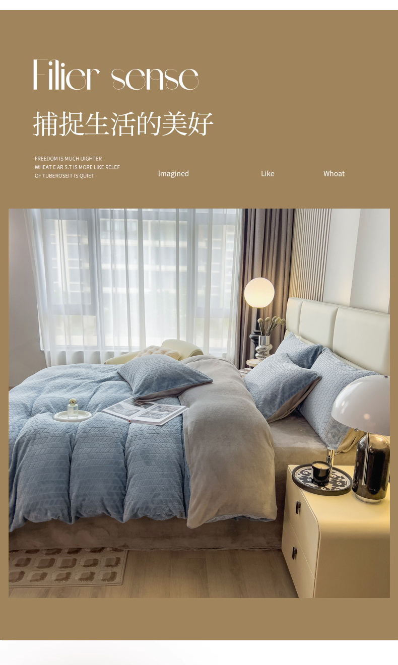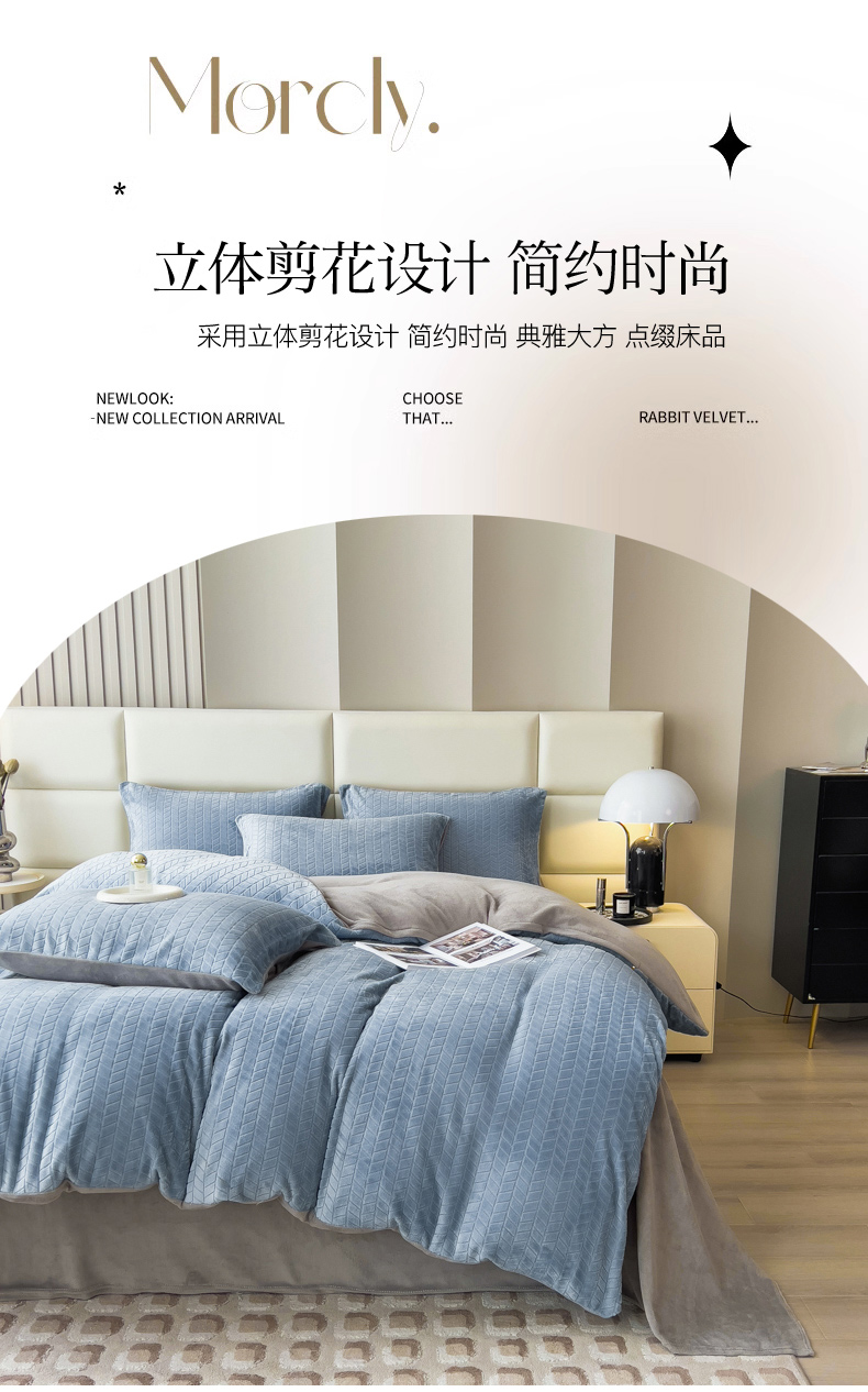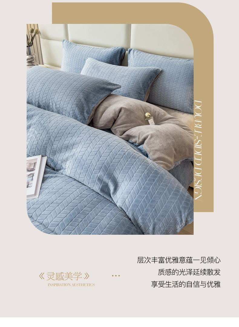 当前位置: 91家纺网 > 商品网购 > 床品套件 > 四件套 > 牛奶绒四件套 > 印季家纺 2025新款立体剪花麦穗牛奶绒四件套 蓝灰-灰