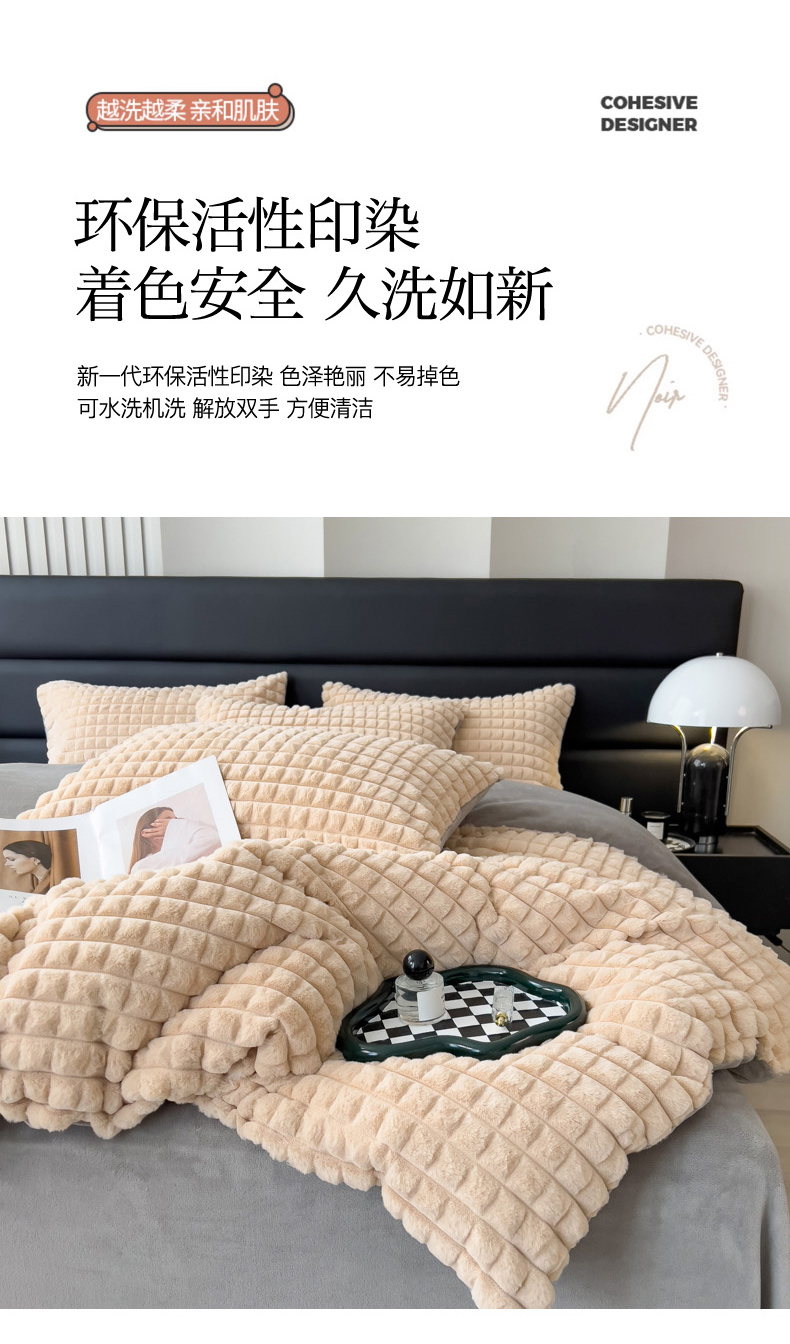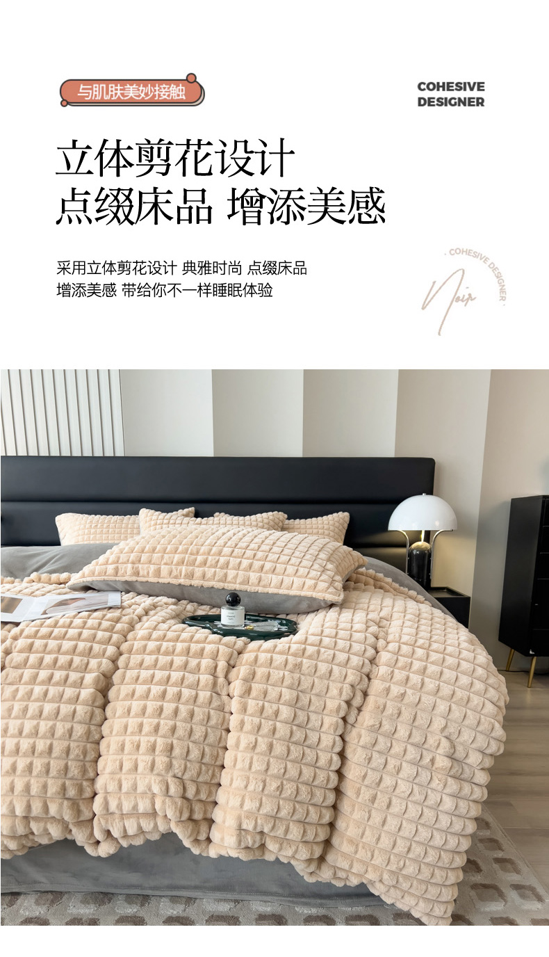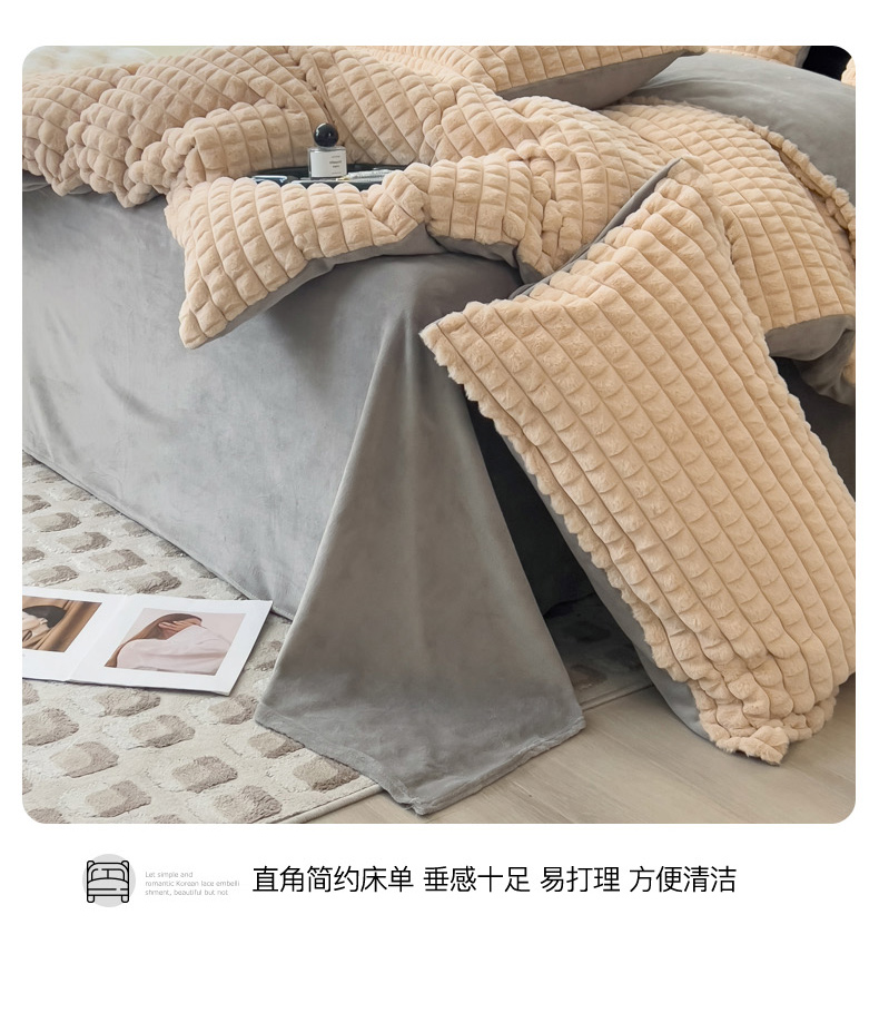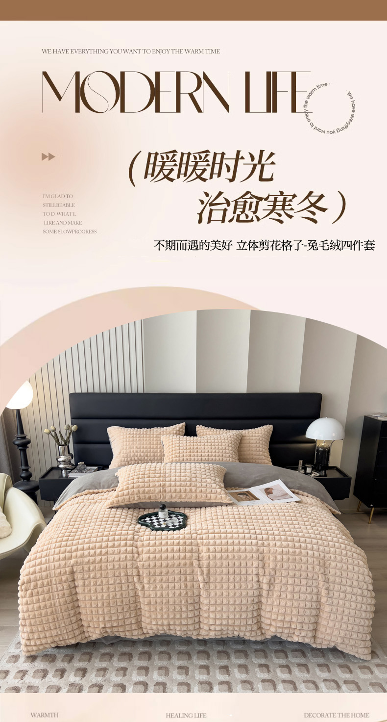 当前位置: 91家纺网 > 商品网购 > 床品套件 > 四件套 > 兔毛绒四件套 > 印季家纺 2025新款立体剪花格子兔毛绒四件套 卡其-灰