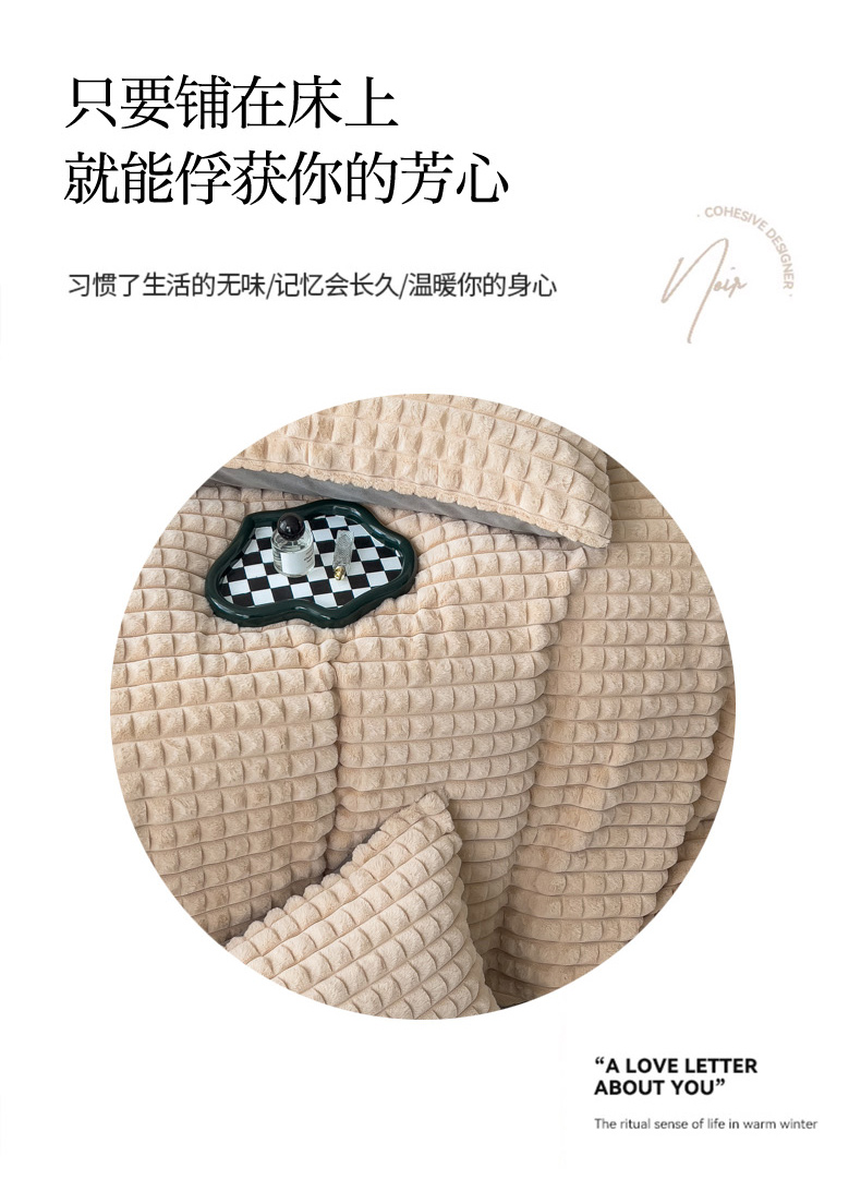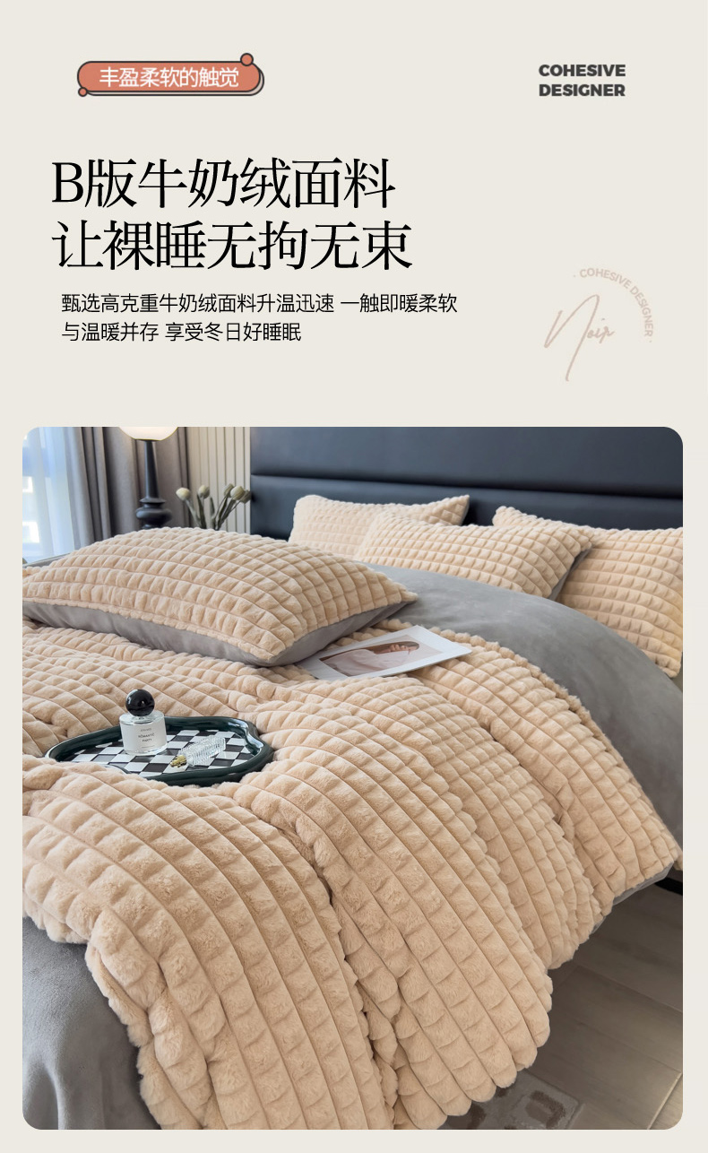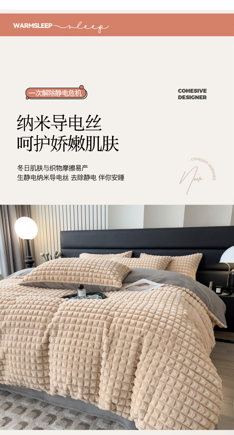 当前位置: 91家纺网 > 商品网购 > 床品套件 > 四件套 > 兔毛绒四件套 > 印季家纺 2025新款立体剪花格子兔毛绒四件套 卡其-灰