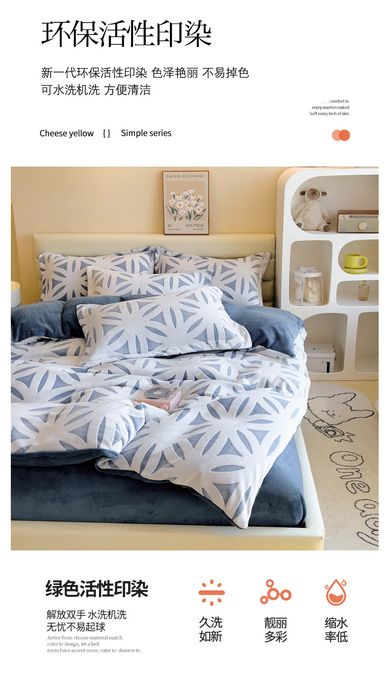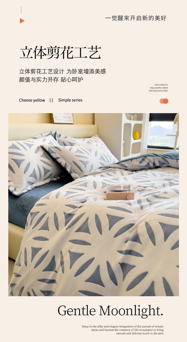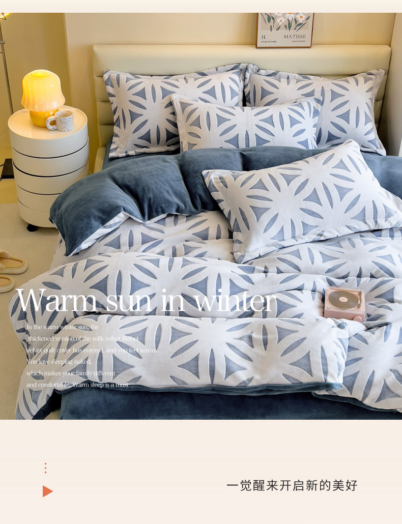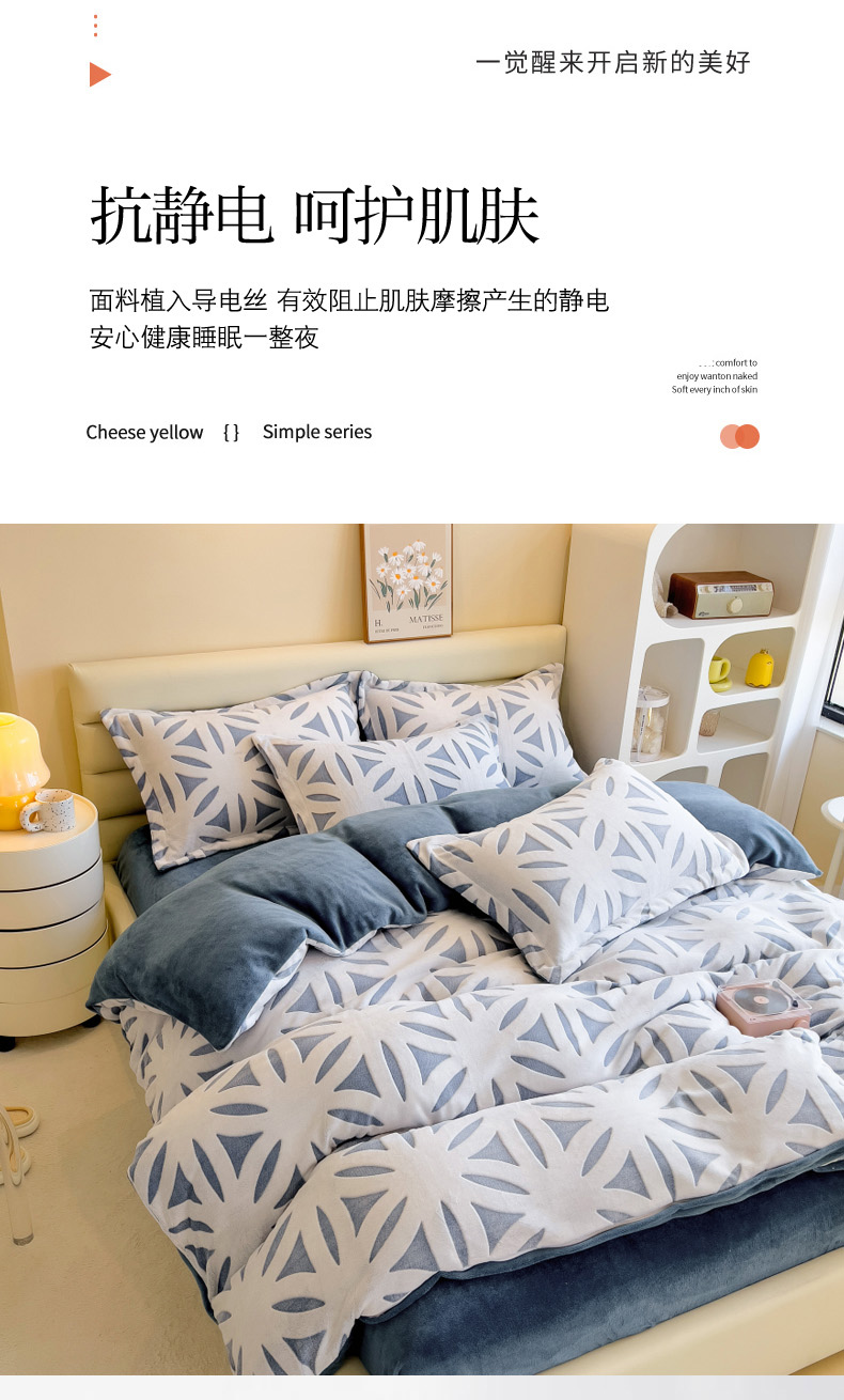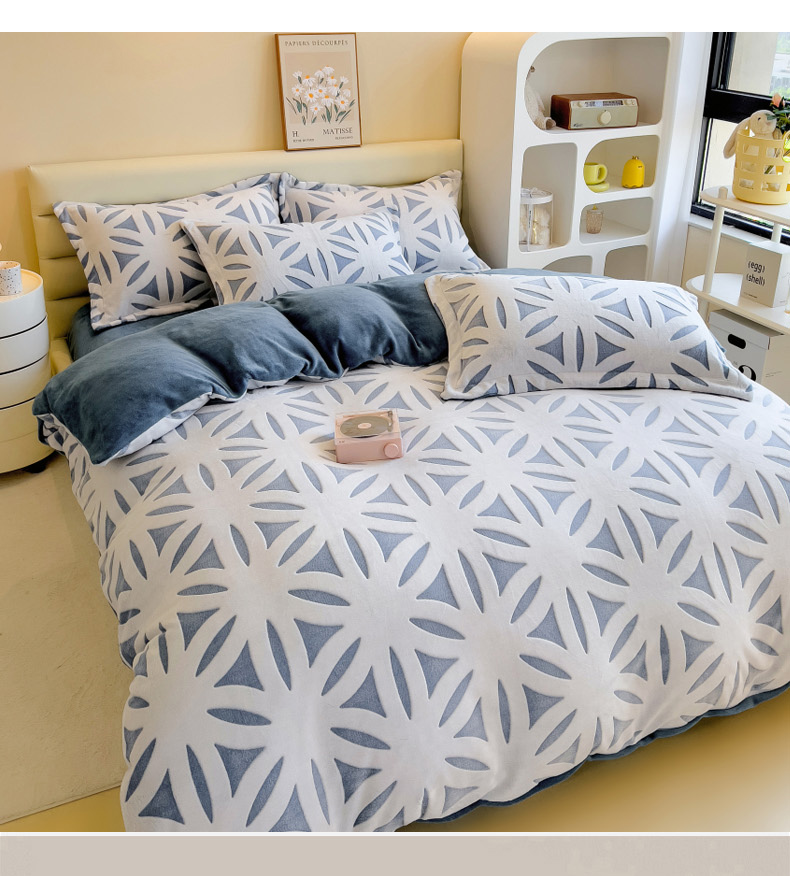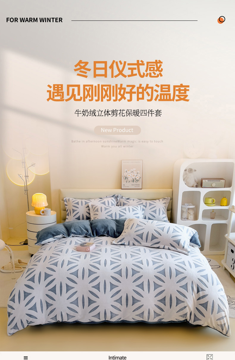 当前位置: 91家纺网 > 商品网购 > 床品套件 > 四件套 > 牛奶绒四件套 > 印季家纺 2025新款背印立体剪花牛奶绒四件套 雪花-蓝