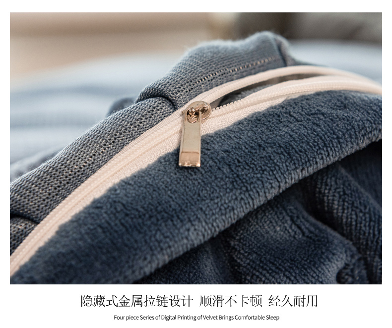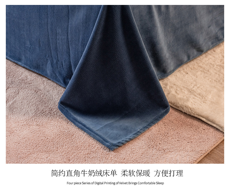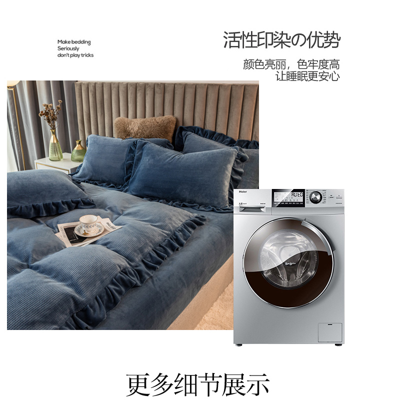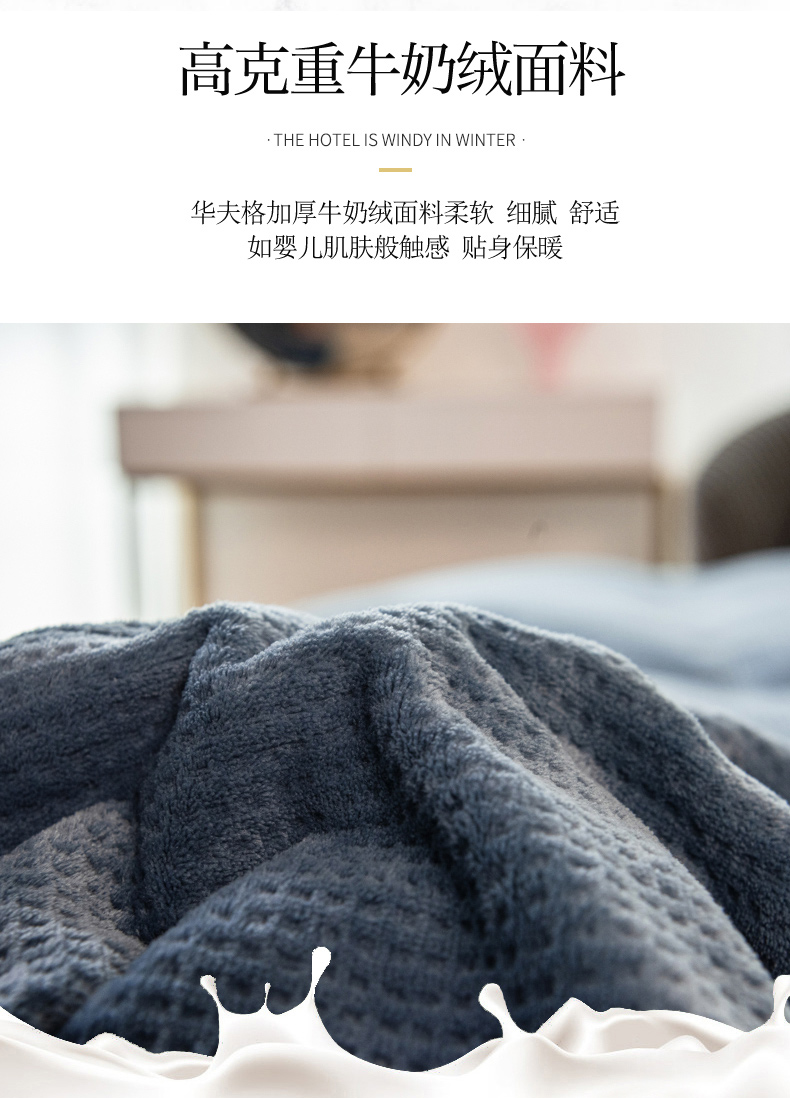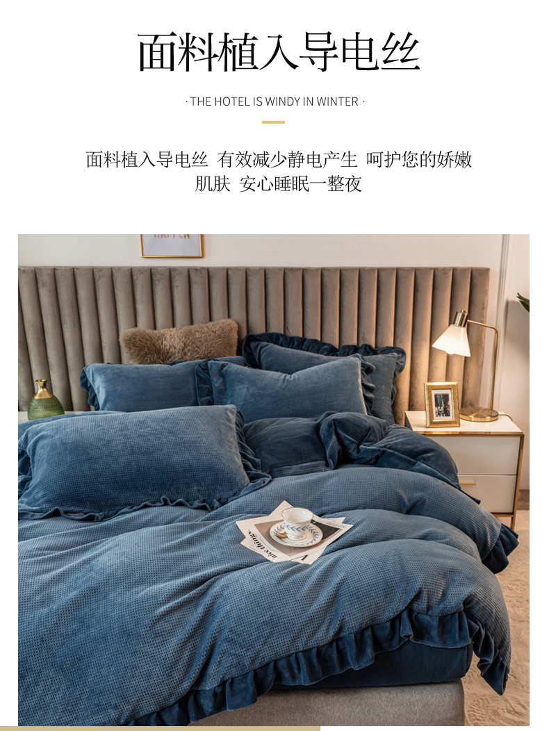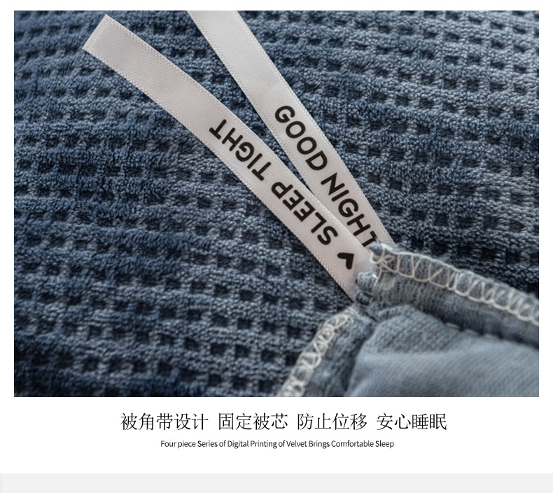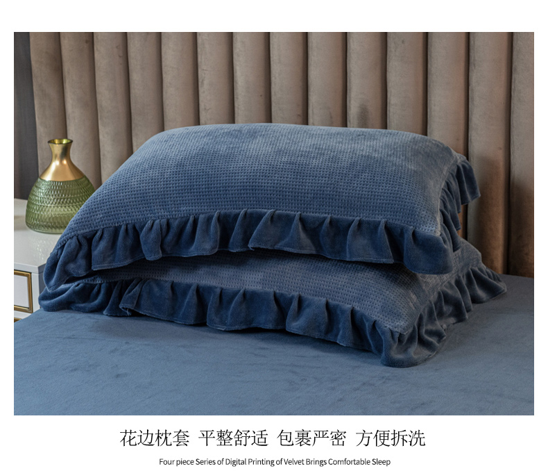 当前位置: 91家纺网 > 商品网购 > 床品套件 > 四件套 > 牛奶绒四件套 > 印季家纺 2025新款华夫格牛奶绒花边四件套 蓝灰
