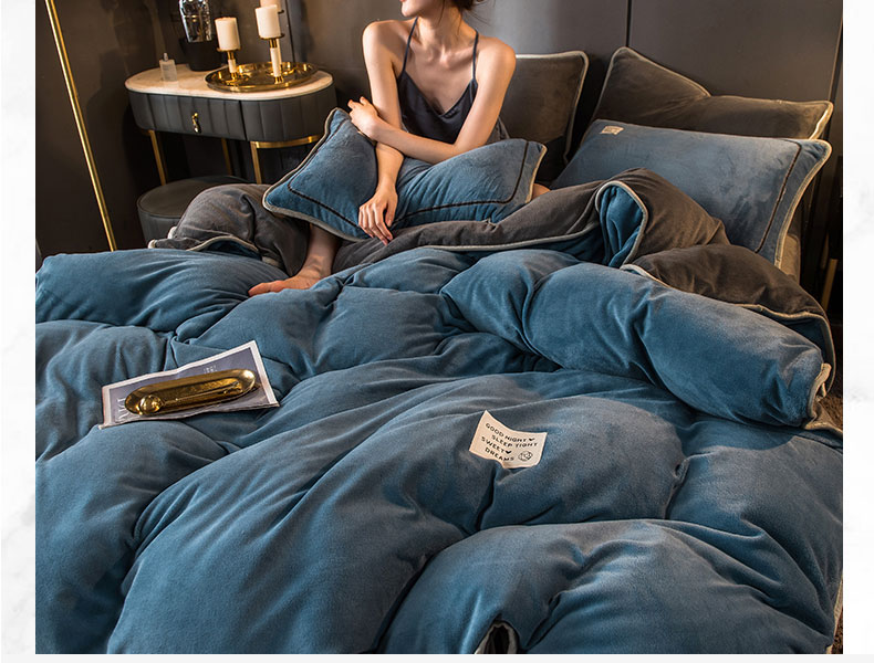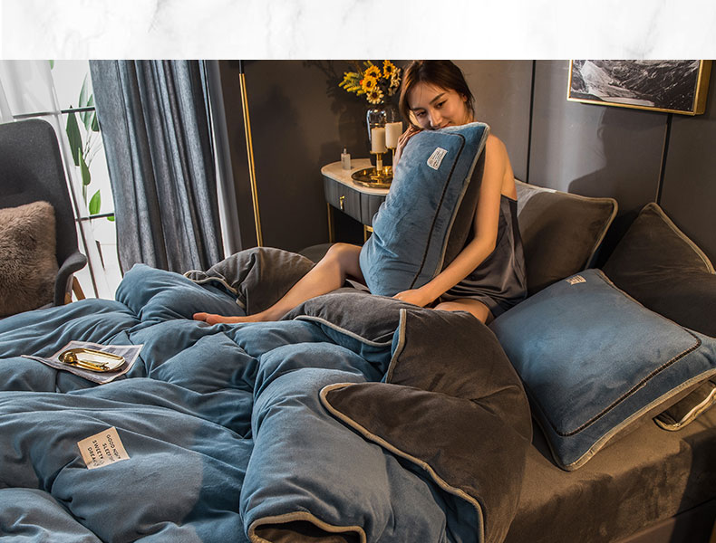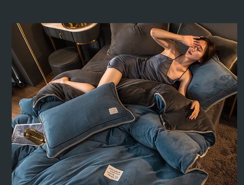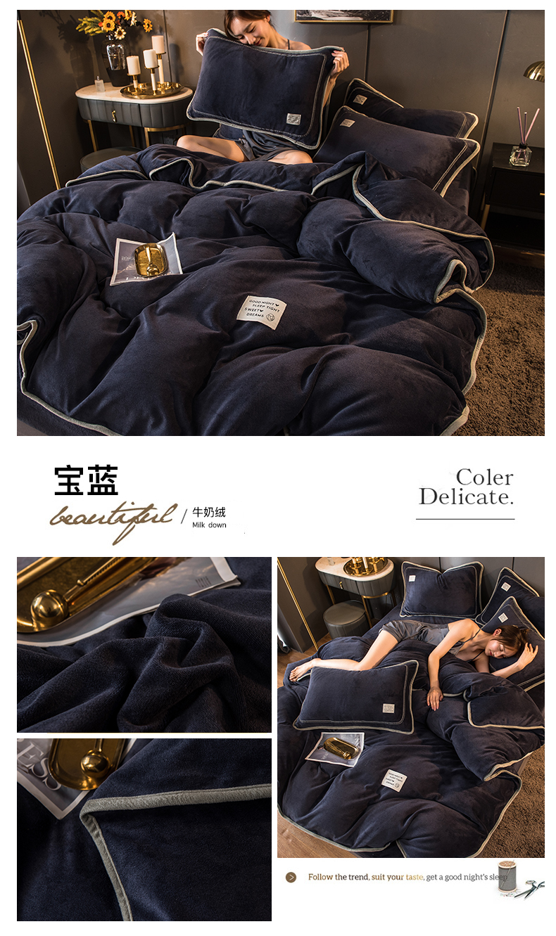 当前位置: 91家纺网 > 商品网购 > 床品套件 > 四件套 > 牛奶绒四件套 > 印季家纺 2025新款牛奶绒纯色包边四件套 蓝灰-深灰
