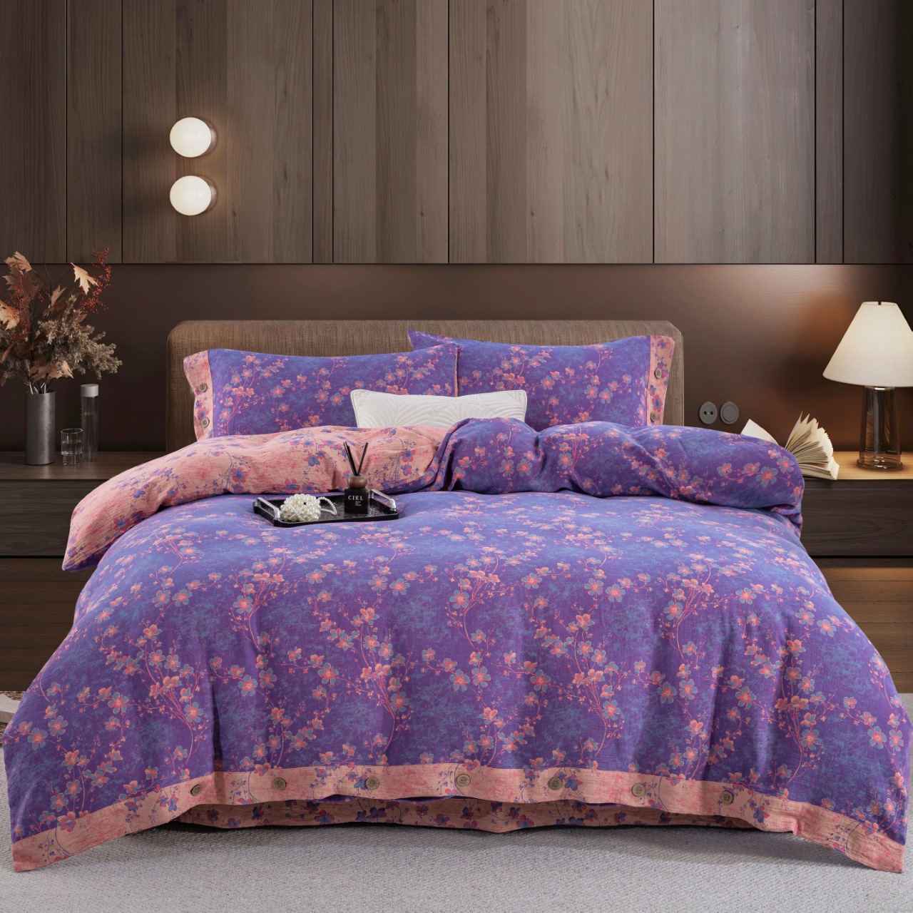 (总)双层纱家居 2024新款腊梅花系列四件套,梅醉春秋-粉,梅醉春秋-兰,梅醉春秋-紫