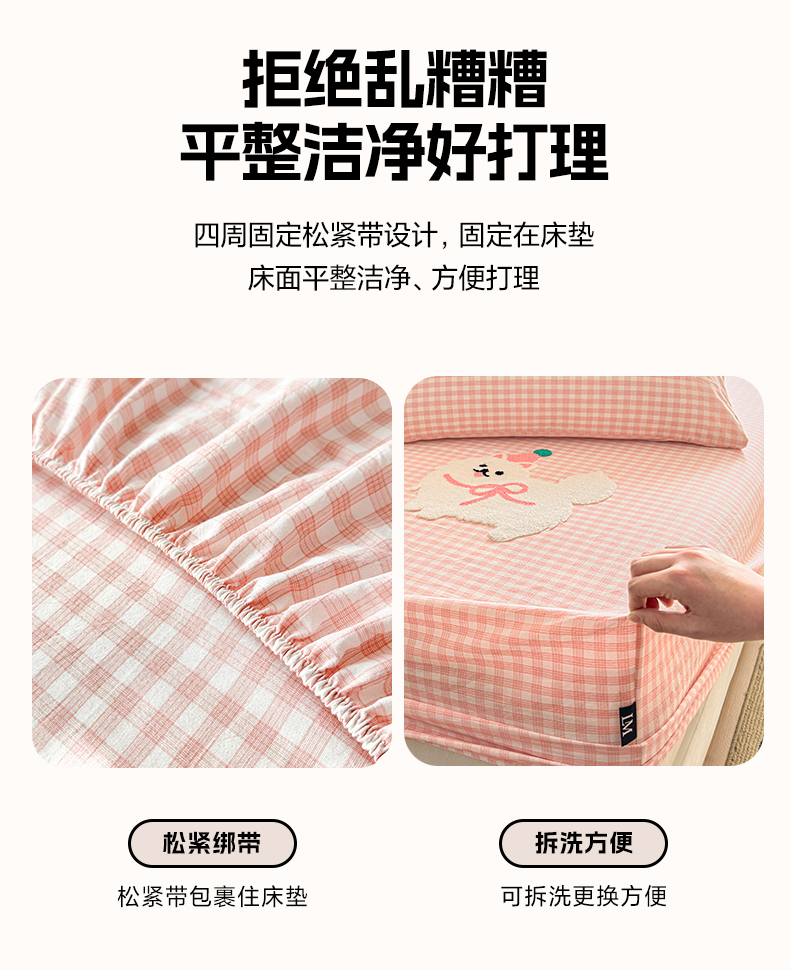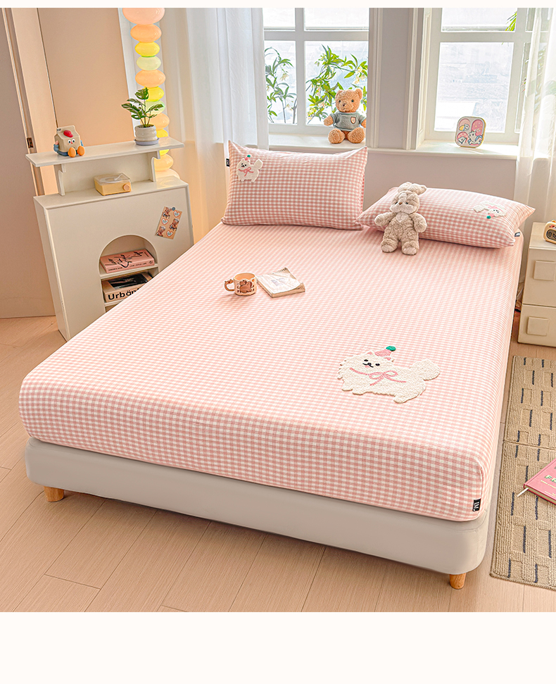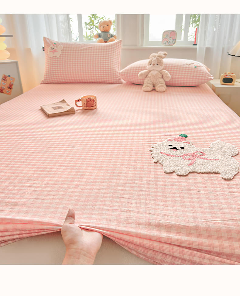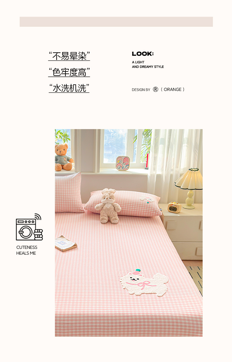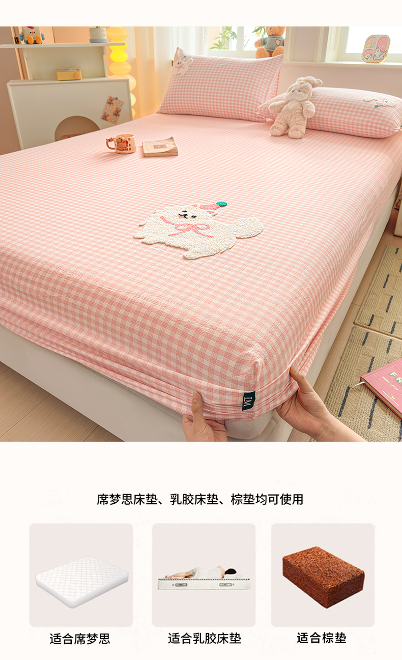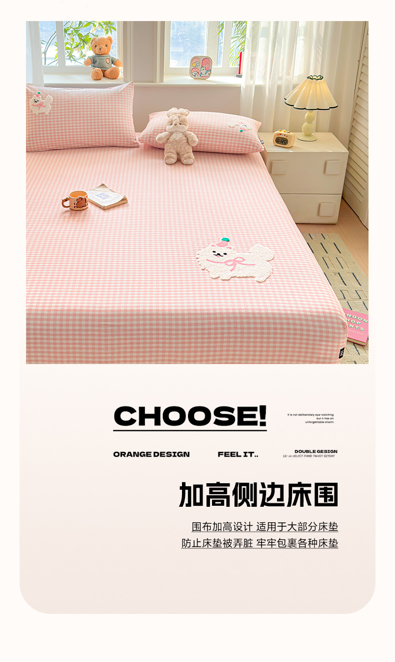 乐美家纺 2026新款全棉纯棉水洗棉毛巾绣单品床笠单件床笠 小狗凯特