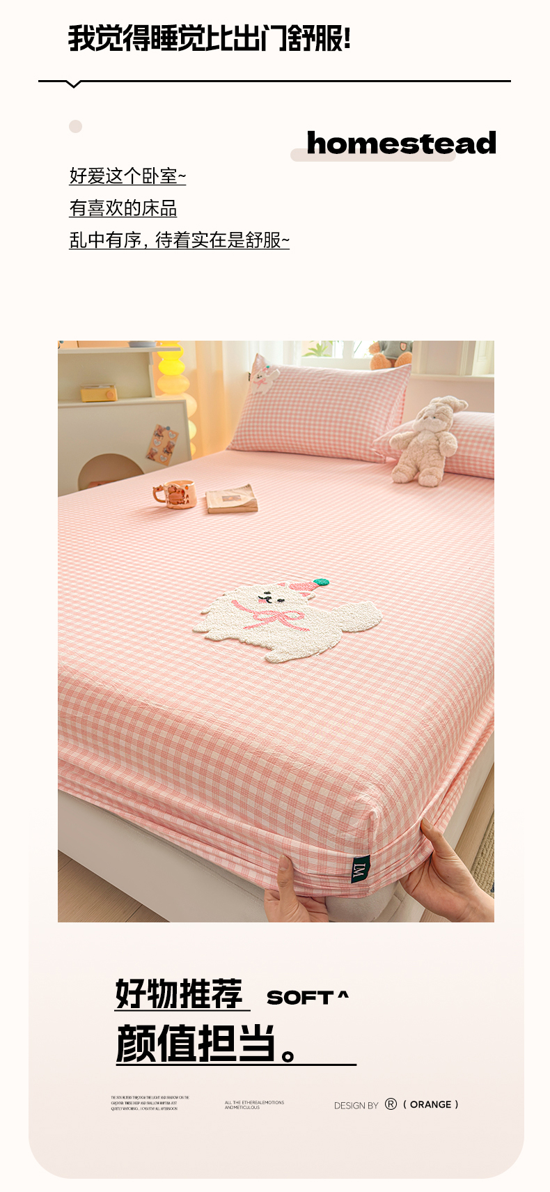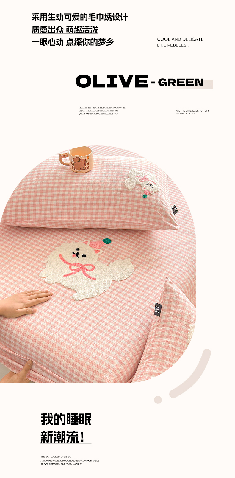 (总)乐美家纺 2025新款A类高克重刺绣牛奶绒床笠三件套,好朋狗,森林乐队,熊熊派对,小熊奶盖,萌宠派对,萝莉猫