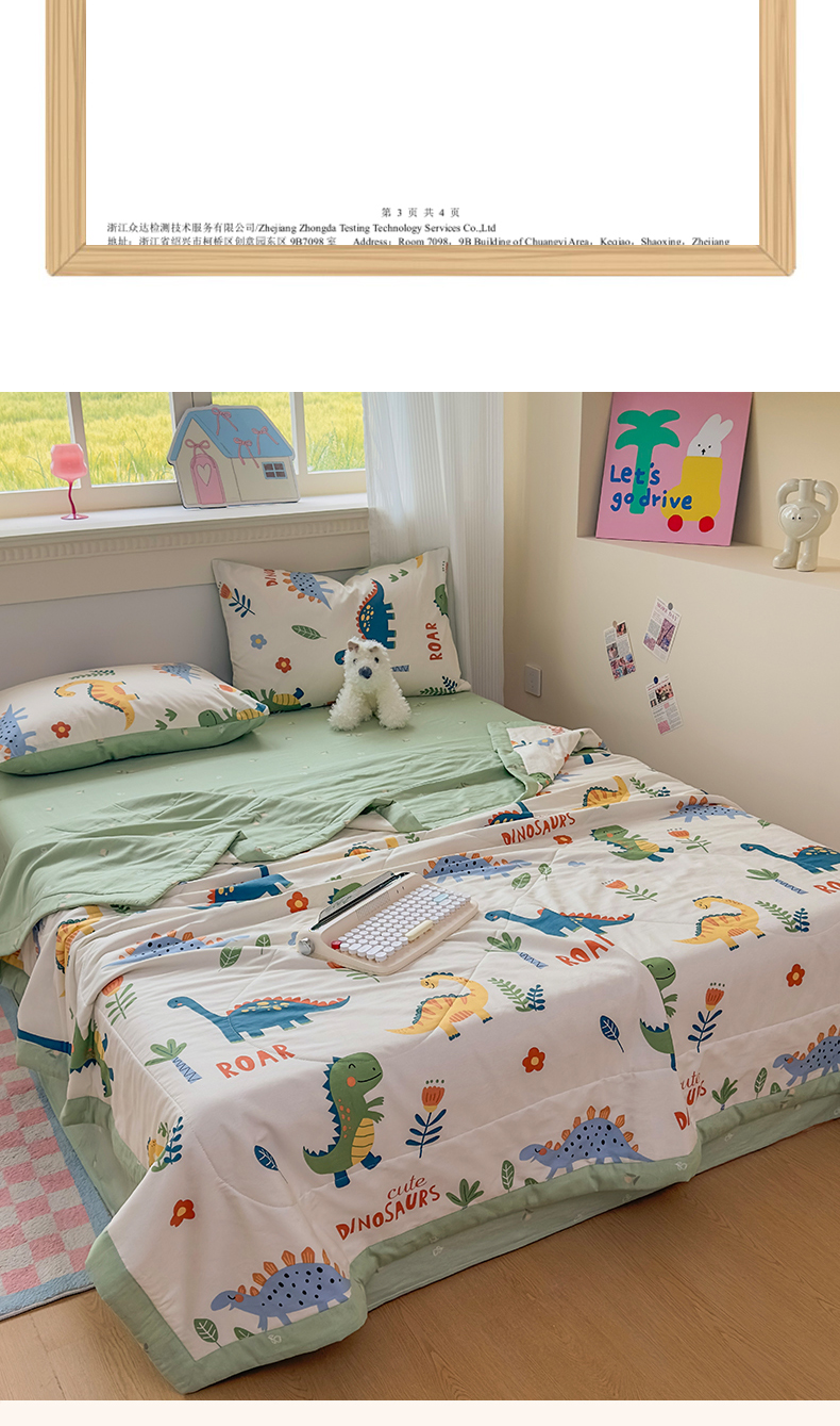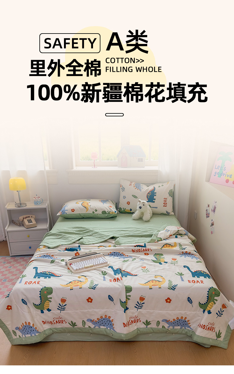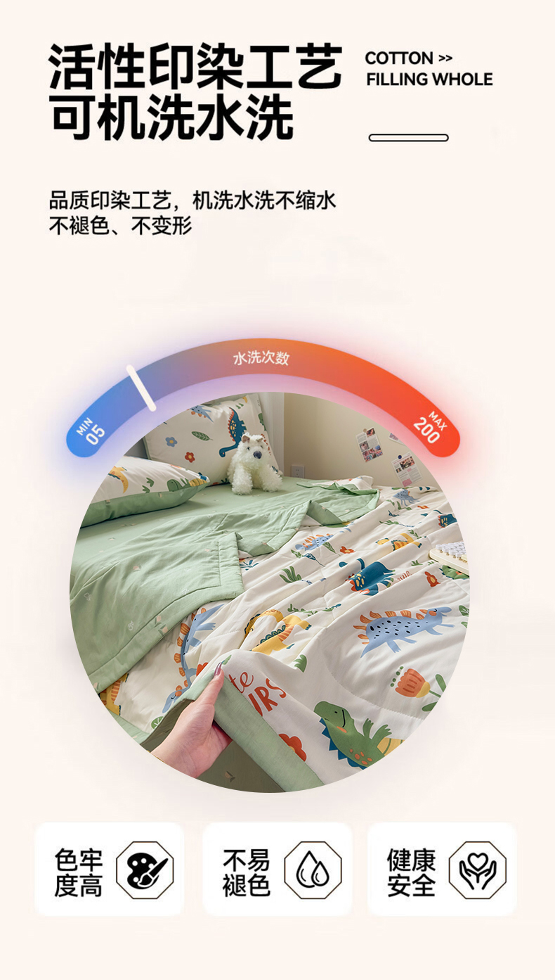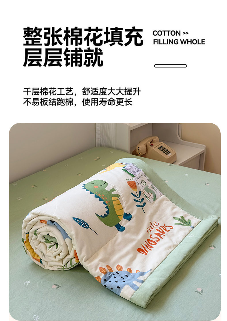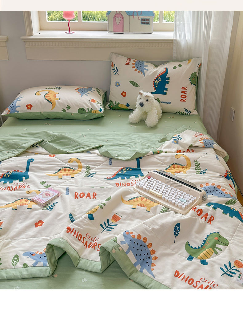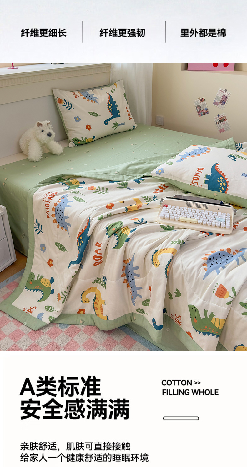 • 91家纺网 家纺一手货源 找家纺 蓝雀翎 2025新款全棉印花新疆棉花夏被 恐龙谷