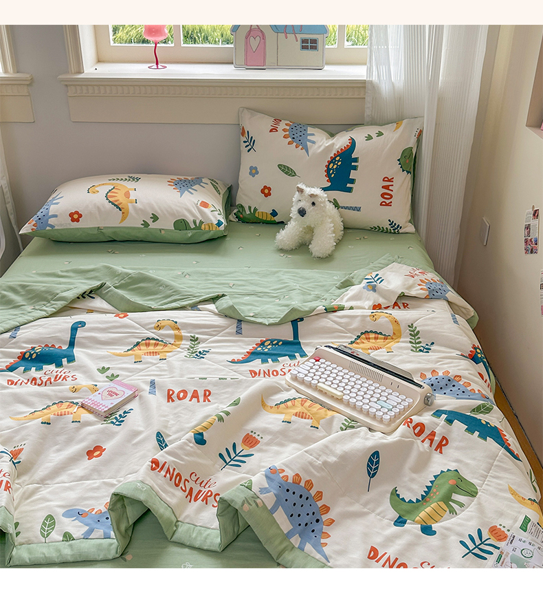 蓝雀翎 2025新款全棉印花新疆棉花夏被 恐龙谷