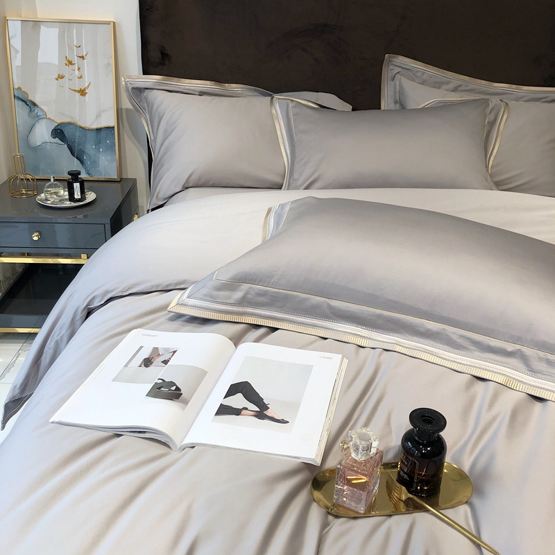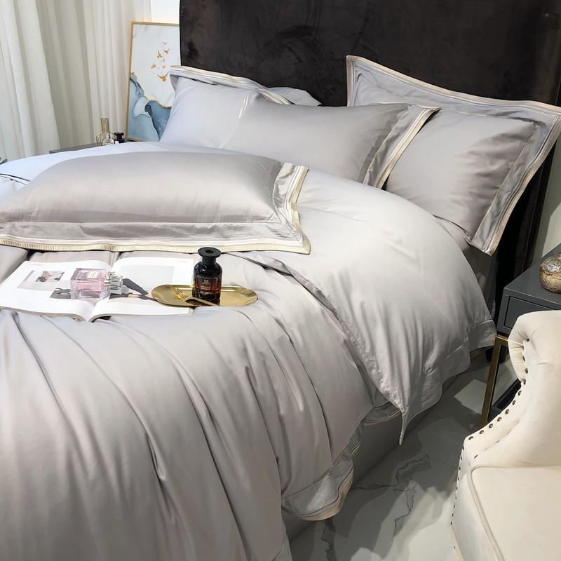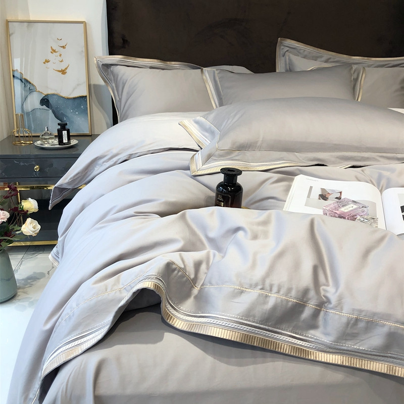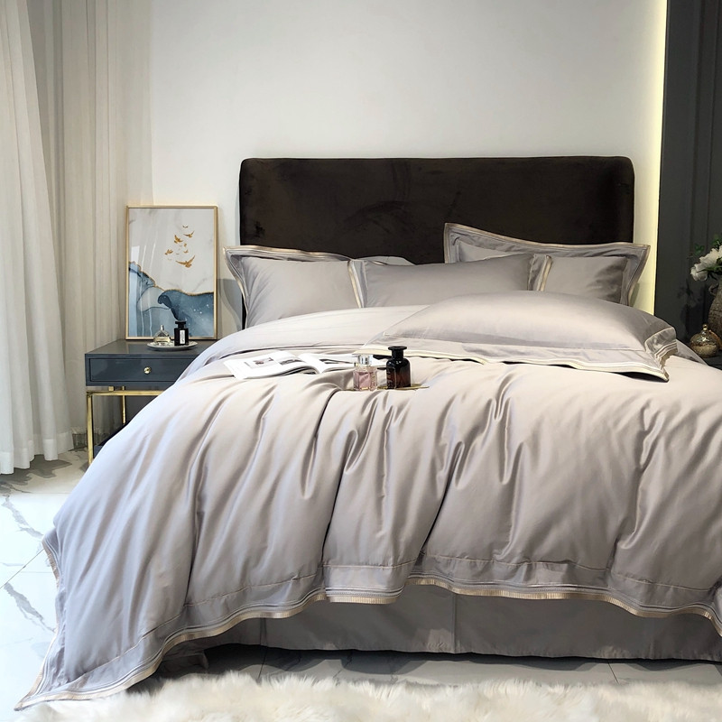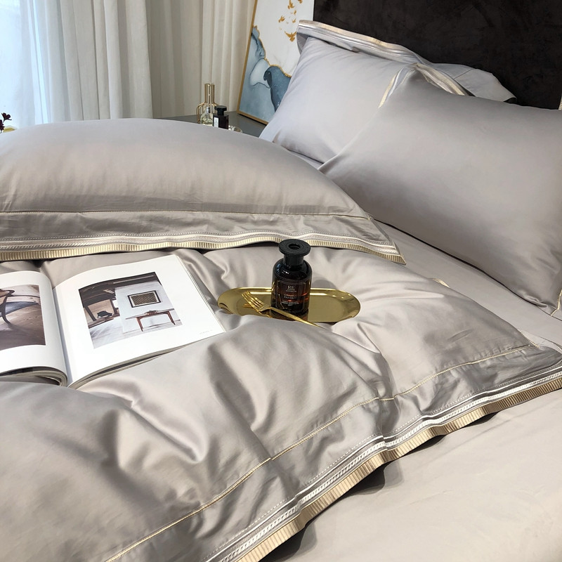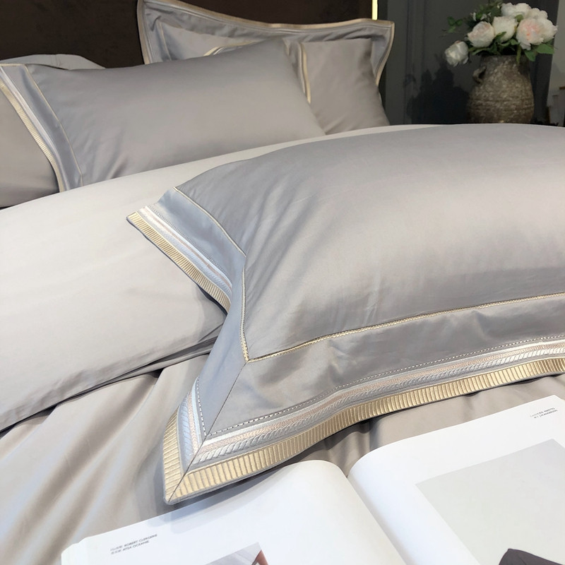 太古汇 2020新款60支长绒棉高定绣花赫本系列四件套 暖灰