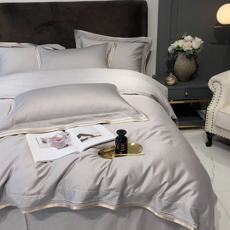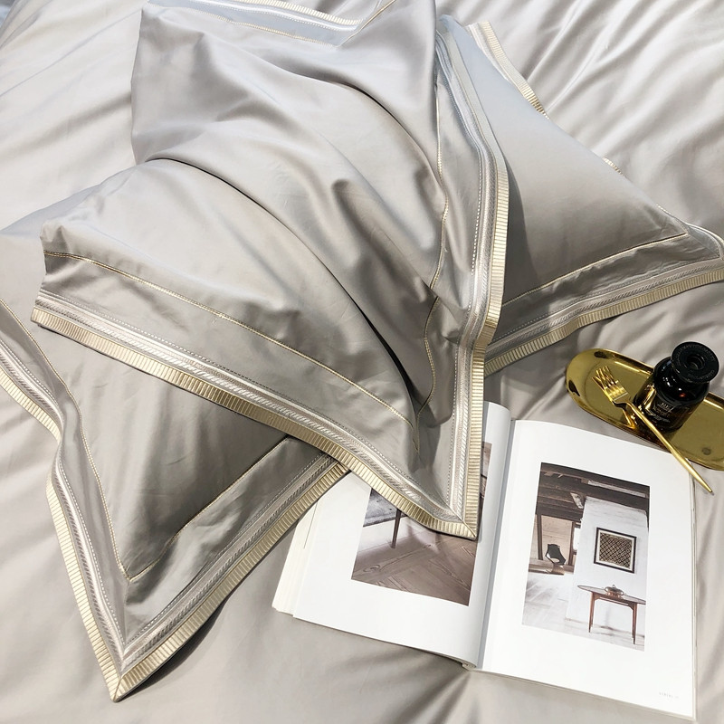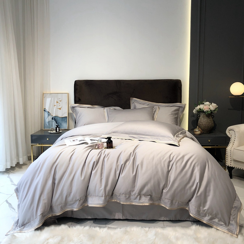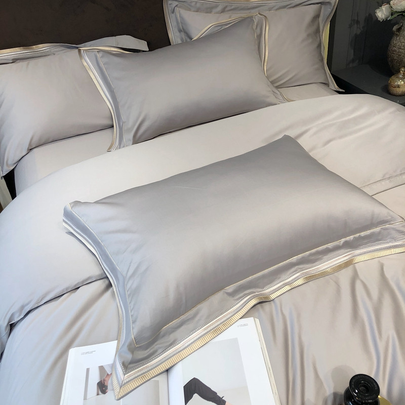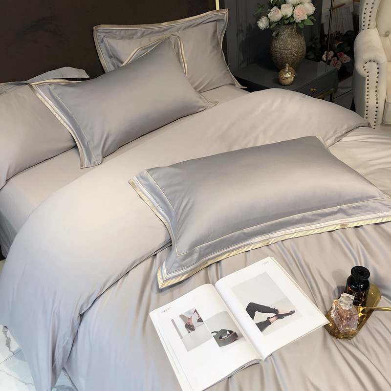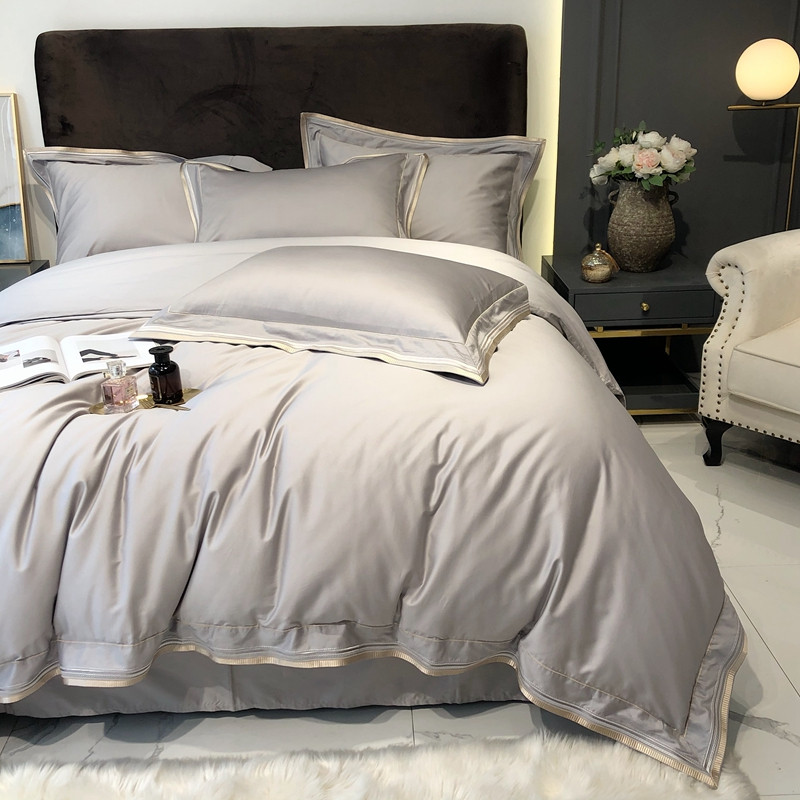 太古汇 2020新款60支长绒棉高定绣花赫本系列四件套 暖灰