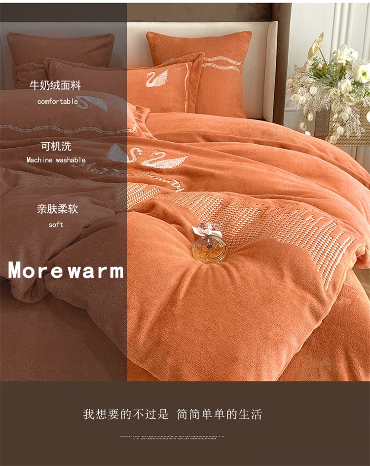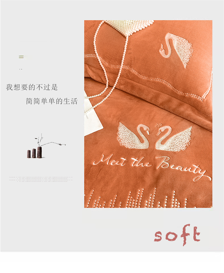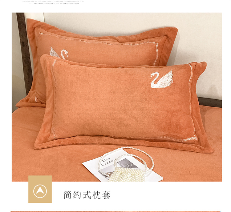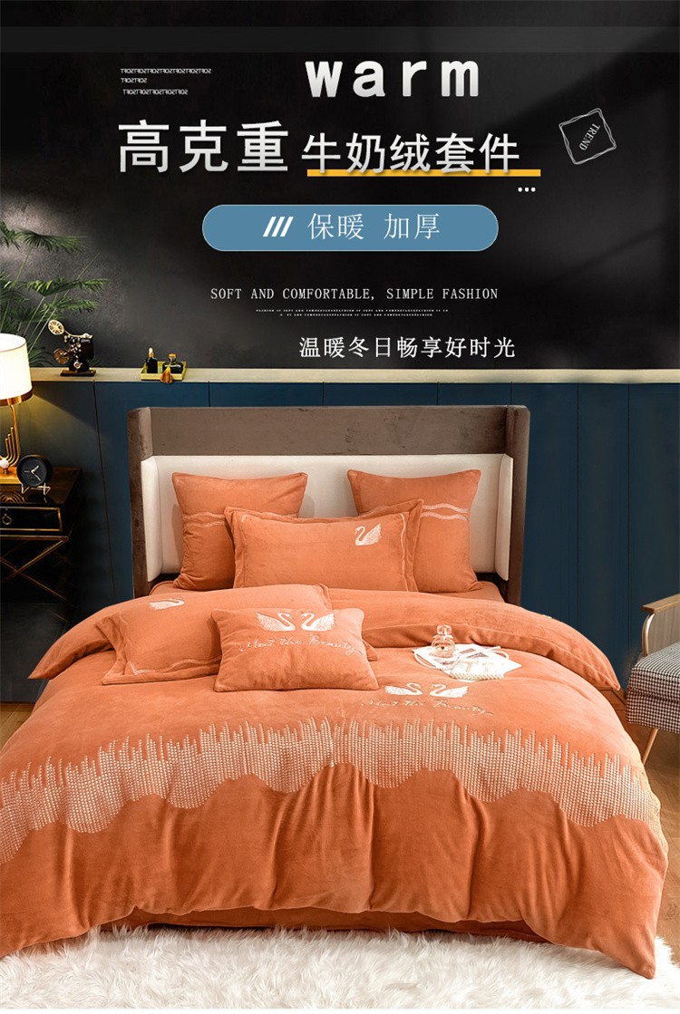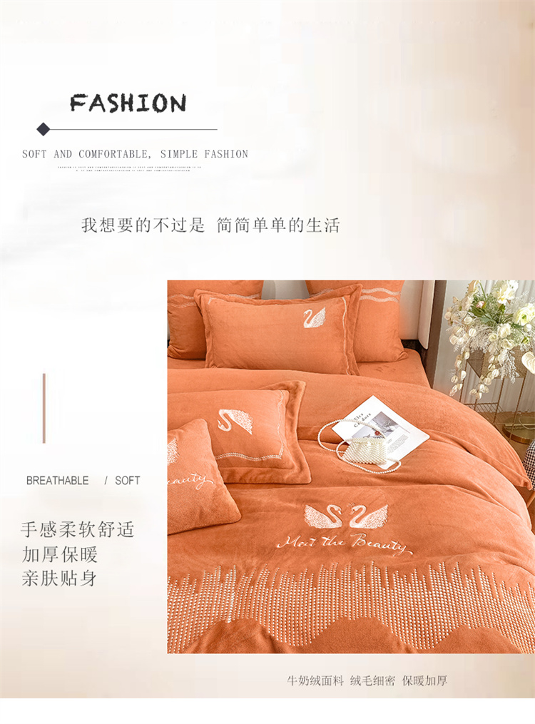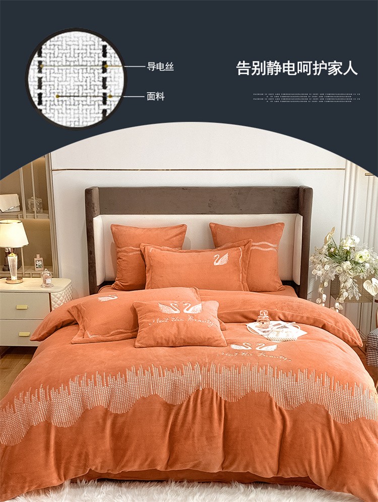 商品名称:安妮 2021新款高克重牛奶绒刺绣四件套-施华洛 南瓜橘