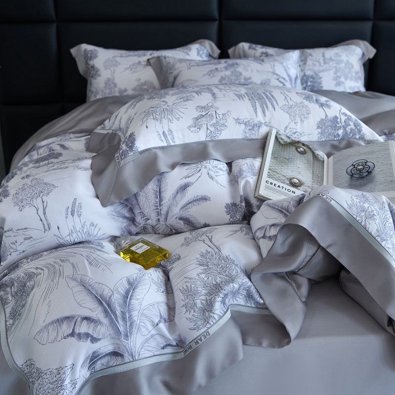 当前位置: 91家纺网 > 商品网购 > 床品套件 > 四件套 > 莱赛尔四件套 > 榻尚家居 2023新款清风醉系列80印花天丝夏被四件套 清风醉灰