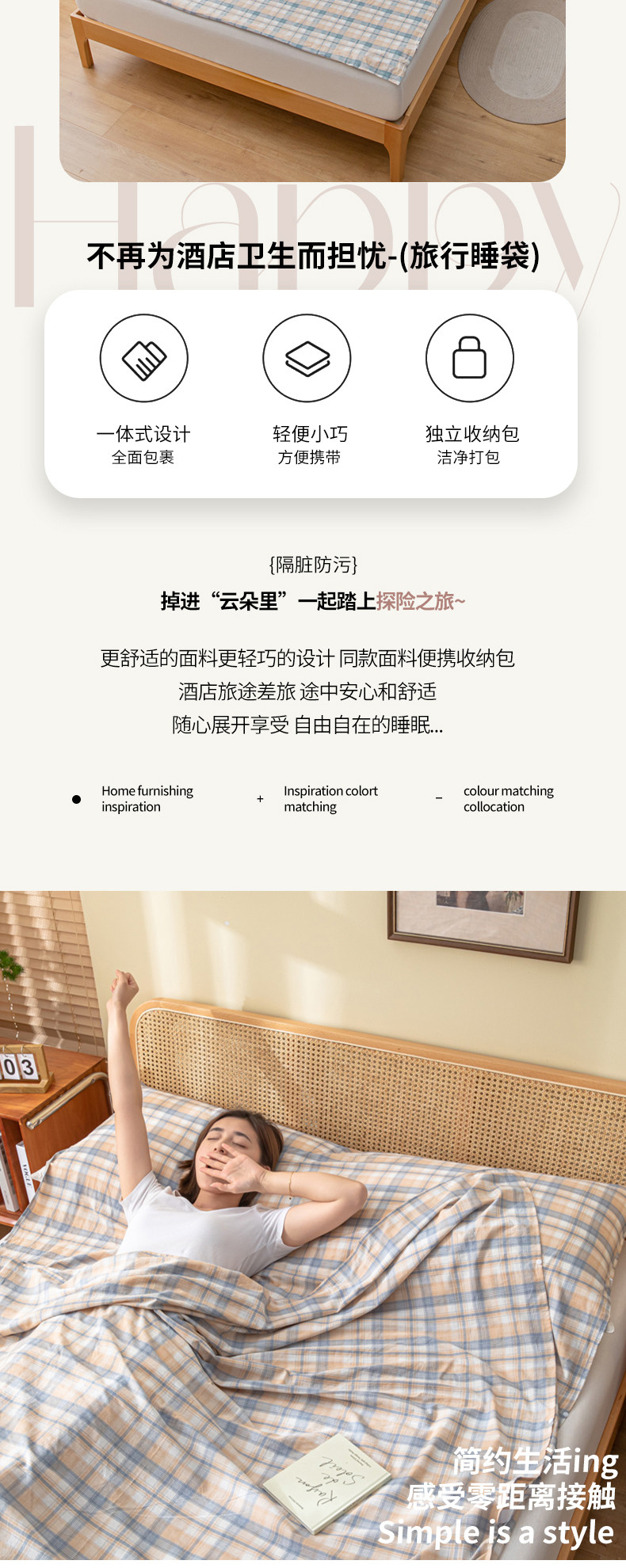商品名称:格子铺 2023新款隔脏睡袋旅行袋 睡袋-贝拉蓝格