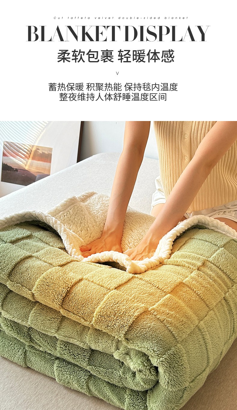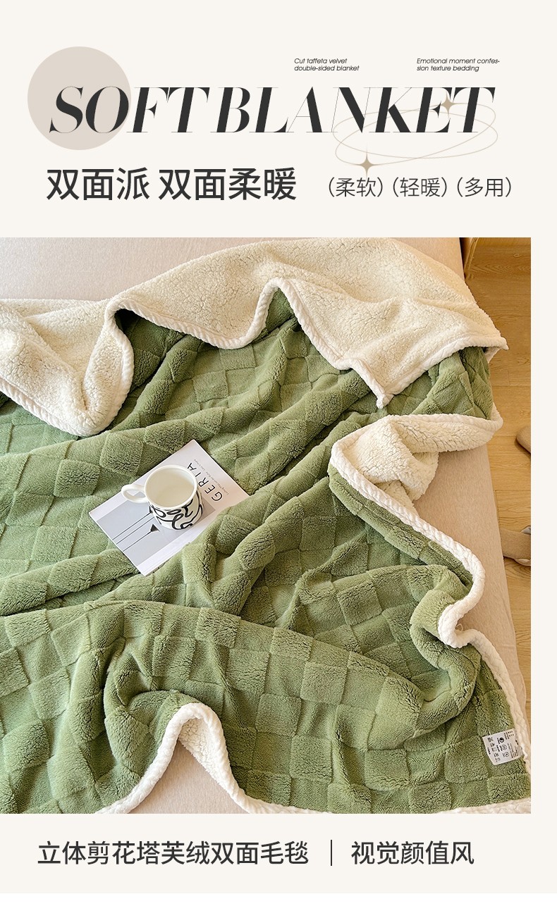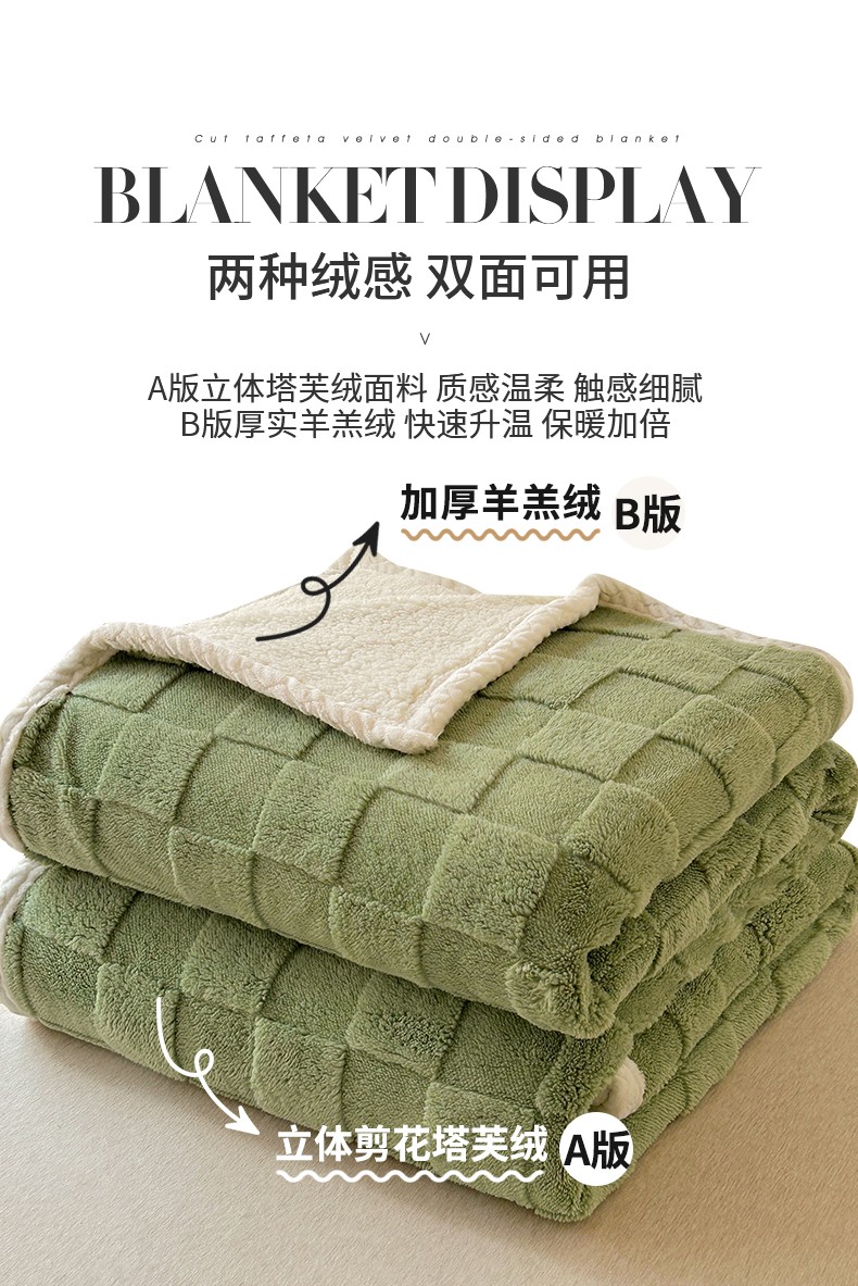 商品名称:湘之帛 2024直播新款高克重塔芙绒羊羔绒多功能盖毯毛毯 棋盘格绿