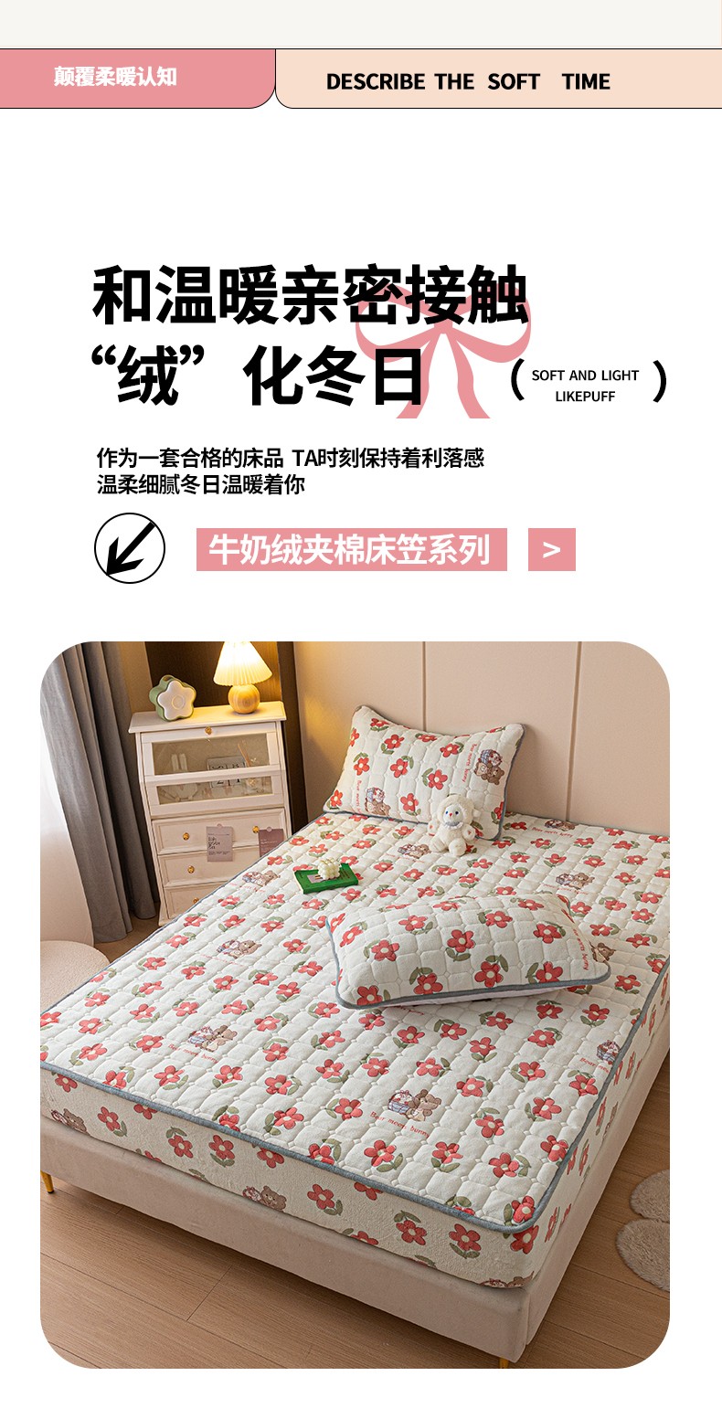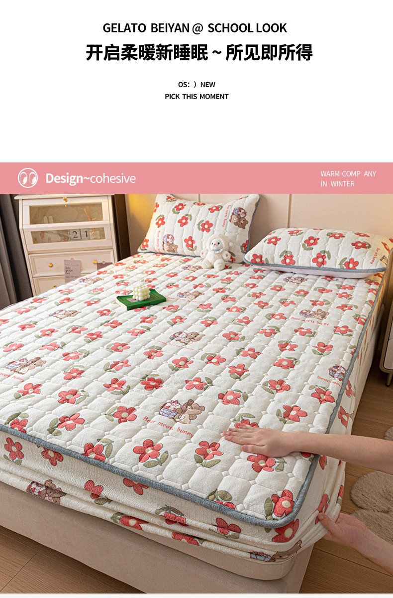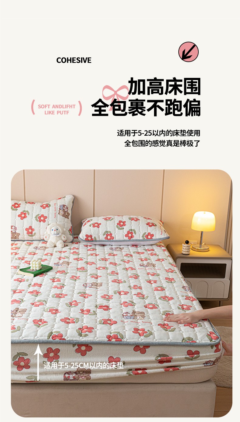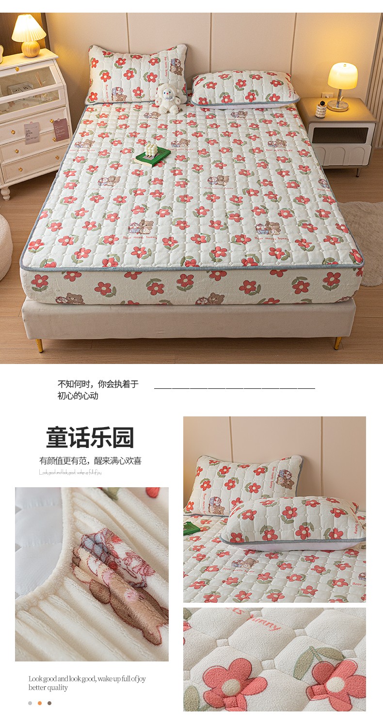 商品名称:格子铺 2023新款印花牛奶绒大豆夹棉床笠 童话乐园