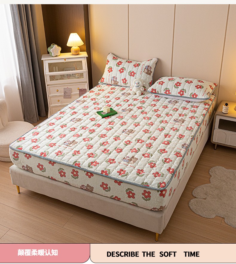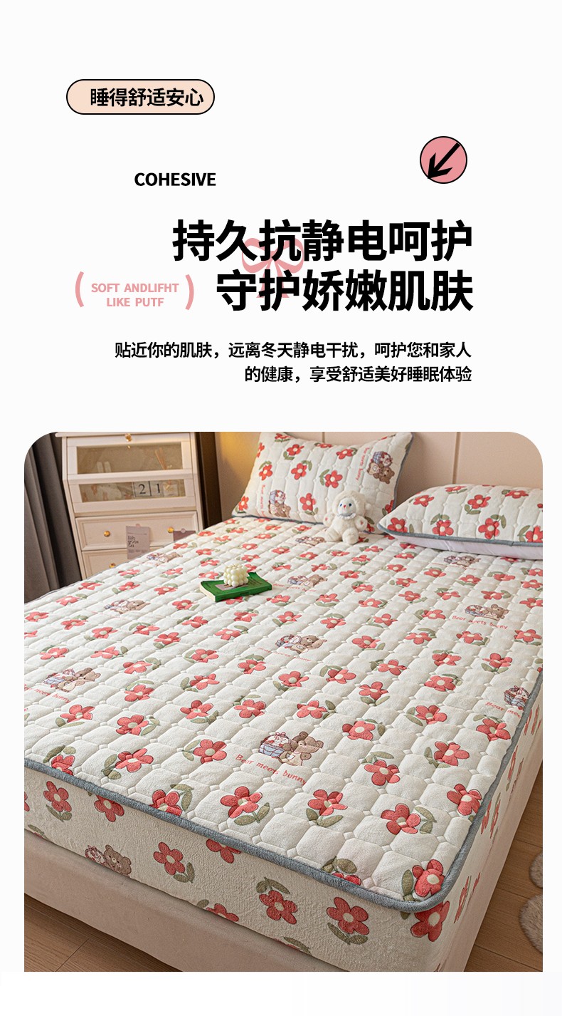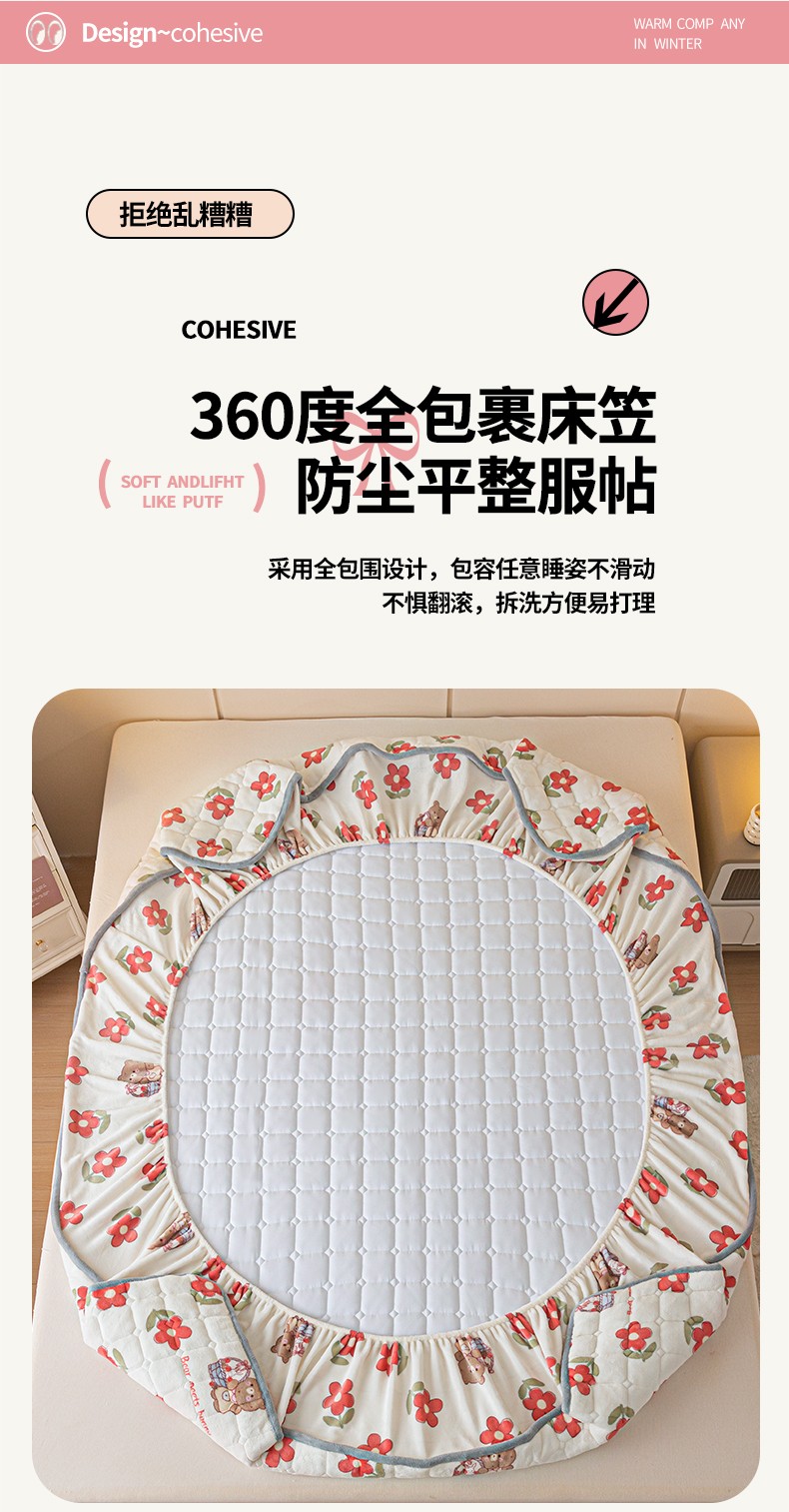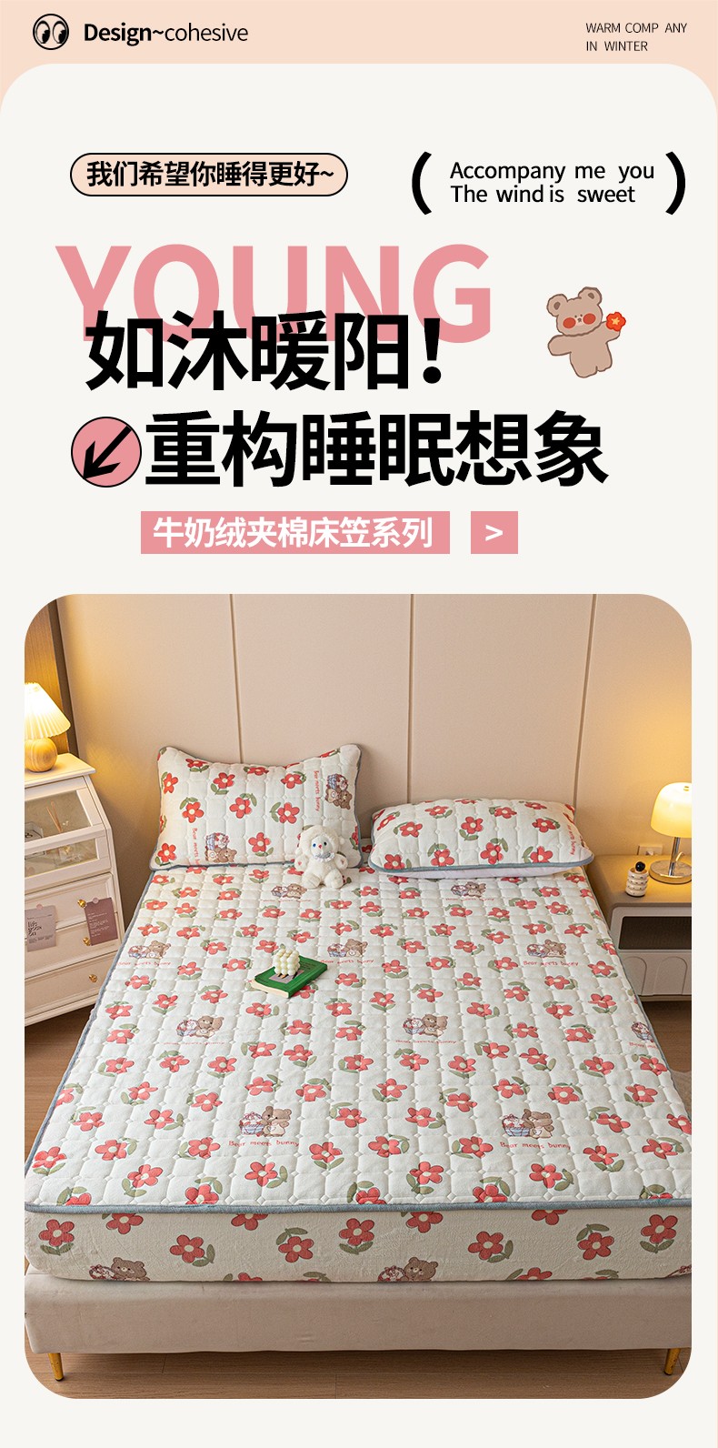 商品名称:格子铺 2023新款印花牛奶绒大豆夹棉床笠 童话乐园