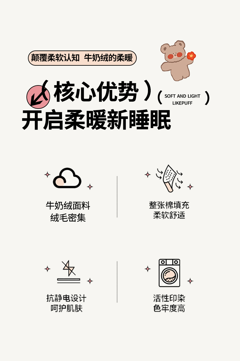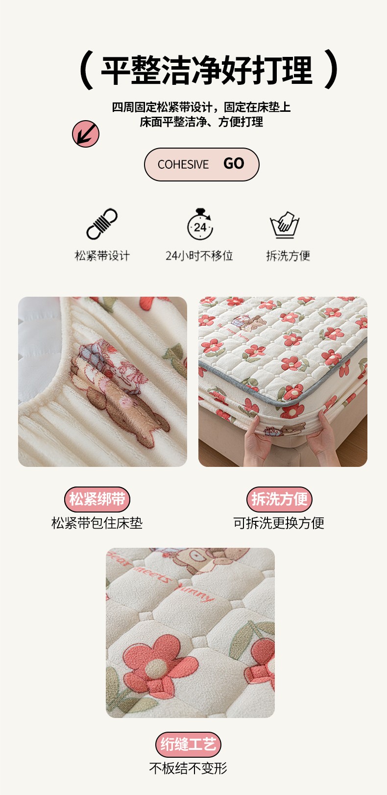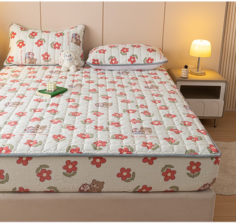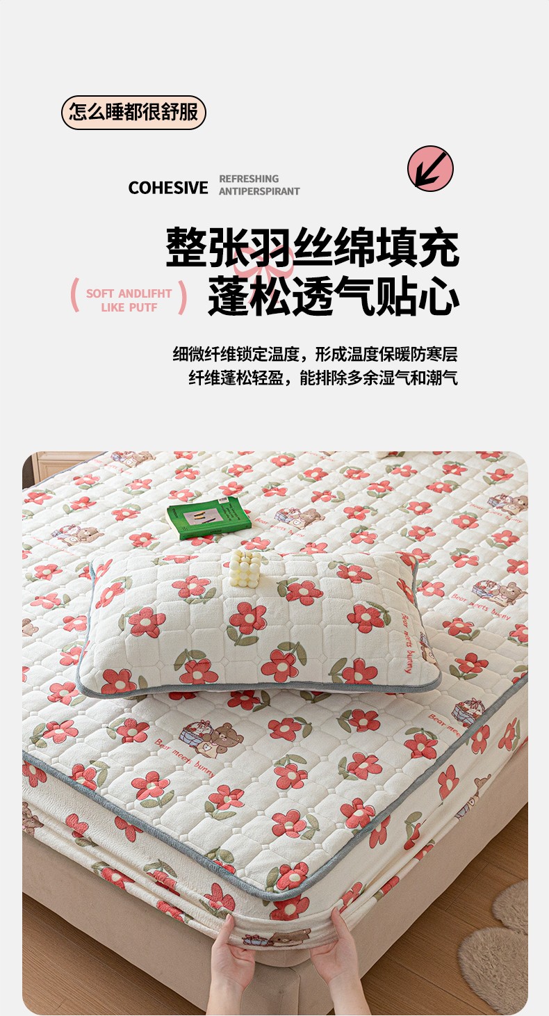 商品名称:格子铺 2023新款印花牛奶绒大豆夹棉床笠 童话乐园