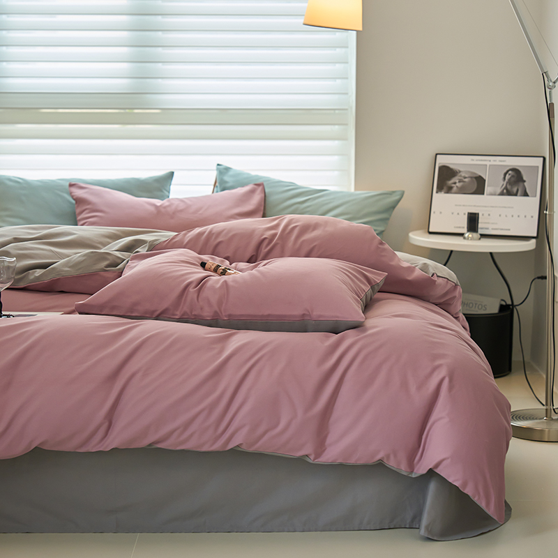 当前位置: 91家纺网 > 商品网购 > 床品套件 > 四件套 > 普通磨毛四件套 > 沐白家居 2023火山小磨毛拼色基础款四件套 紫调