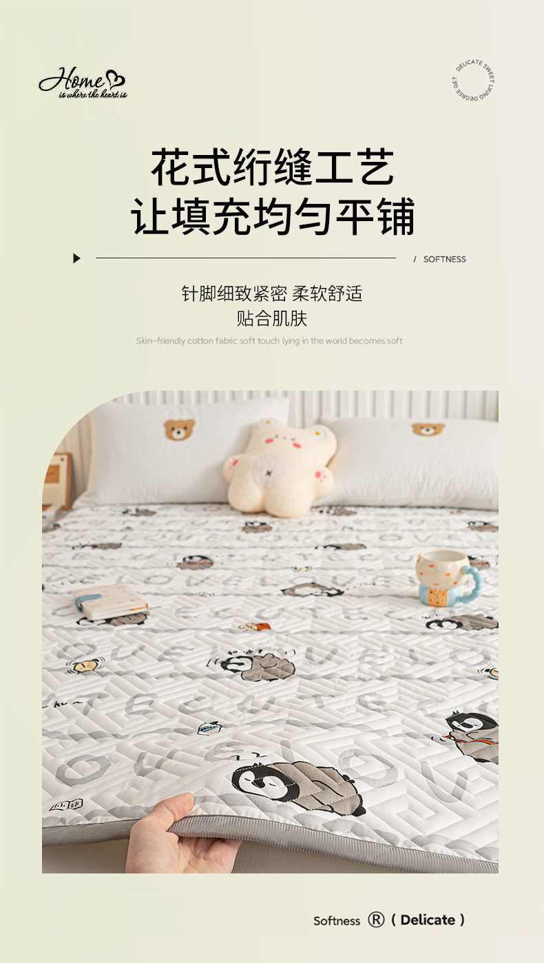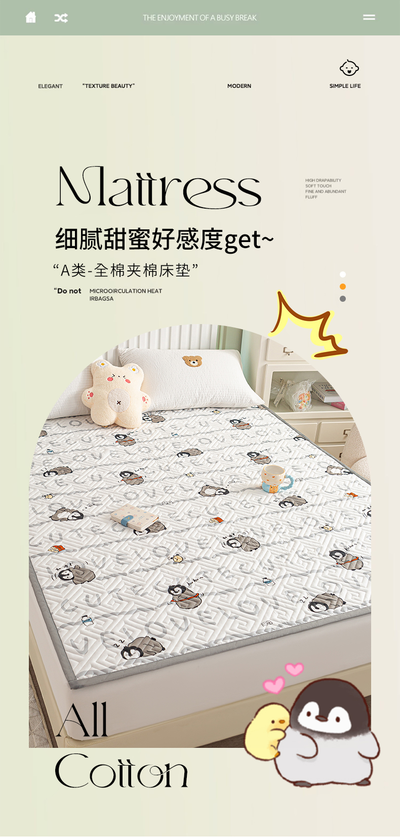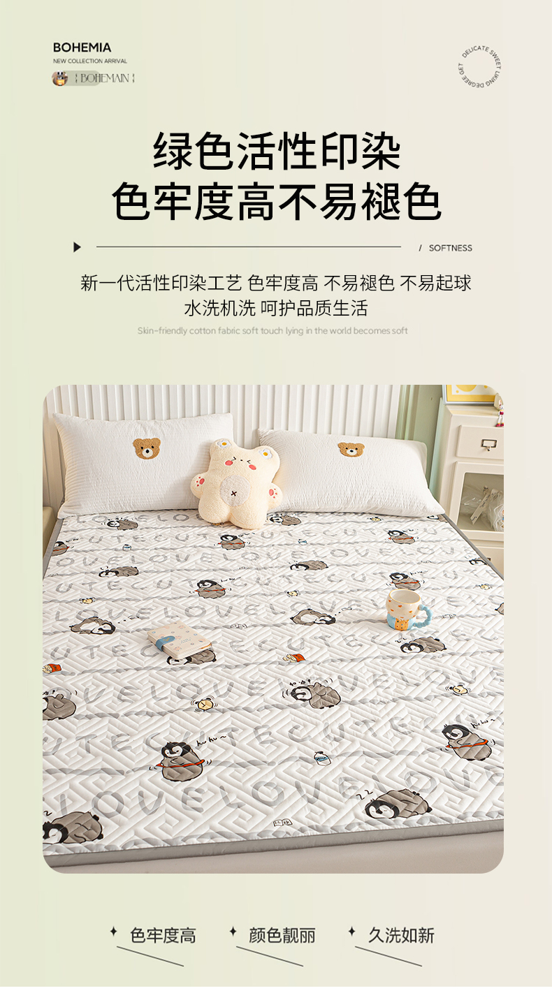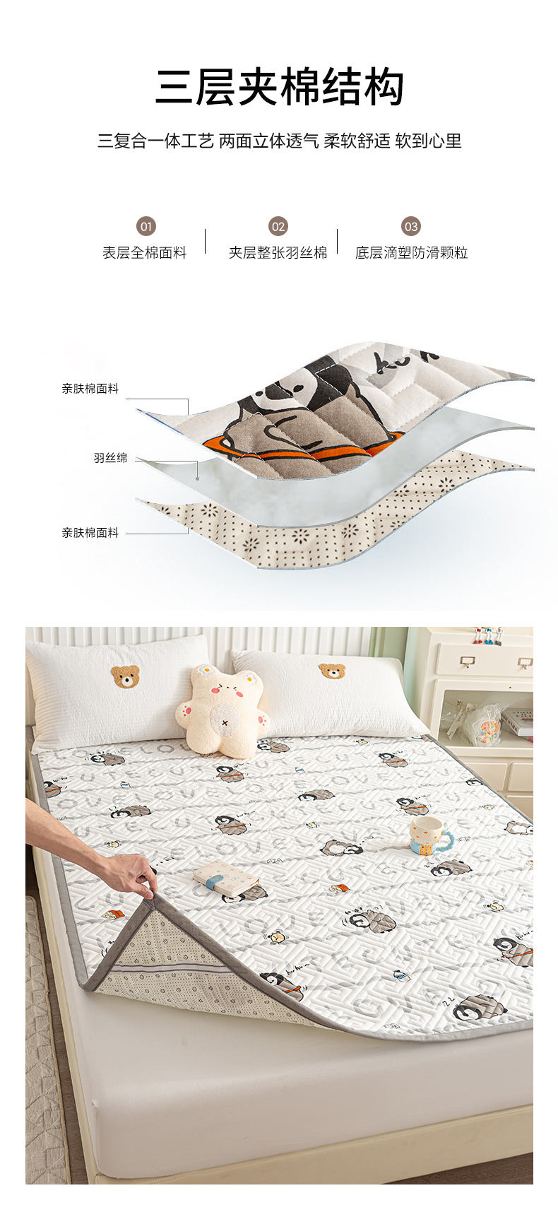 正邦家纺 2024新款全棉床垫软垫单人防滑床褥垫双人床盖 企鹅宝宝