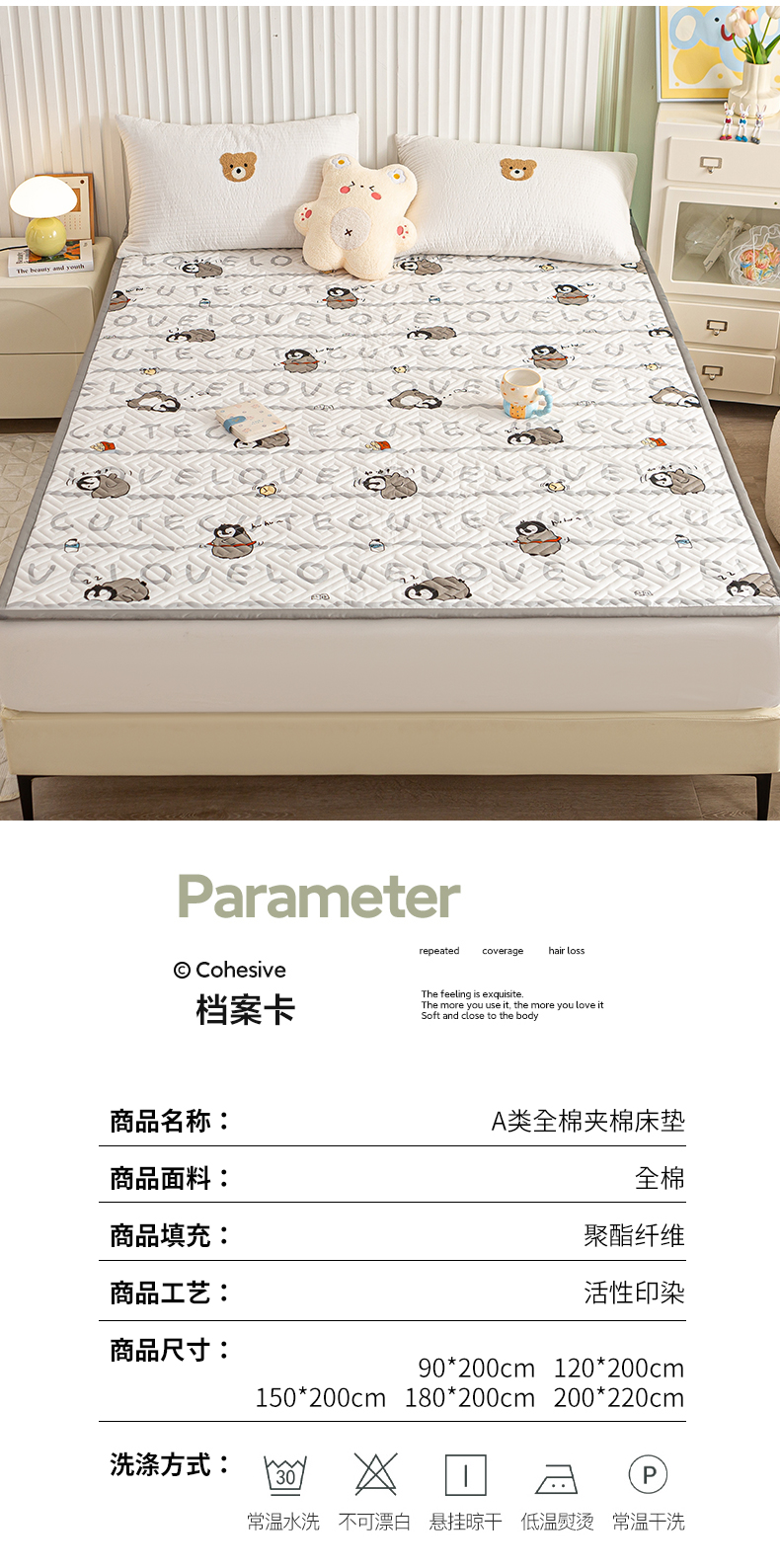 商品名称:正邦家纺 2024新款全棉床垫软垫单人防滑床褥垫双人床盖 企鹅宝宝