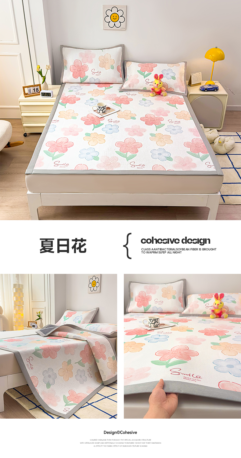 商品名称:大元 2025新款数码印花冰藤席系列 -冰藤条席 夏日花