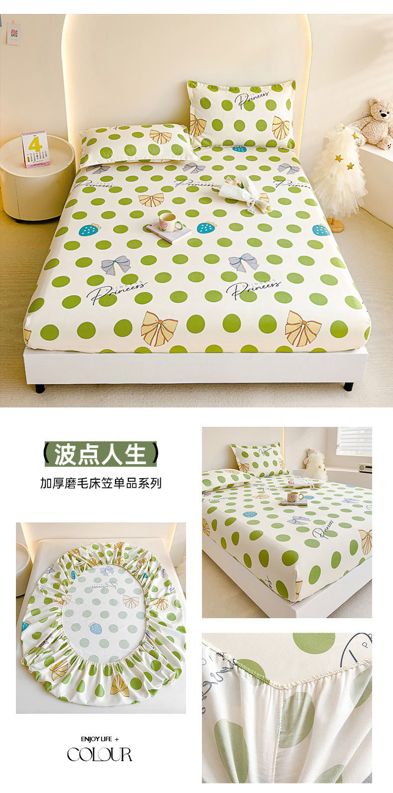 靓生活 2024新款加厚磨毛生态棉单品床笠 波点人生